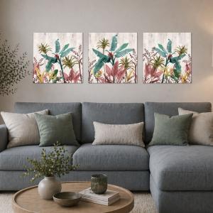 Set 3 pezzi Quadri su tela foglie di banano ...