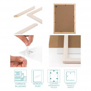 Ogni cornice ha un sistema di clips in metallo per inserire la tua foto facilmente con l’apposito pannello in legno ecologico che viene fornito con la cornice.