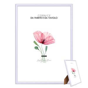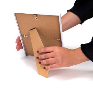 Solo nelle dimensioni 13x18 cm, 18x24 cm e A4 21x29,7 cm e’ disponibile anche un supporto o piede in legno mdf per rendere la cornice un portafoto da tavolo.