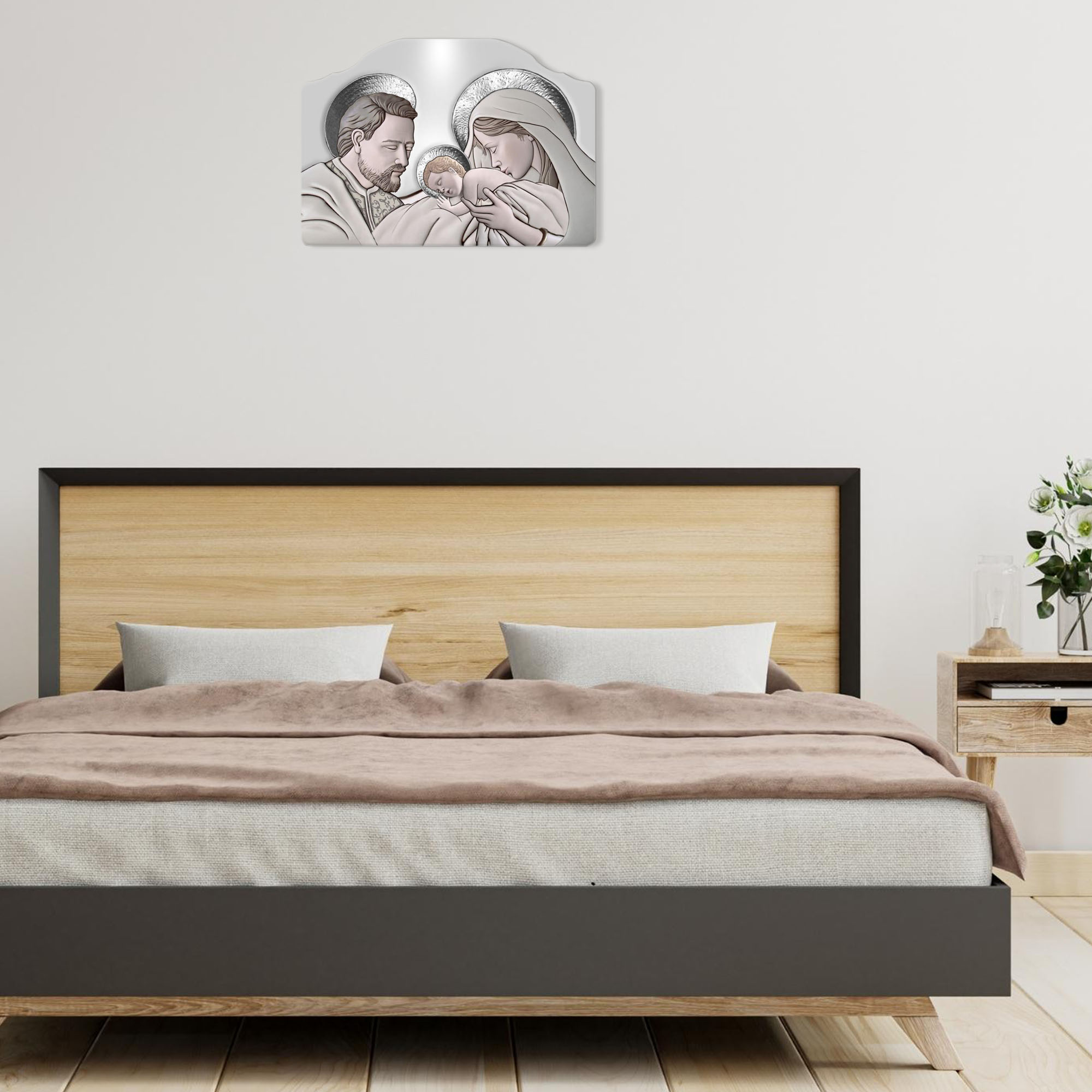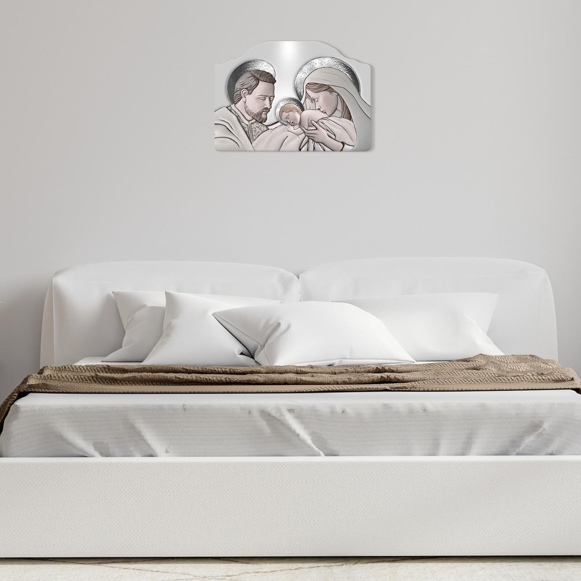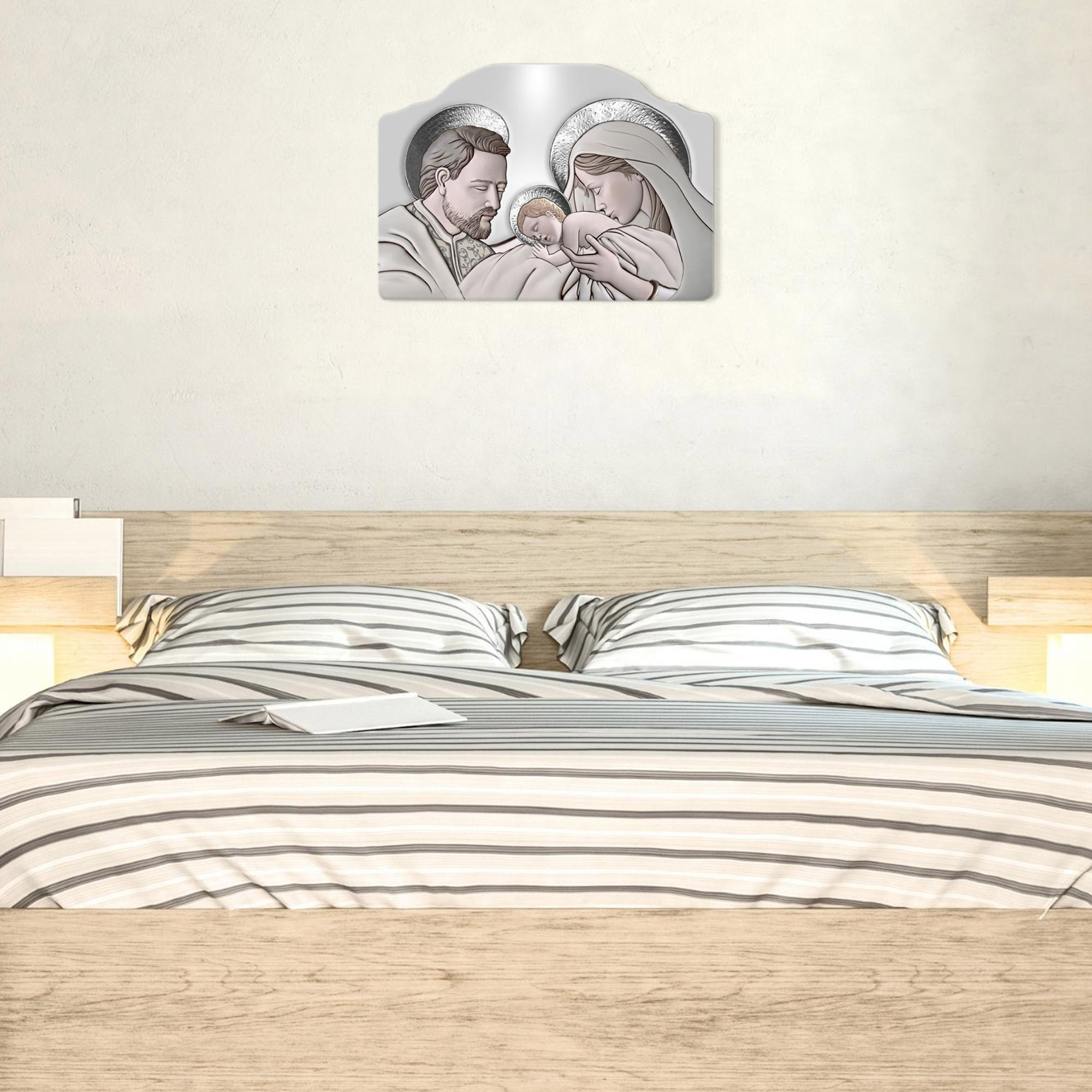 Quadro moderno Capezzale sacra famiglia 46x65 cm THE KISS CERAMIC GREY su tavola lavorata -
