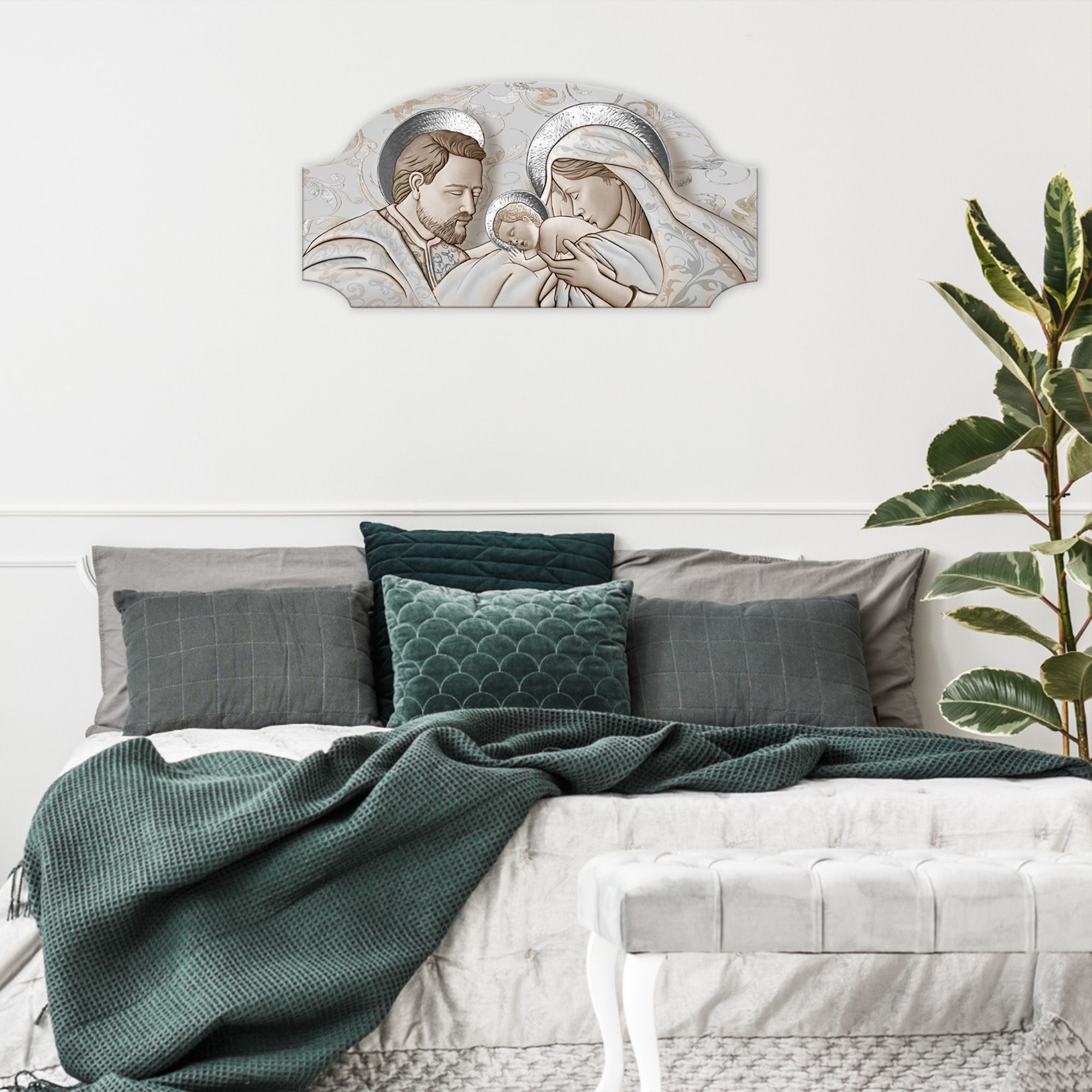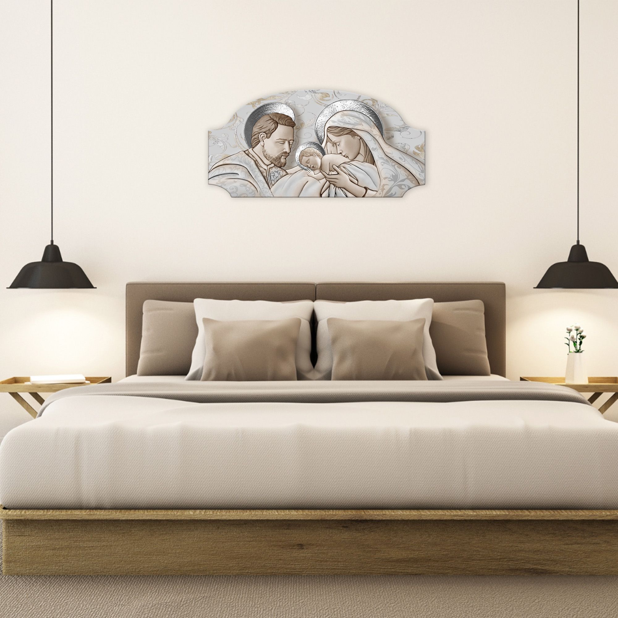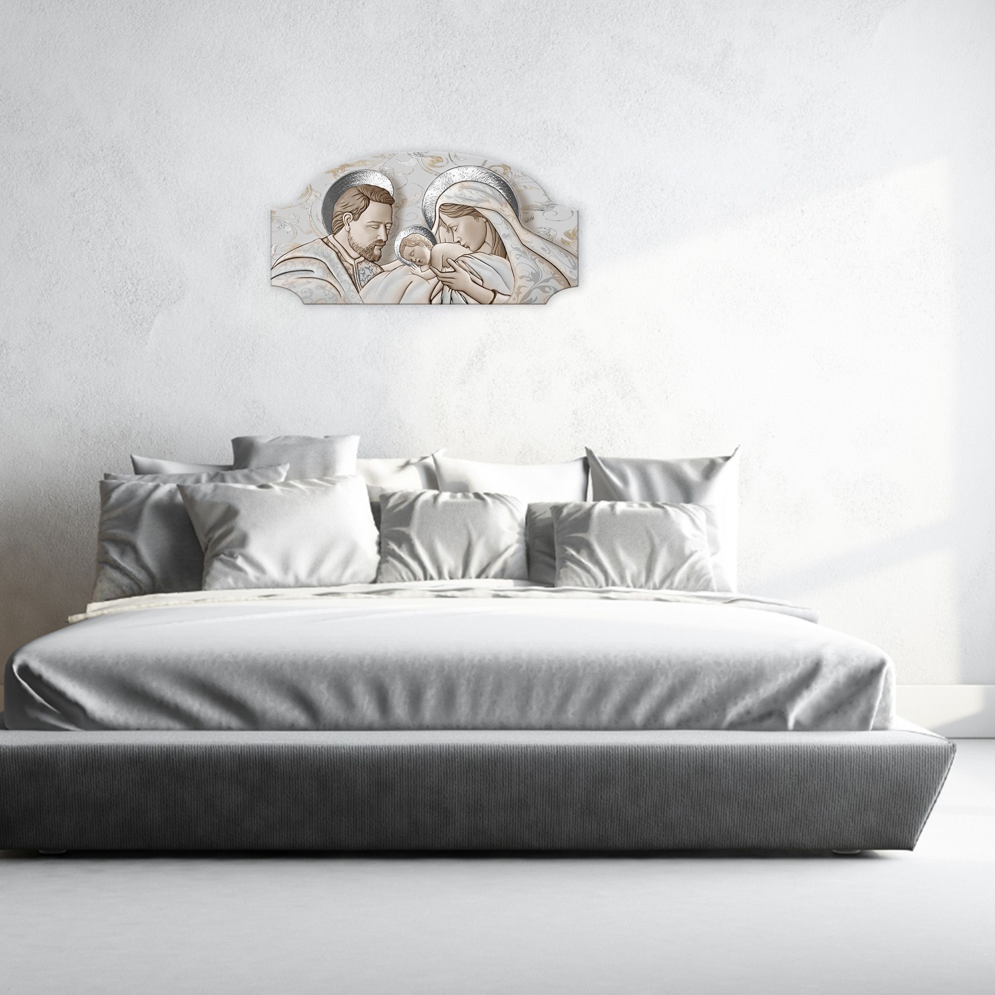 Il motivo della Sacra famiglia infine renderà ancora più accoglienti i vostri spazi, inglobandovi nel sacro abbraccio familiare.