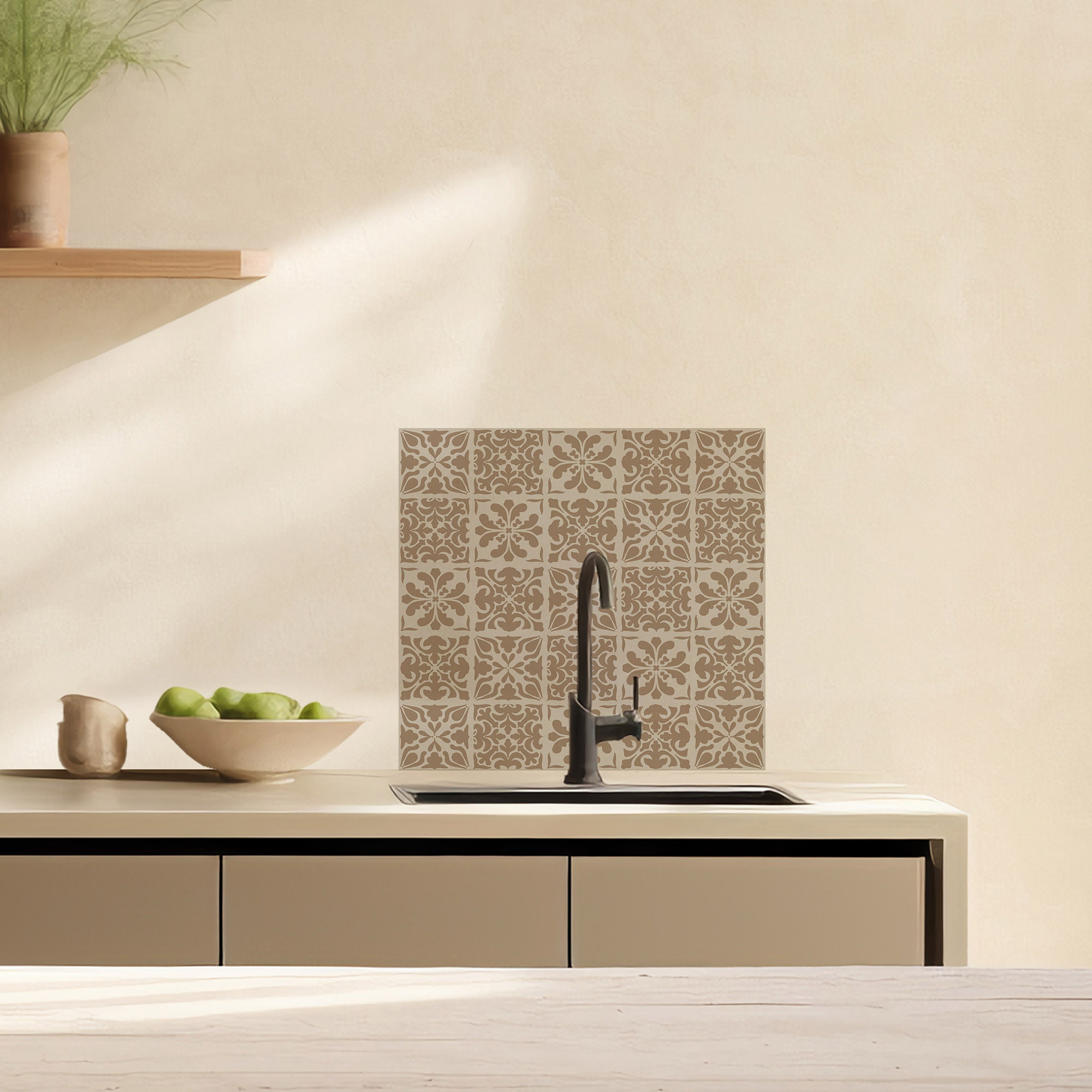 Disponibile in sei dimensioni diverse, il paraschizzi decorato in stile ceramica è perfetto per adattarsi a ogni esigenza di stile. Il pannello cucina, con uno spessore di soli 2 mm, è altamente personalizzabile: può essere tagliato per adattarsi perfettamente alla tua parete, garantendo una finitura impeccabile.