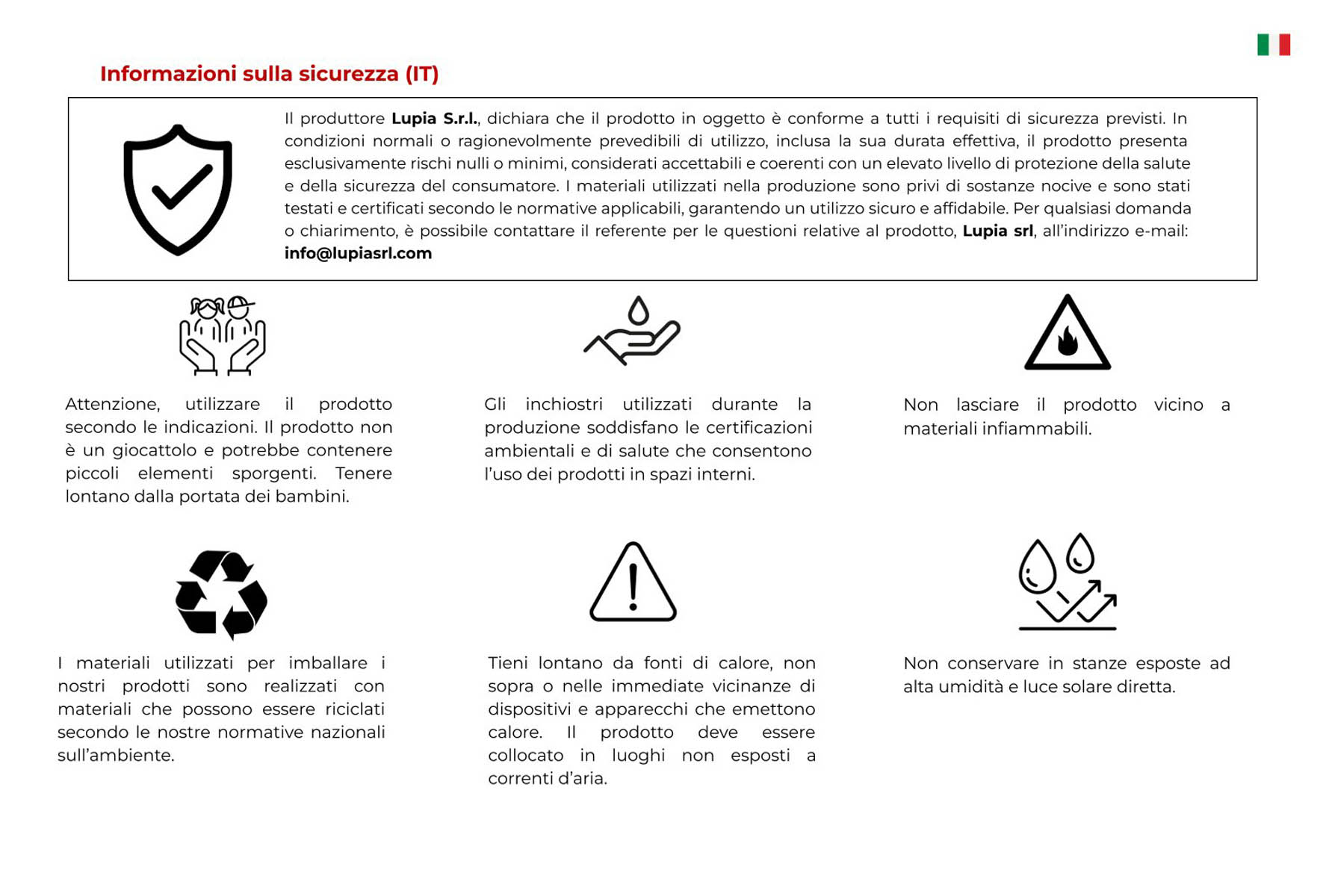 Vorreishop si impegna, per ogni prodotto venduto, a offrire schede di sicurezza e manuali utente dettagliati, nel pieno rispetto della normativa europea GPSR, garantendo che tutti i prodotti siano conformi agli standard di sicurezza richiesti. Puoi accedere e scaricare le immagini di sicurezza e il manuale utente nella sezione dedicata "Risorse per la sicurezza" presente su questa pagina. Per maggiori informazioni visita Condizioni Generali di Vendita