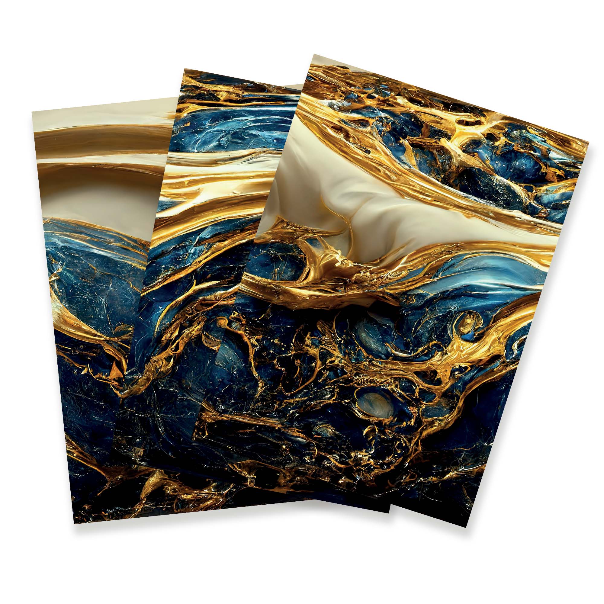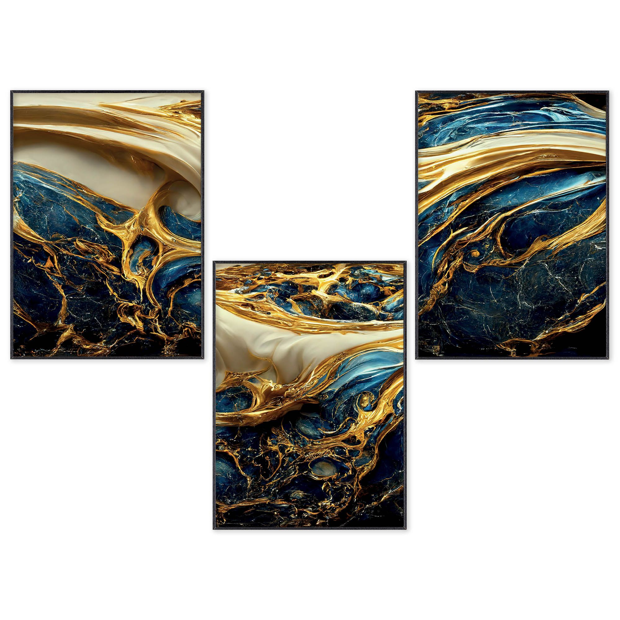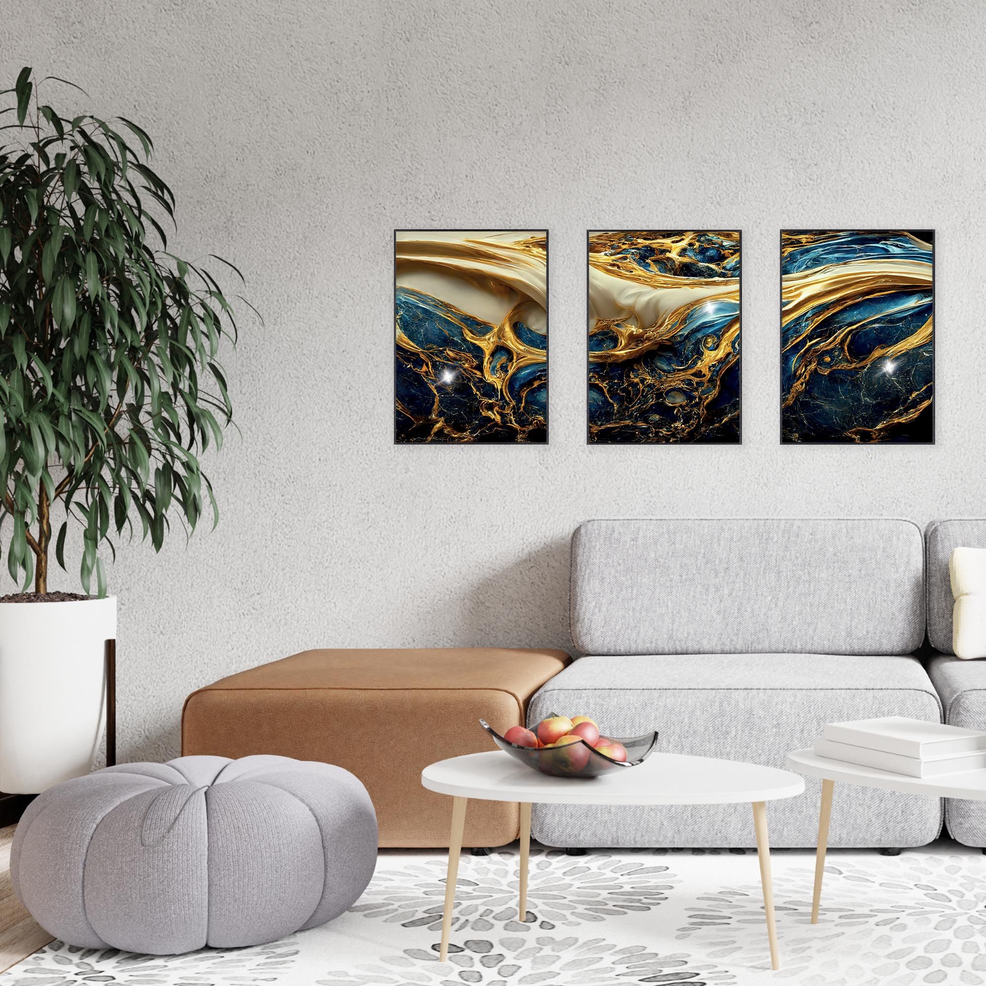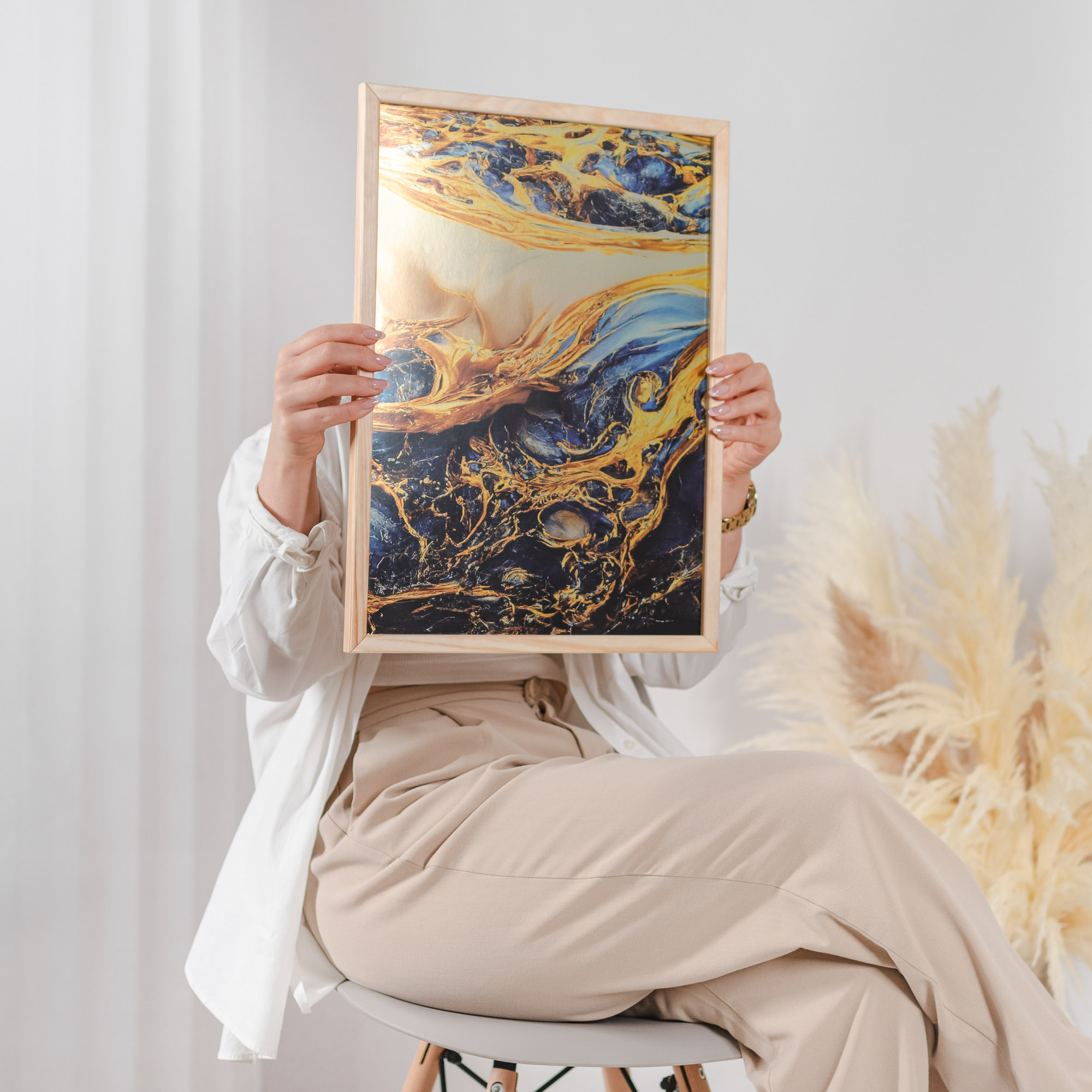 Il design moderno e accattivante si adatta a qualsiasi stile di arredamento e crea un’atmosfera piacevole in cui vivere e rilassarsi. Scegli i nostri poster con colori e soggetti che si adattano alle tue esigenze e preferenze, grazie alle particolari elaborazioni grafiche e artistiche che combinano colori e forme astratte fluide effetto marmo nei toni dell'oro e del blu.