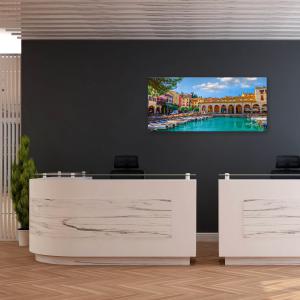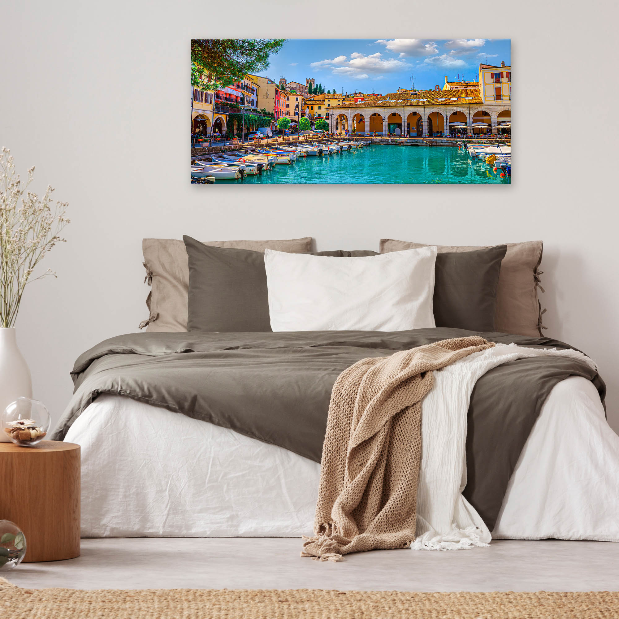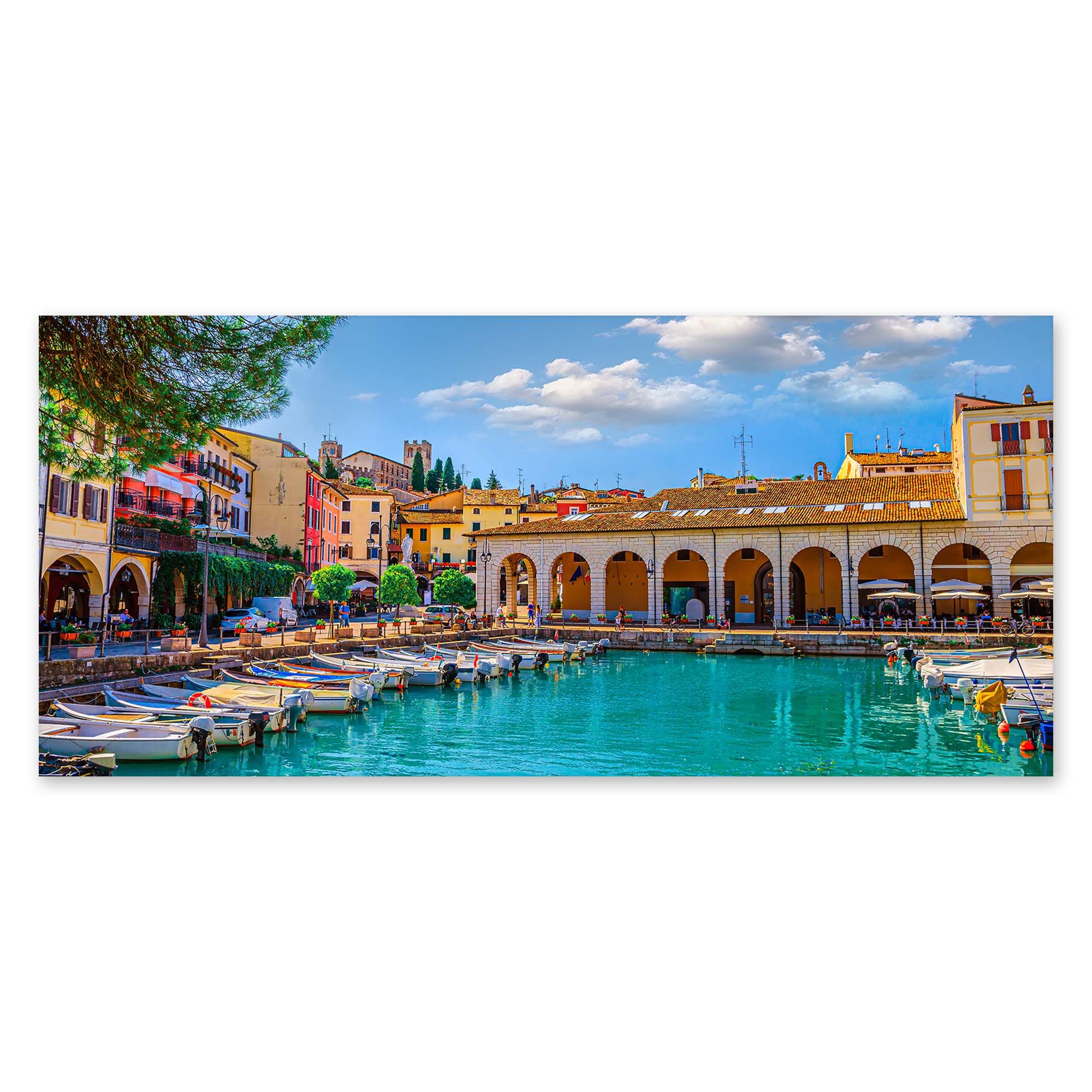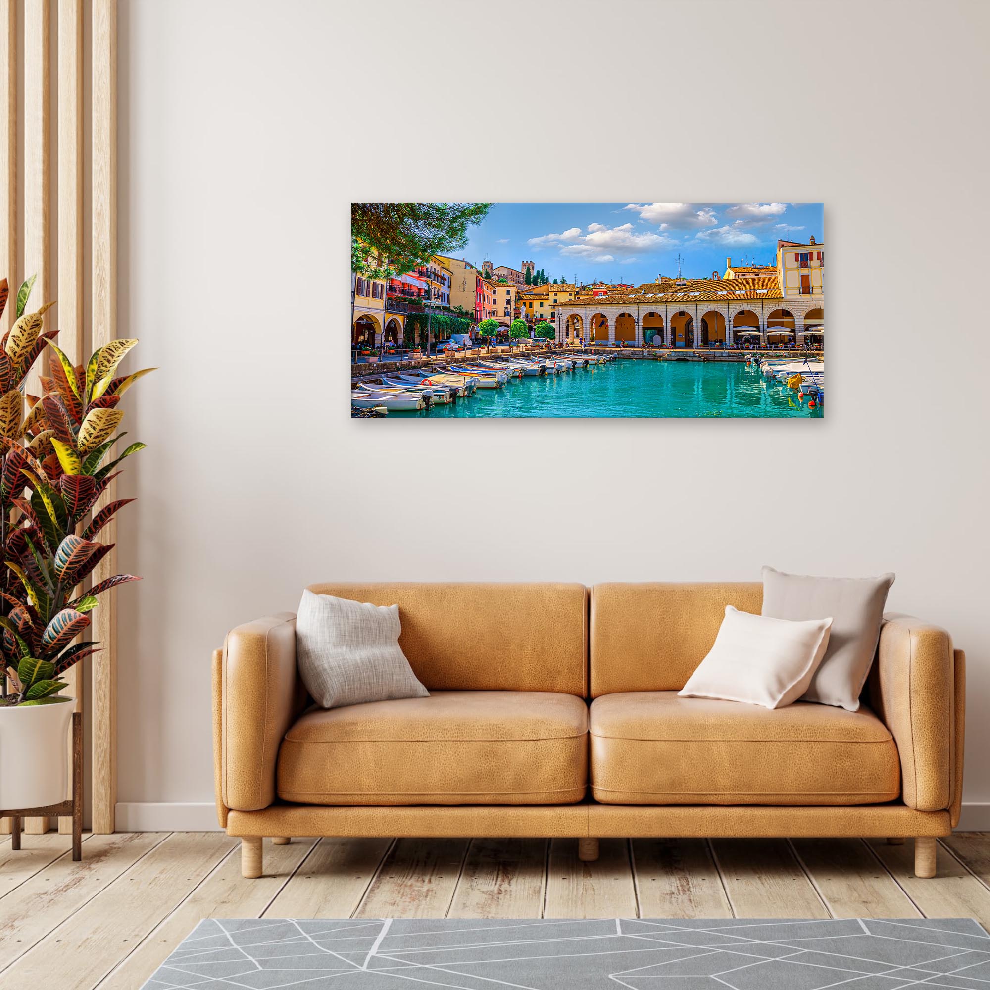 Lupia - Quadro moderno su Tela Canvas DEEP 65X143 cm, con paesaggi e localismi italiani, per casa, soggiorno, capezzale camera da letto, hotel, ufficio, BRESCIA - PORTO VECCHIO DI DESENZANO -