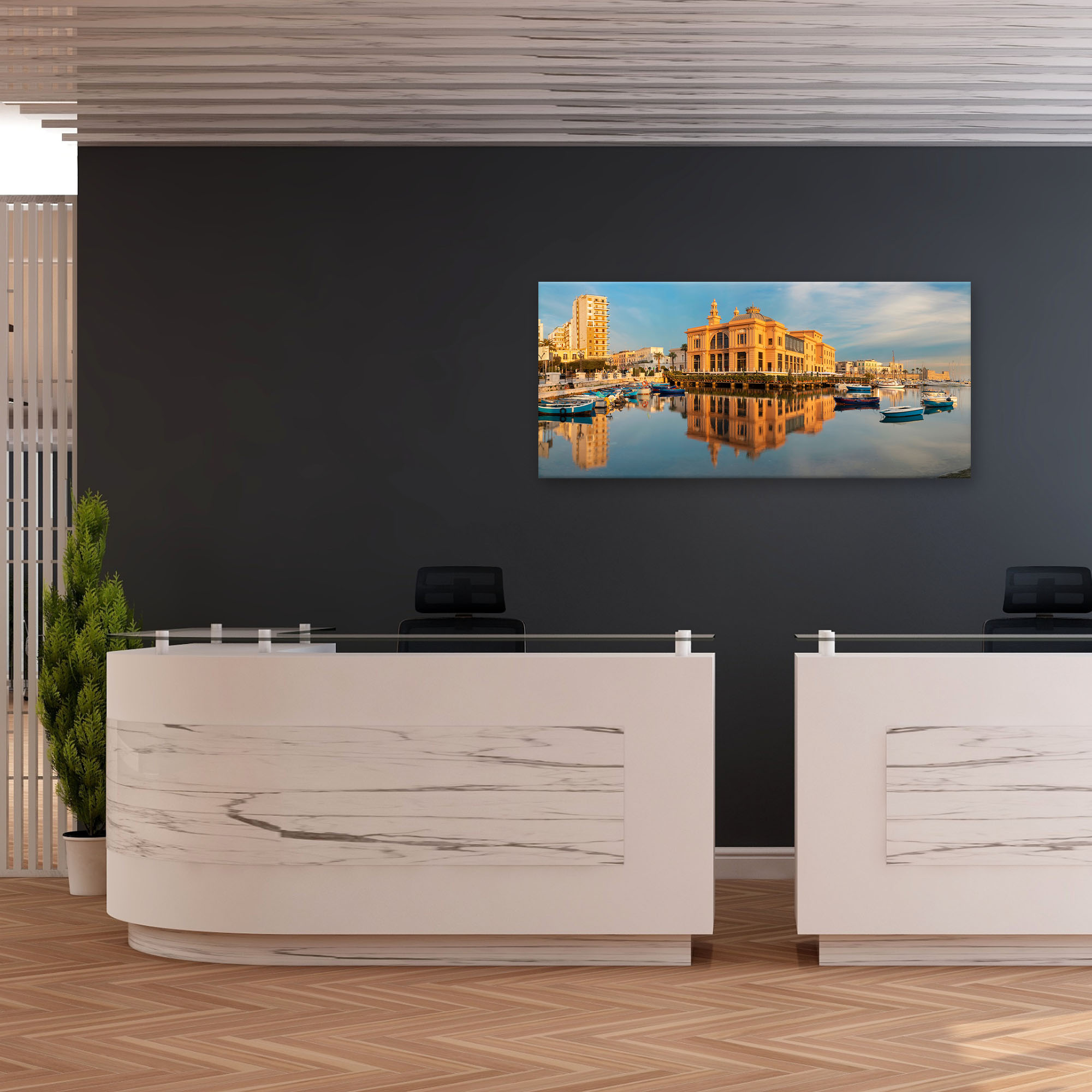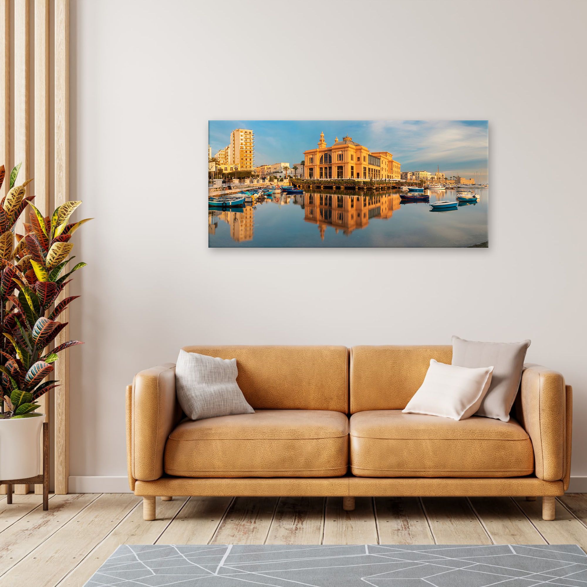 Lupia - Quadro moderno su Tela Canvas DEEP 65X143 cm, con paesaggi e localismi italiani, per casa, soggiorno, capezzale camera da letto, hotel, ufficio, PUGLIA - BARI TEATRO PETRUZZELLI -