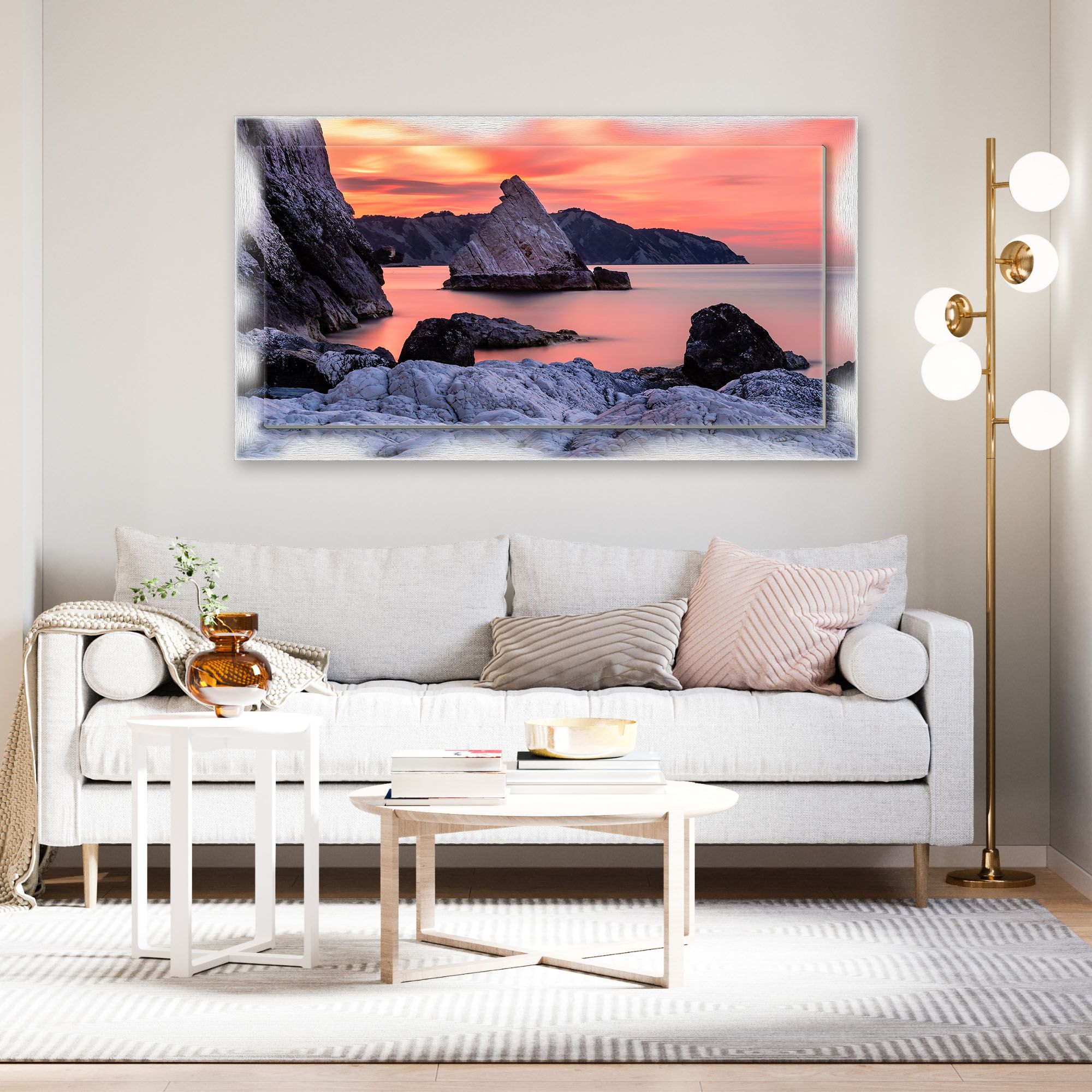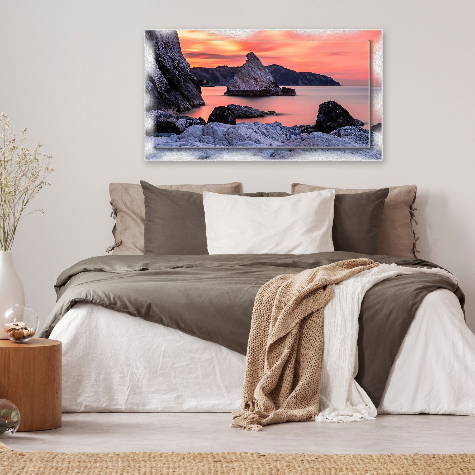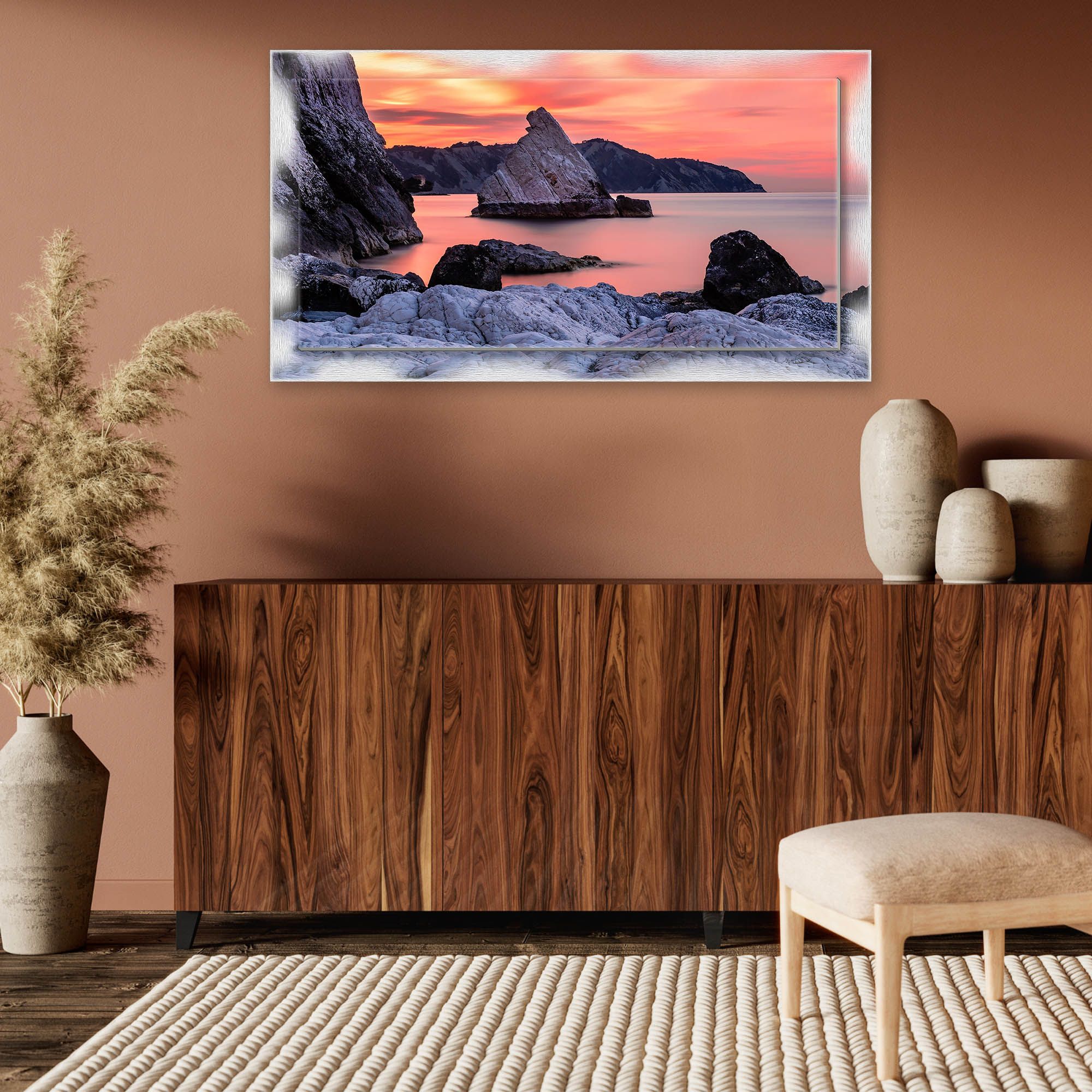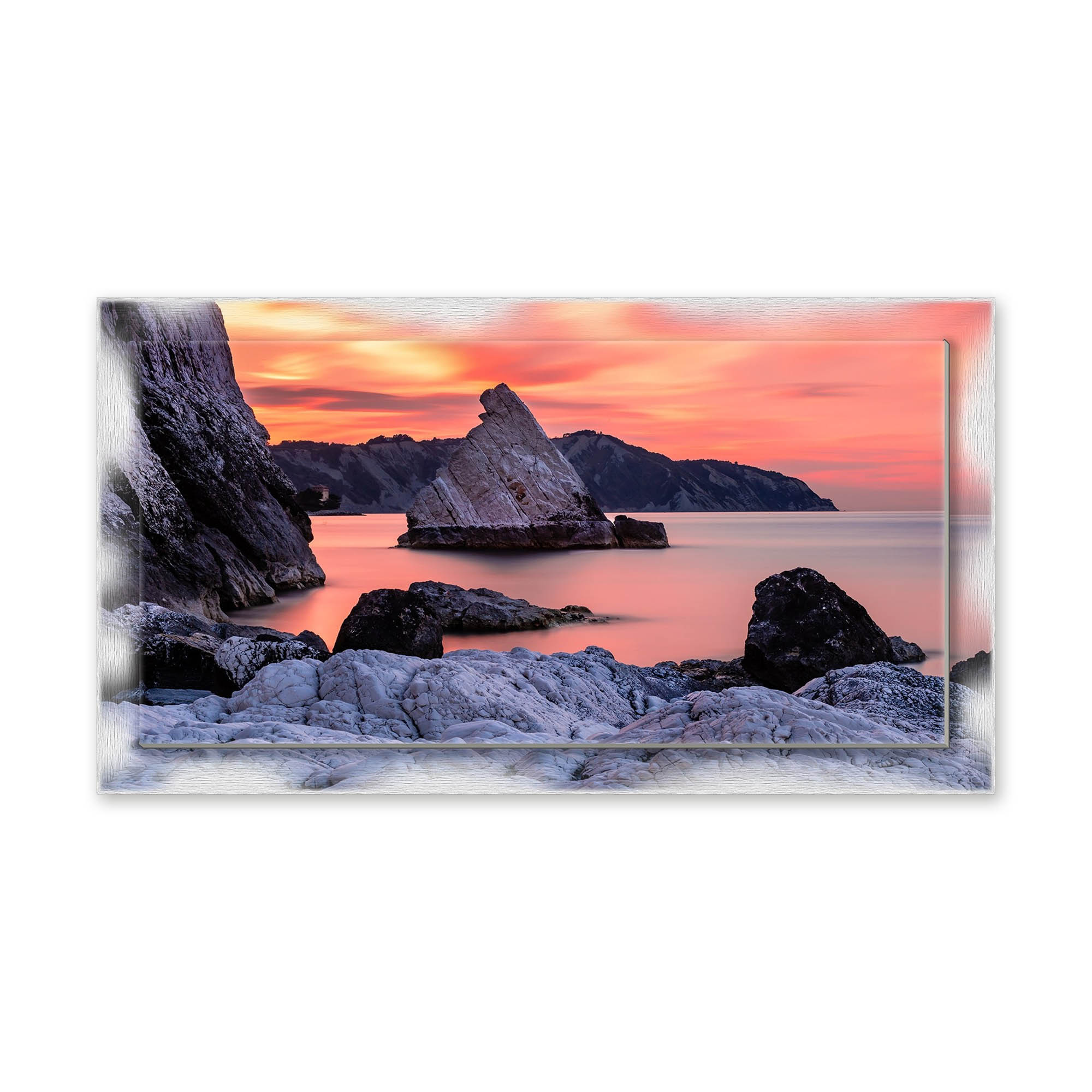 Lupia - Quadro moderno su Tela con Cornice stampata NEWEXT 75x135 cm, paesaggi localismi italiani, per casa soggiorno capezzale camera da letto hotel ufficio, ANCONA TRAMONTO BAIA DI PORTONOVO -