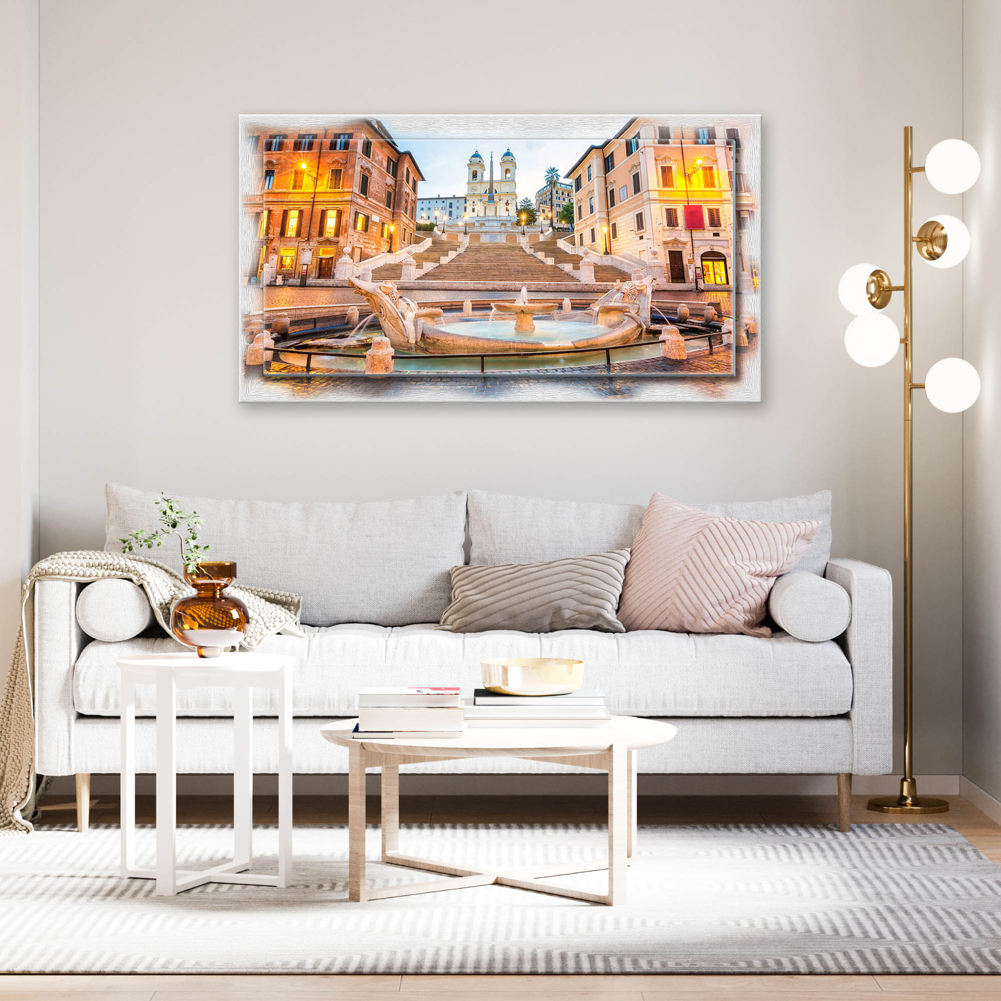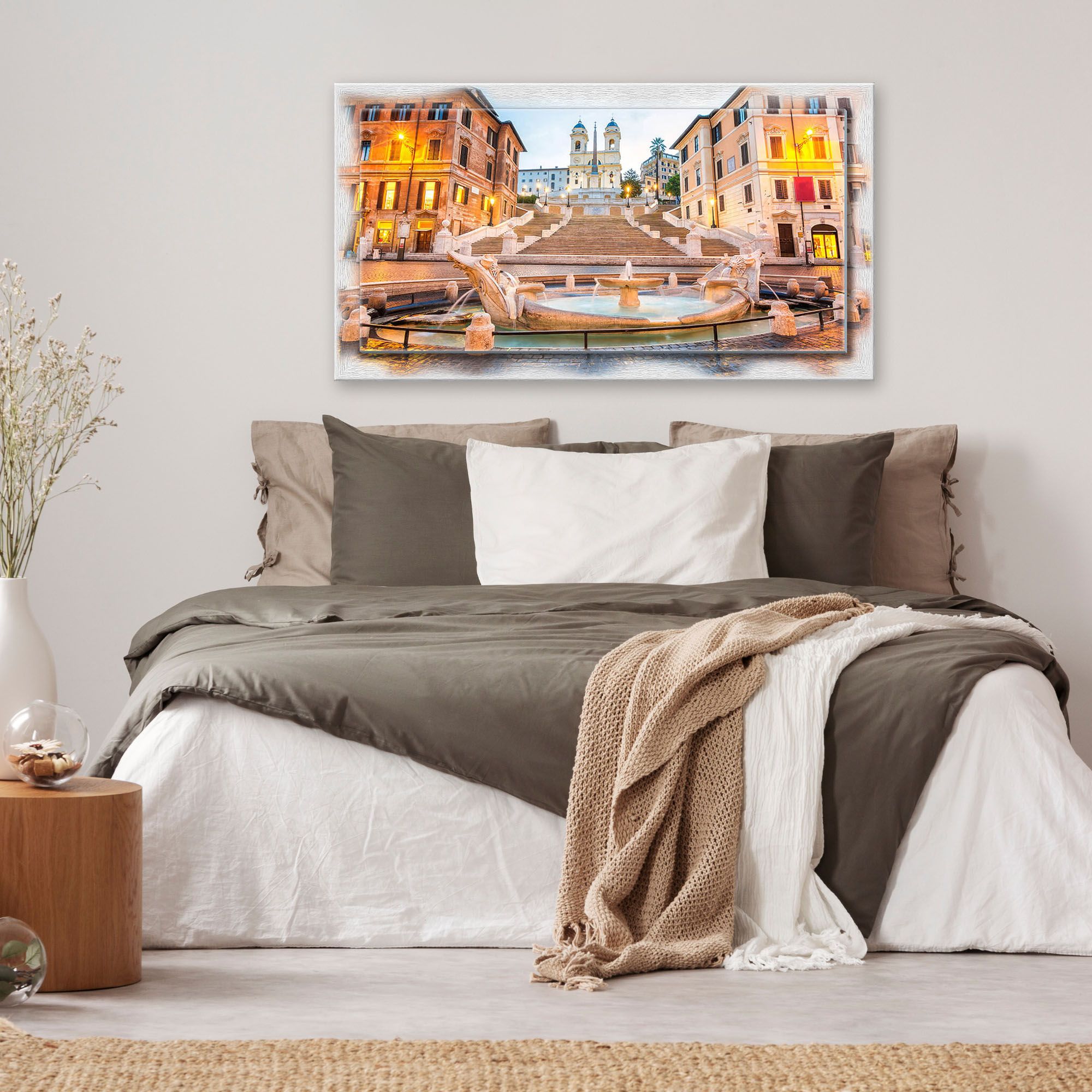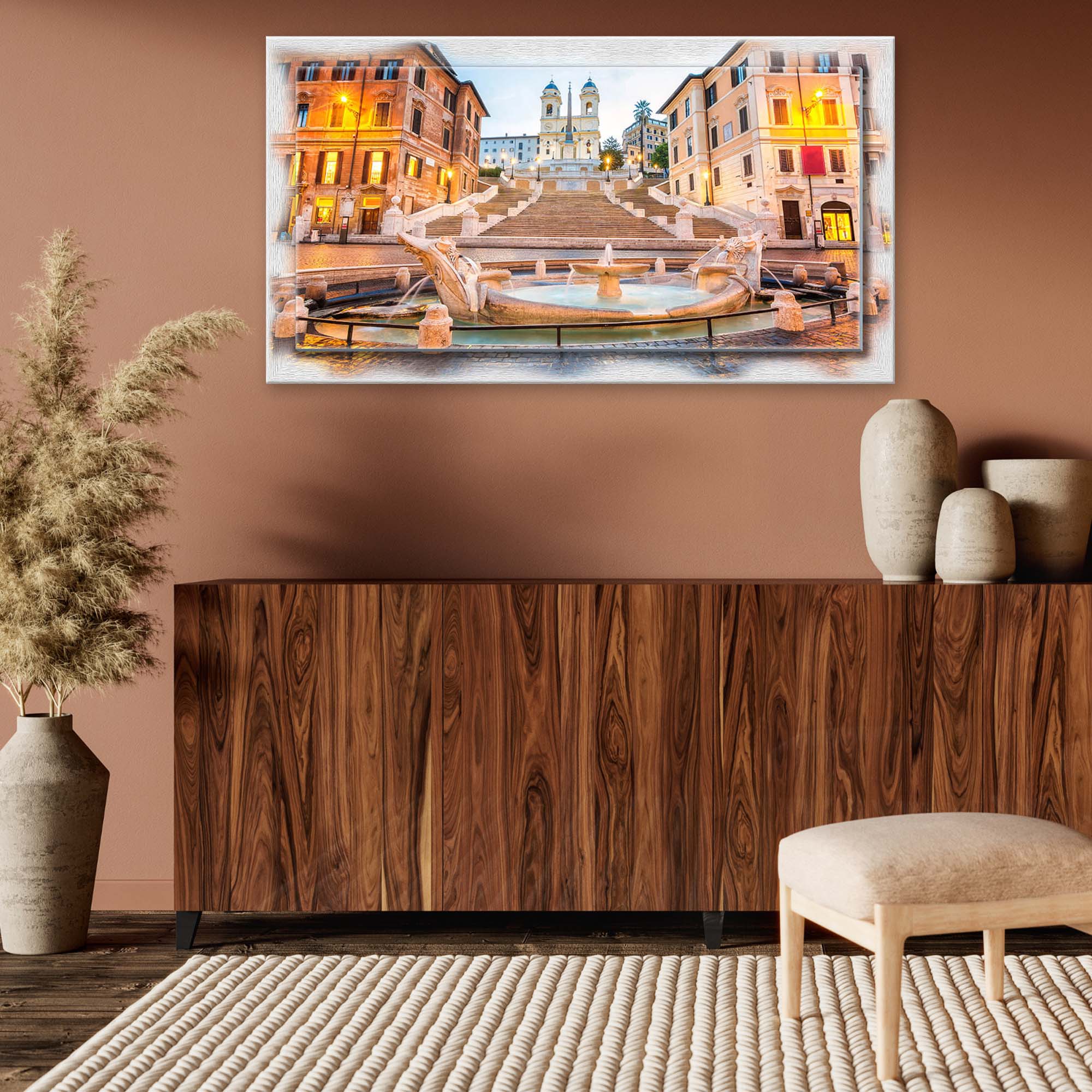 Lupia - Quadro moderno su Tela con Cornice stampata NEWEXT 75x135 cm, paesaggi localismi italiani, per casa soggiorno capezzale camera da letto hotel ufficio, ROMA PIAZZA DI SPAGNA -