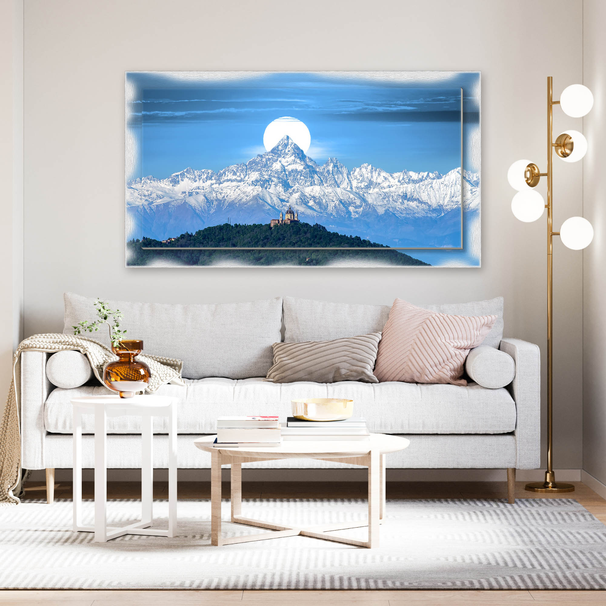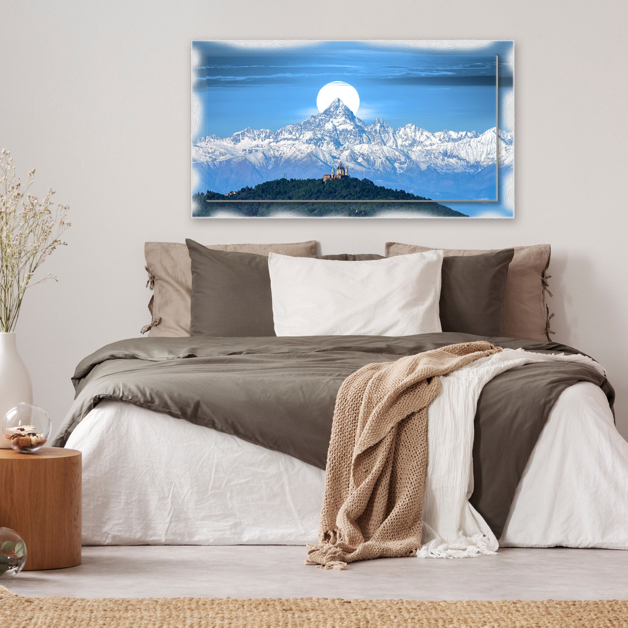 Lupia - Quadro moderno su Tela con Cornice stampata NEWEXT 75x135 cm, paesaggi localismi italiani, per casa soggiorno capezzale camera da letto hotel ufficio, TORINO SUPERGA TRAMONTO BLU -