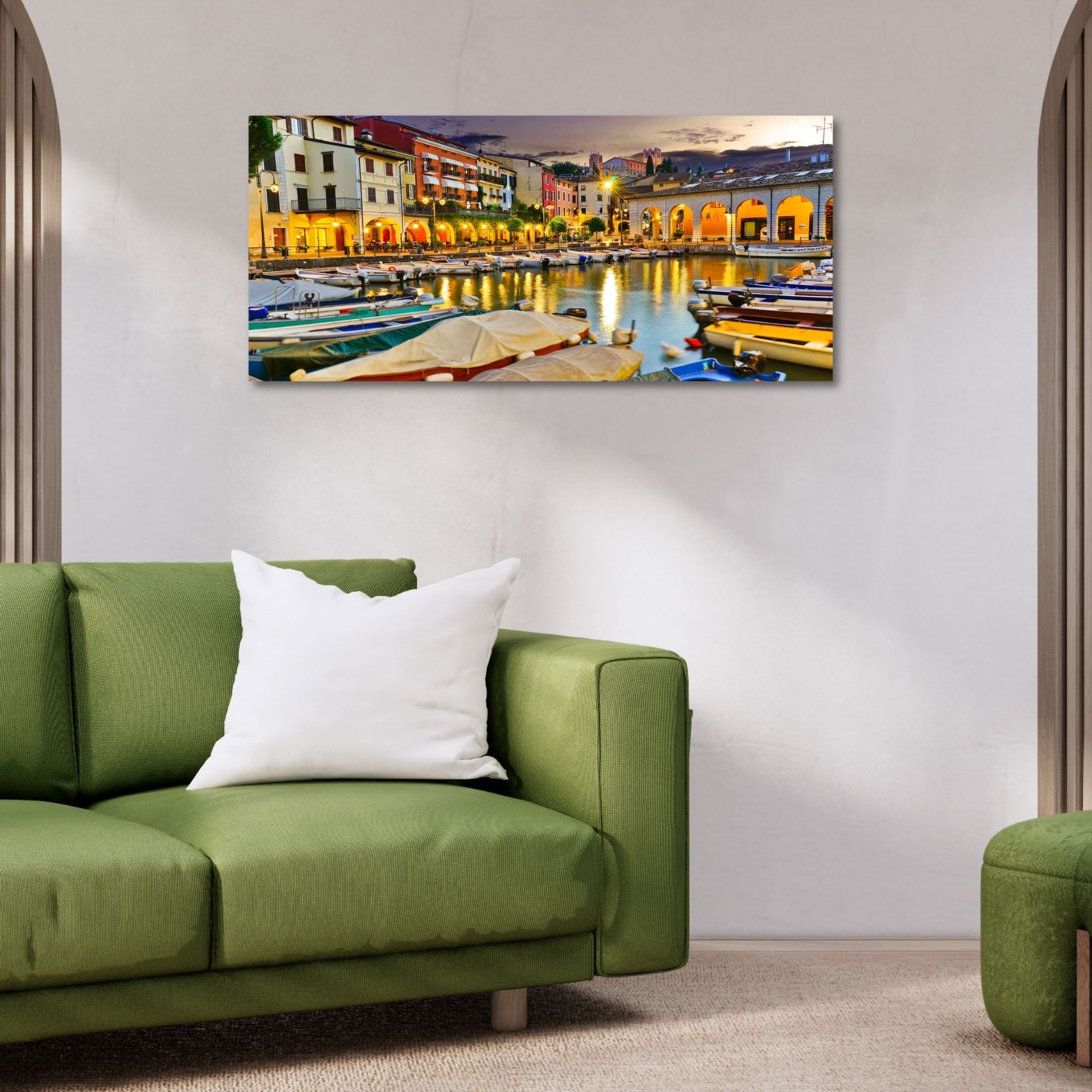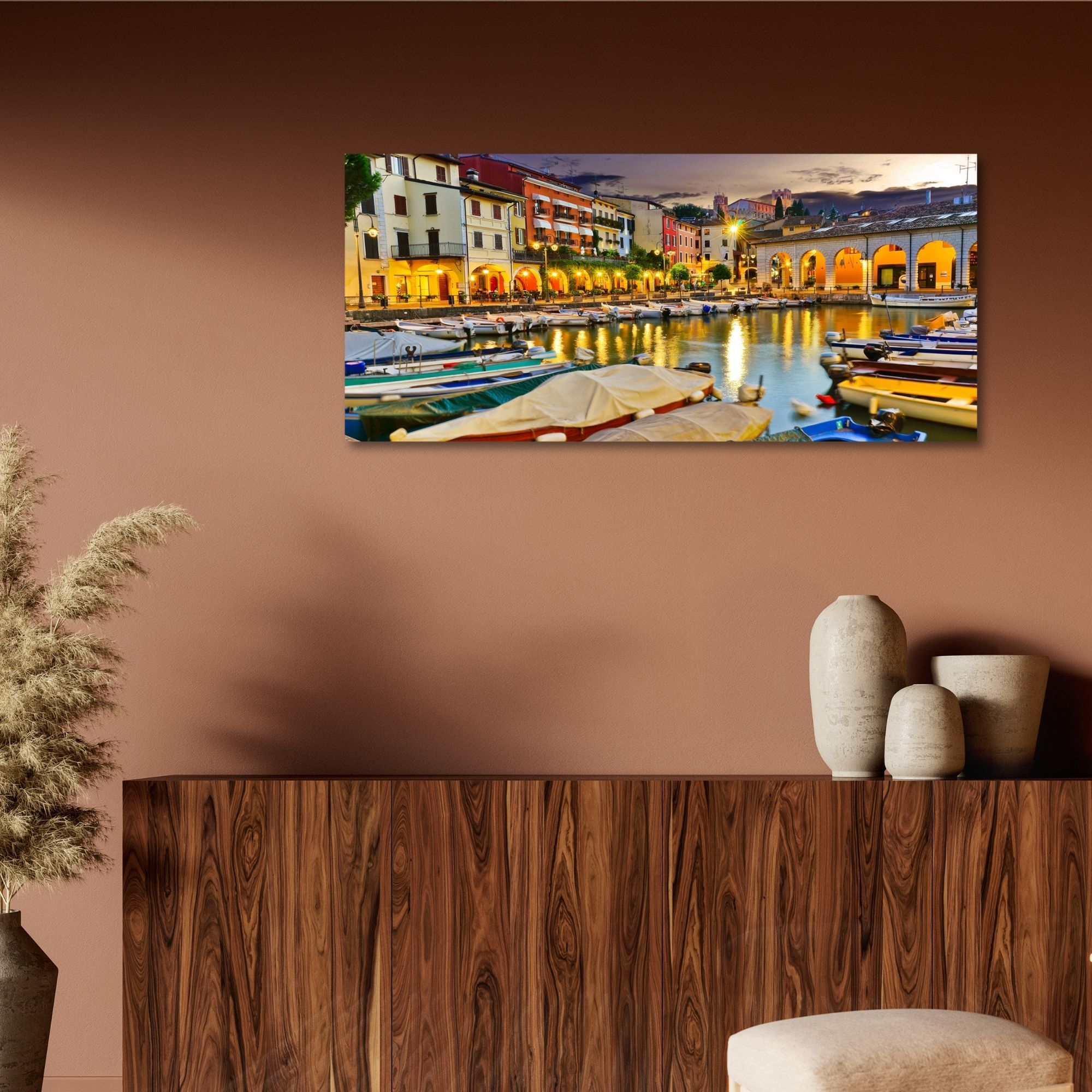 Lupia - Quadro moderno su Tela Canvas DEEP 65X143 cm, con paesaggi e localismi italiani, per casa, soggiorno, capezzale camera da letto, hotel, ufficio, BRESCIA - DESENZANO DEL GARDA -