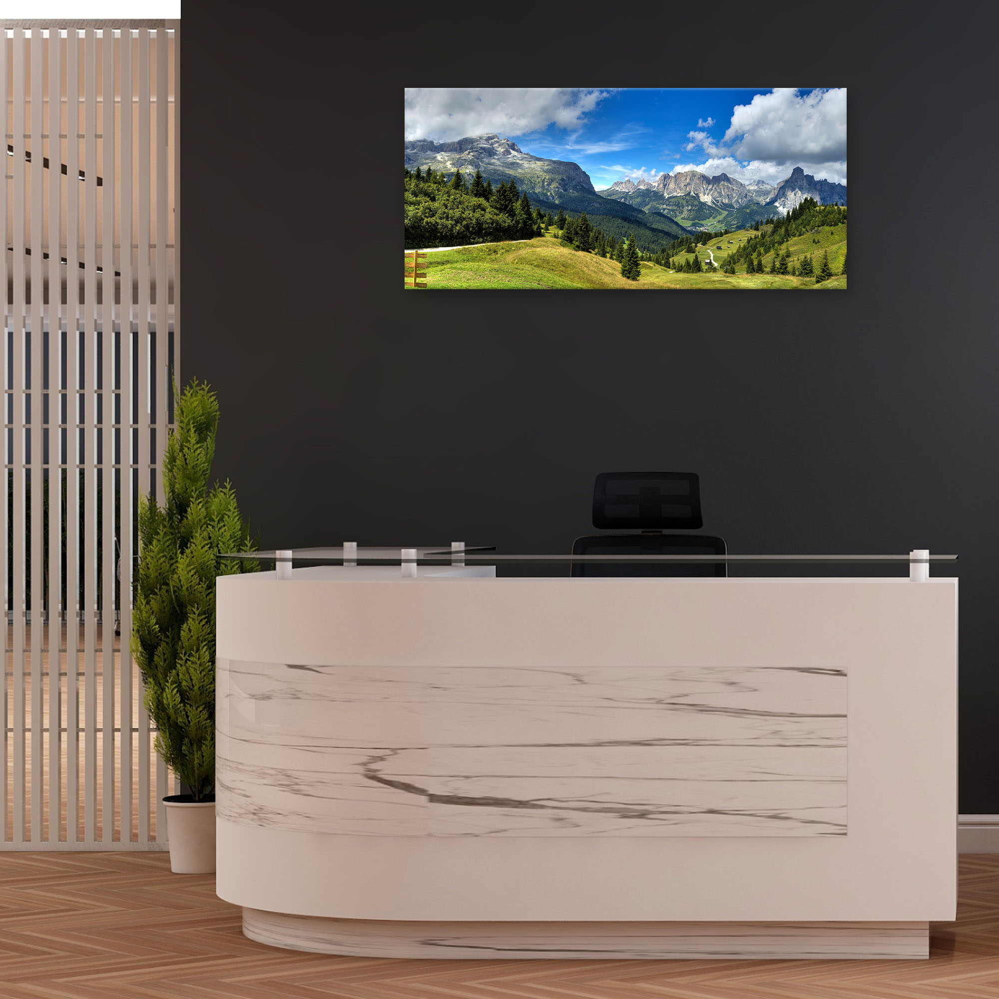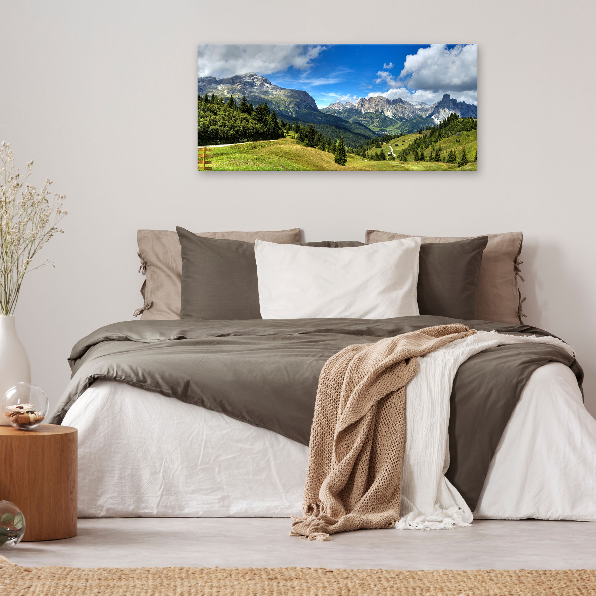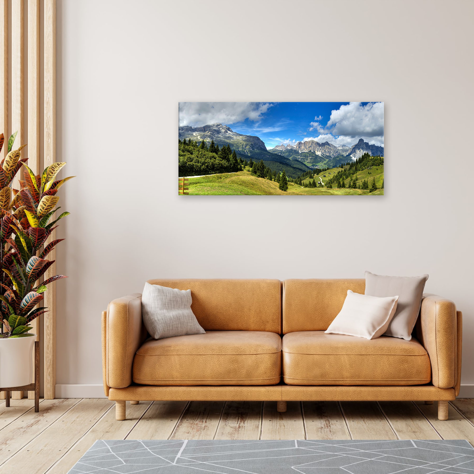 Lupia - Quadro moderno su Tela Canvas DEEP 65X143 cm, con paesaggi e localismi italiani, per casa, soggiorno, capezzale camera da letto, hotel, ufficio, DOLOMITI - PANORAMA MONTI -
