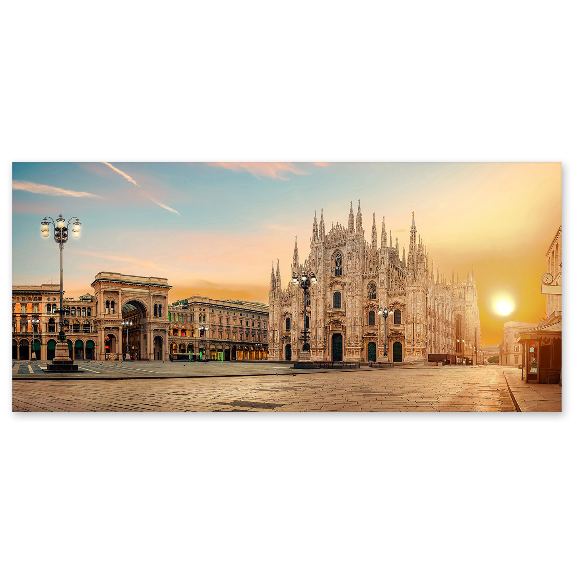 Lupia - Quadro moderno su Tela Canvas DEEP 65X143 cm, con paesaggi e localismi italiani, per casa, soggiorno, capezzale camera da letto, hotel, ufficio, MILANO - TRAMONTO SUL DUOMO -
