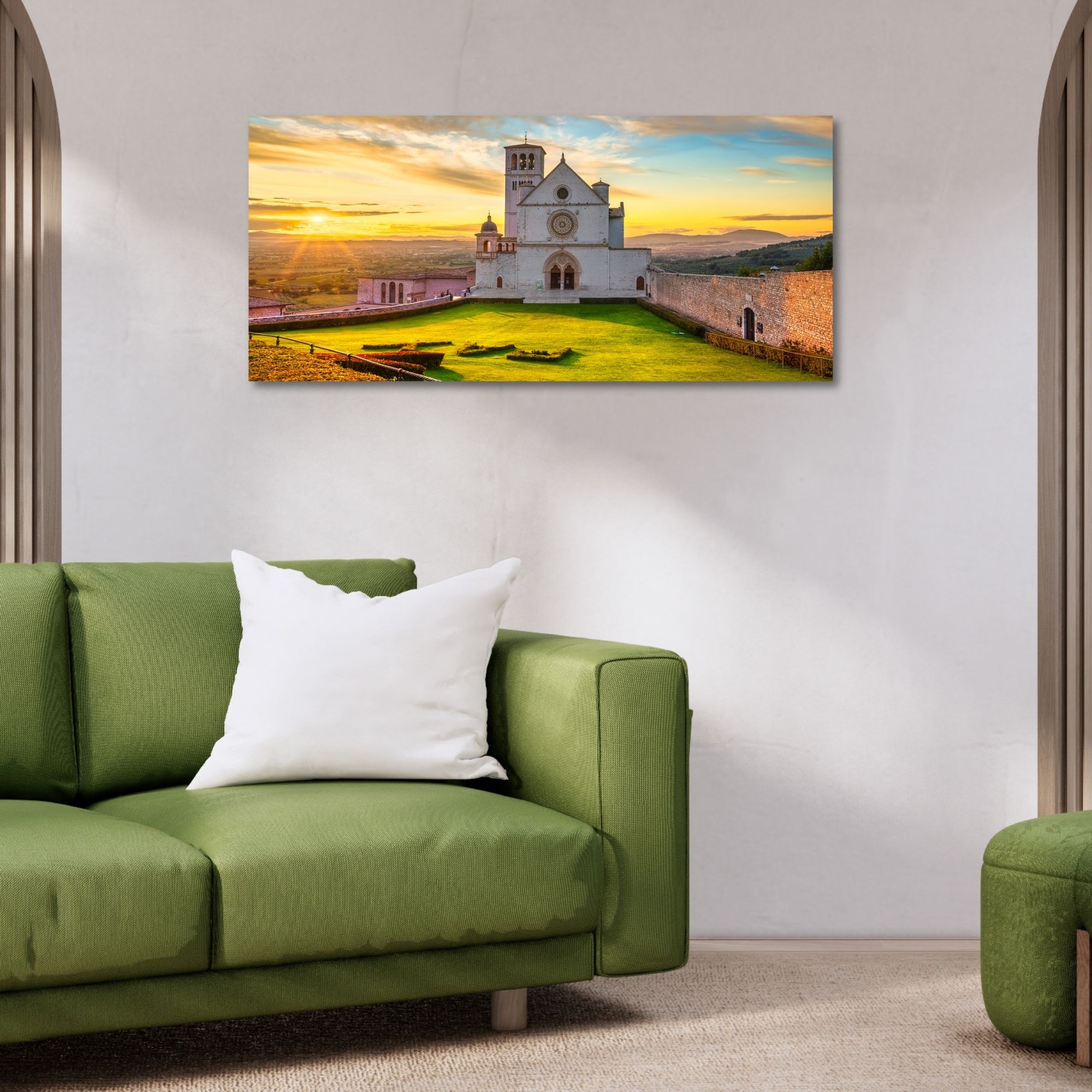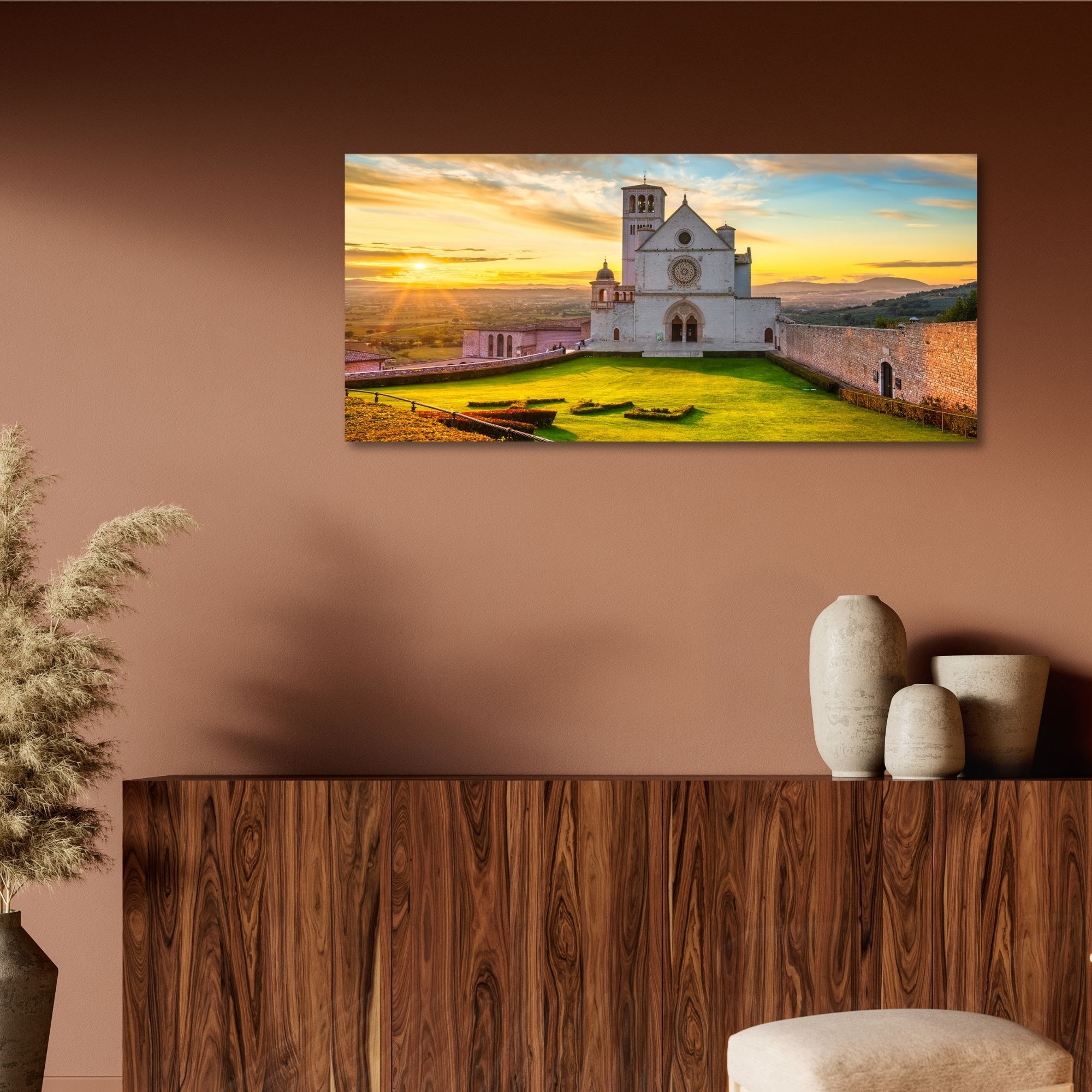 Lupia - Quadro moderno su Tela Canvas DEEP 65X143 cm, con paesaggi e localismi italiani, per casa, soggiorno, capezzale camera da letto, hotel, ufficio, PERUGIA - CHIESA SAN FRANCESCO GIORNO -