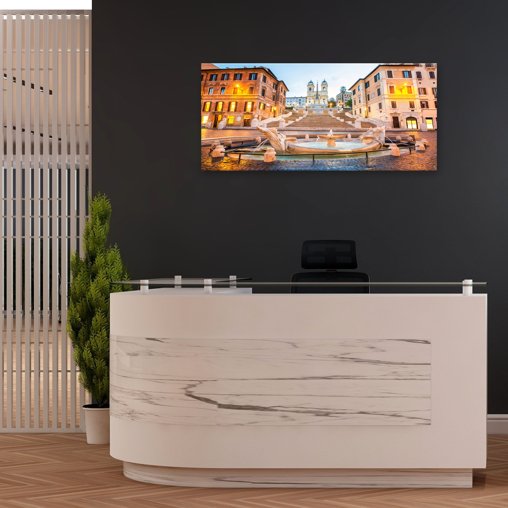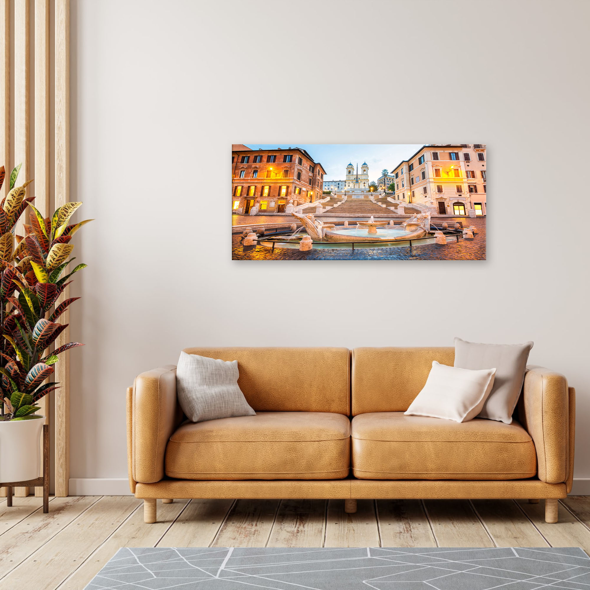 Lupia - Quadro moderno su Tela Canvas DEEP 65X143 cm, con paesaggi e localismi italiani, per casa, soggiorno, capezzale camera da letto, hotel, ufficio, ROMA - PIAZZA DI SPAGNA -