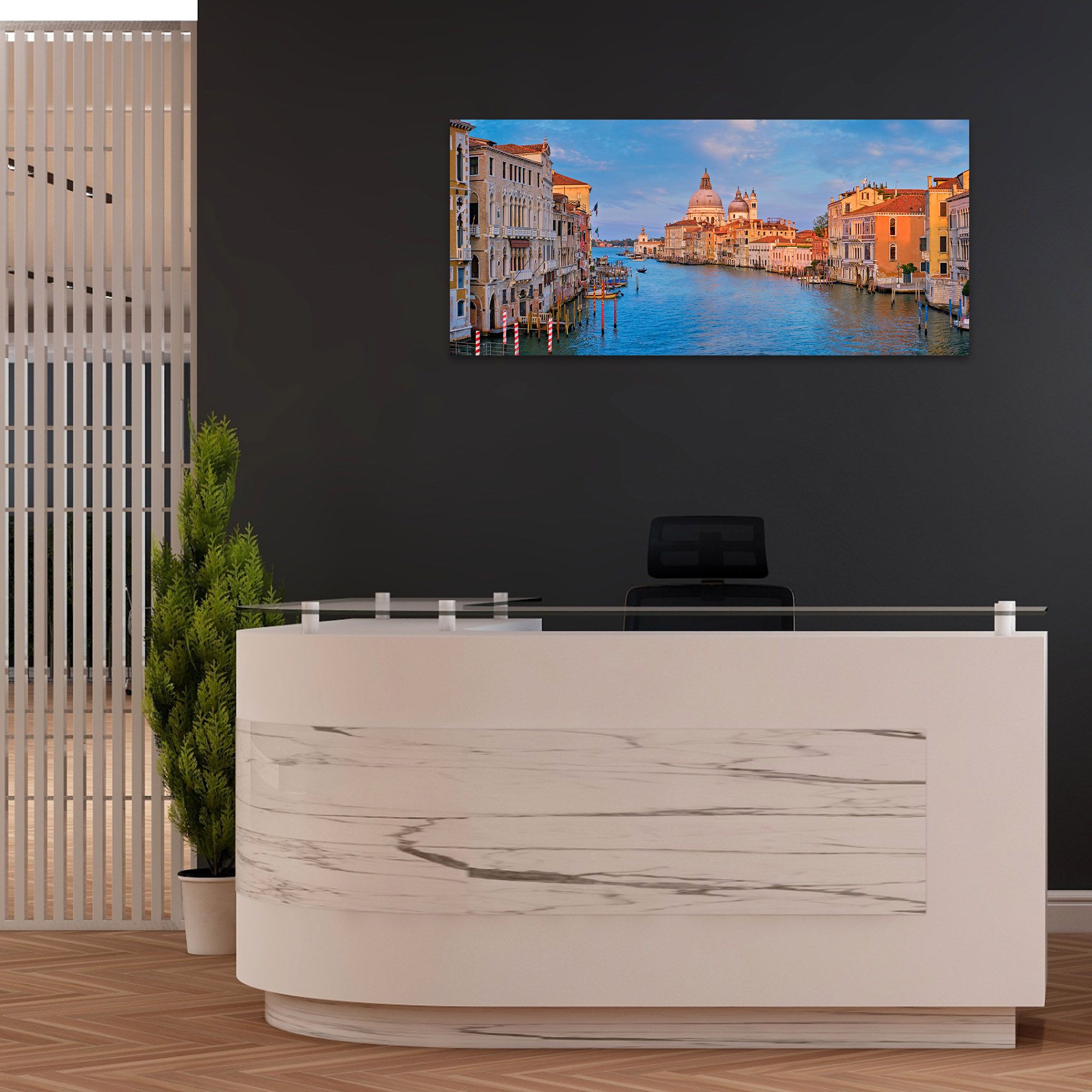 Lupia - Quadro moderno su Tela Canvas DEEP 65X143 cm, con paesaggi e localismi italiani, per casa, soggiorno, capezzale camera da letto, hotel, ufficio, VENEZIA - CHIESA DELLA SALUTE -