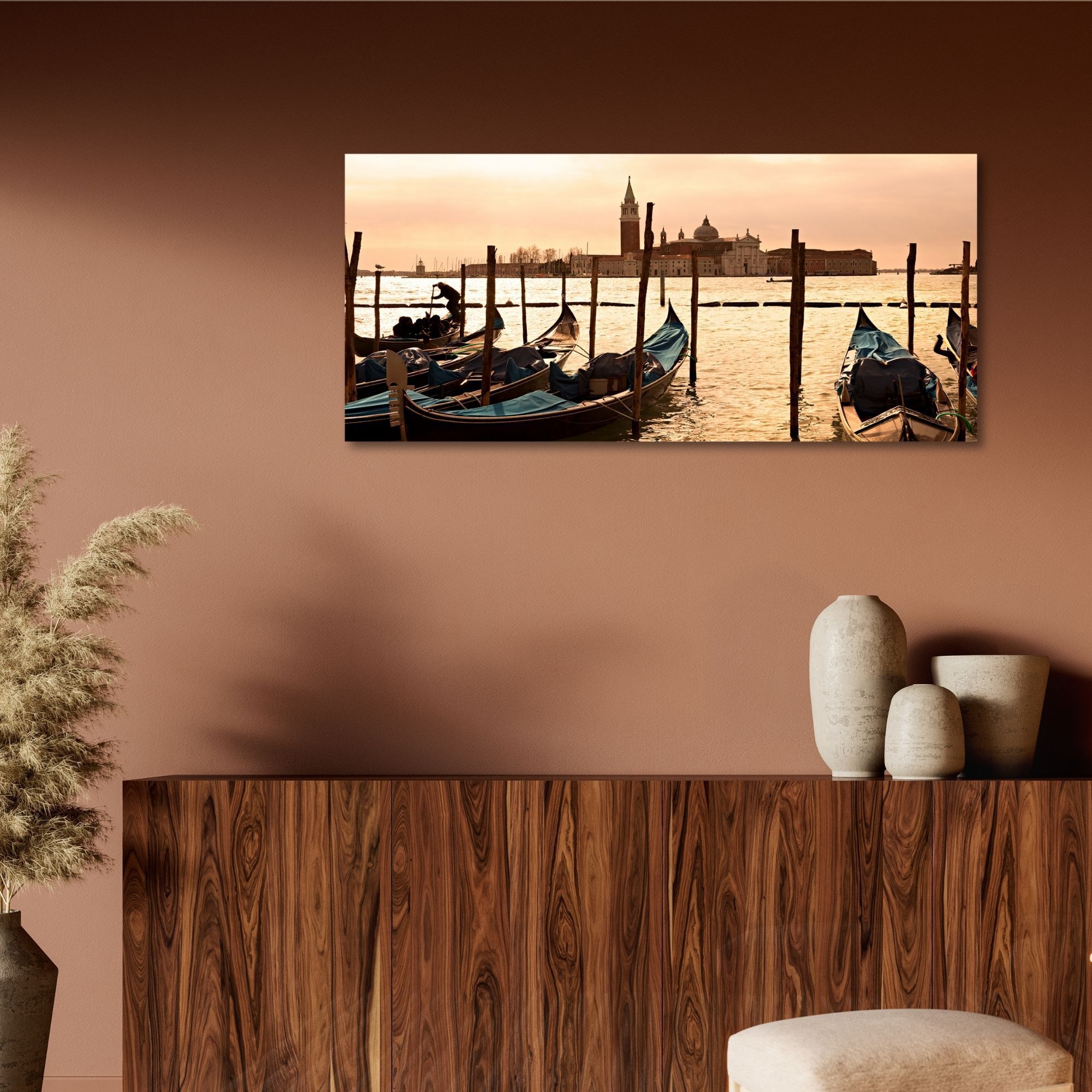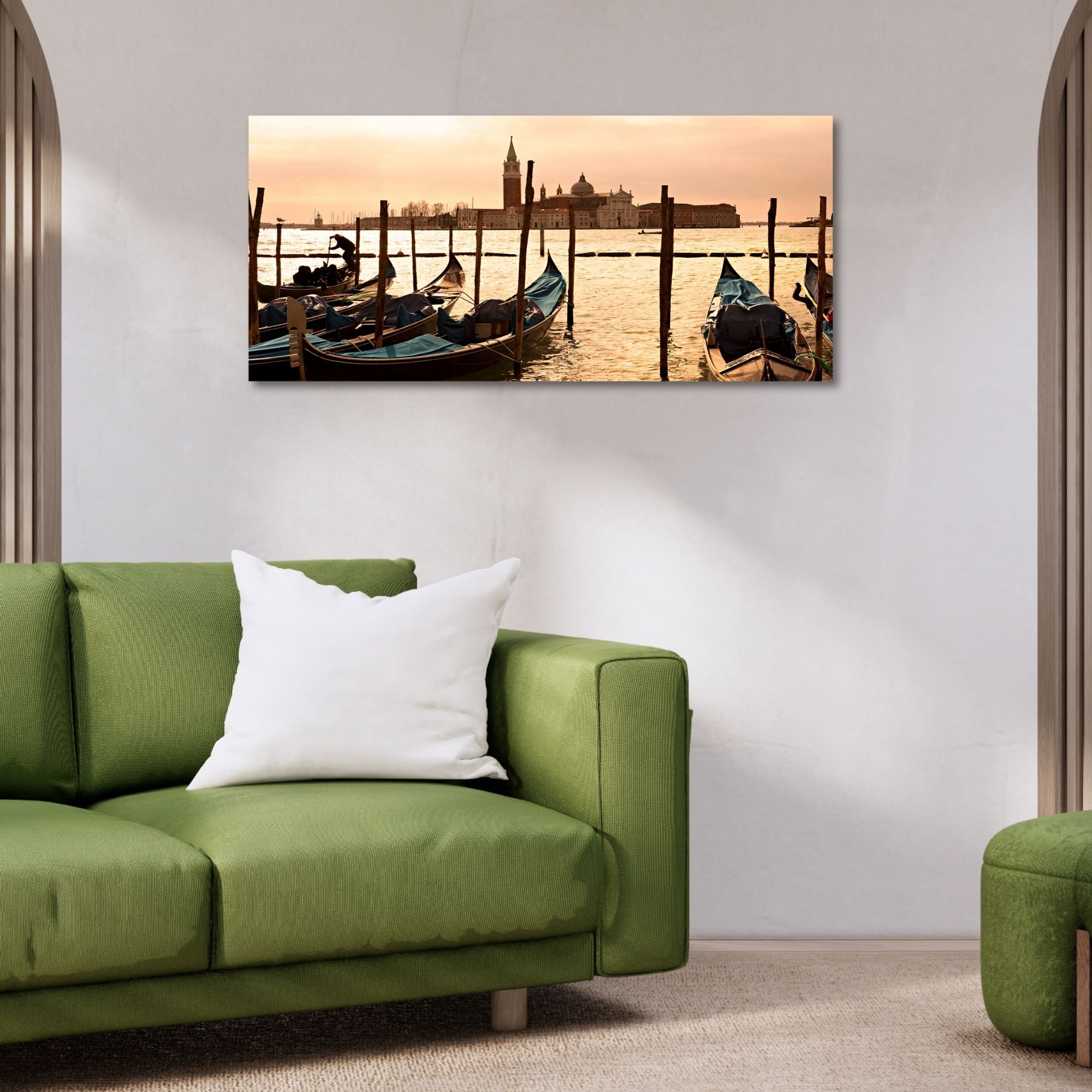 Lupia - Quadro moderno su Tela Canvas DEEP 65X143 cm, con paesaggi e localismi italiani, per casa, soggiorno, capezzale camera da letto, hotel, ufficio, VENEZIA - GONDOLE - ISOLA SAN GIORGIO -