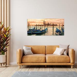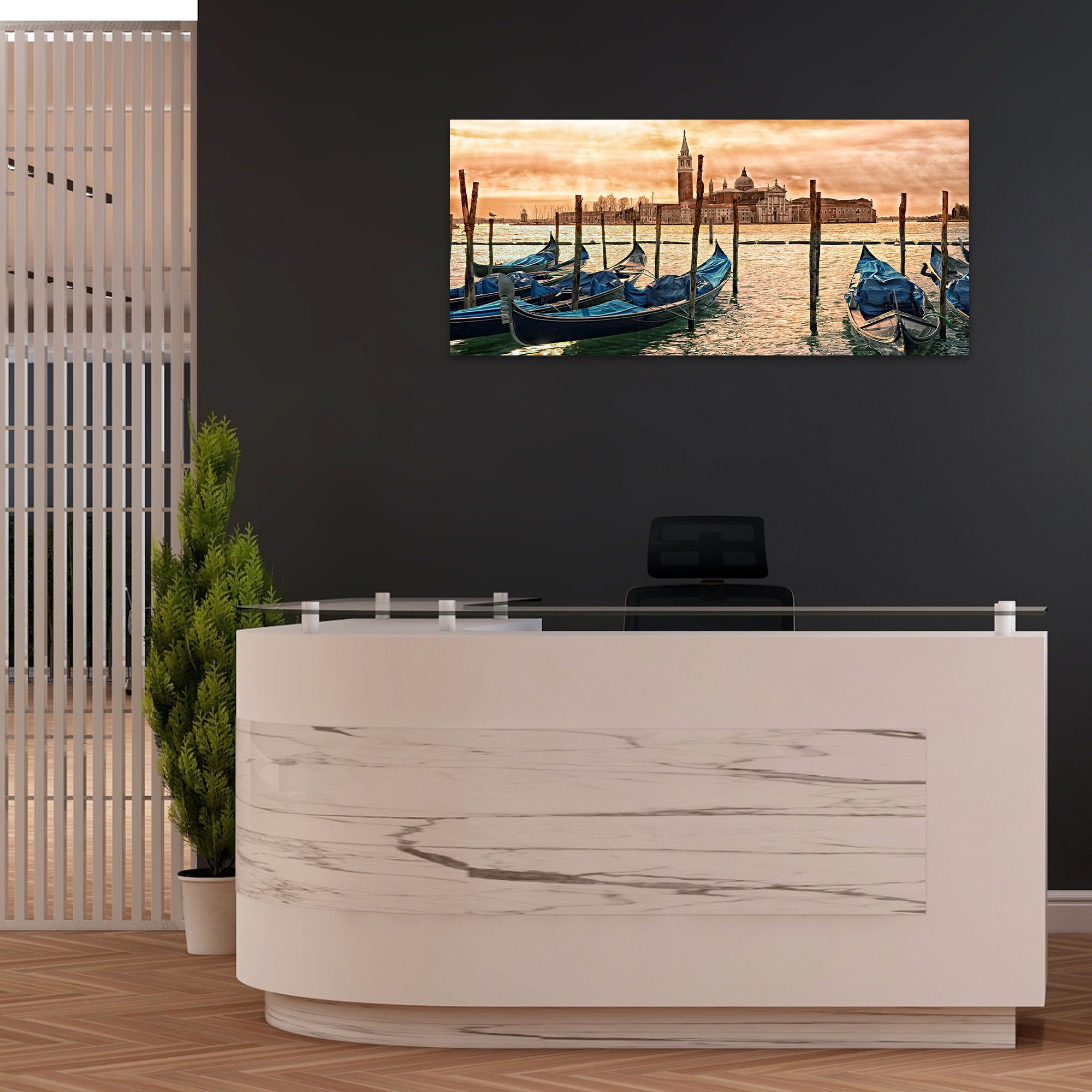 Lupia - Quadro moderno su Tela Canvas DEEP 65X143 cm, con paesaggi e localismi italiani, per casa, soggiorno, capezzale camera da letto, hotel, ufficio, VENEZIA - GONDOLE - ISOLA SAN GIORGIO -