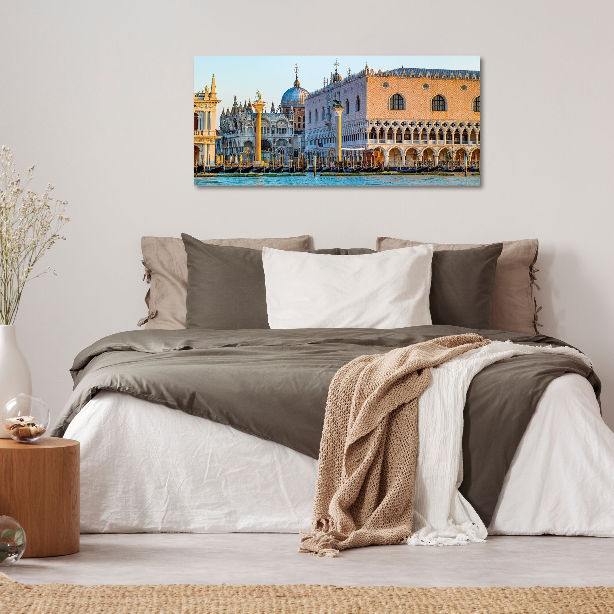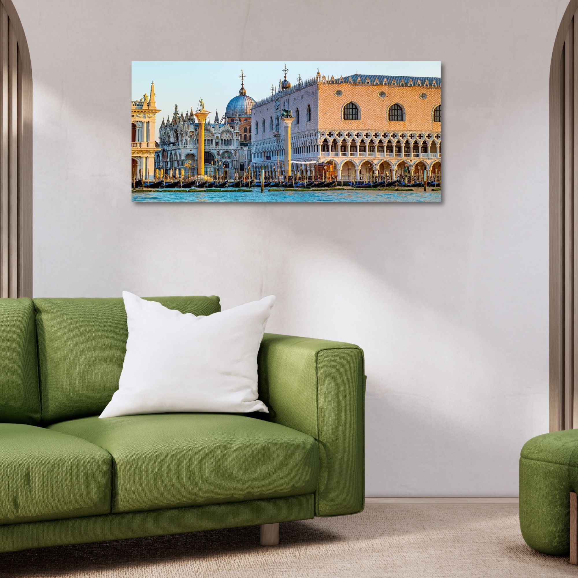 Lupia - Quadro moderno su Tela Canvas DEEP 65X143 cm, con paesaggi e localismi italiani, per casa, soggiorno, capezzale camera da letto, hotel, ufficio, VENEZIA - PIAZZA SAN MARCO GIORNO -