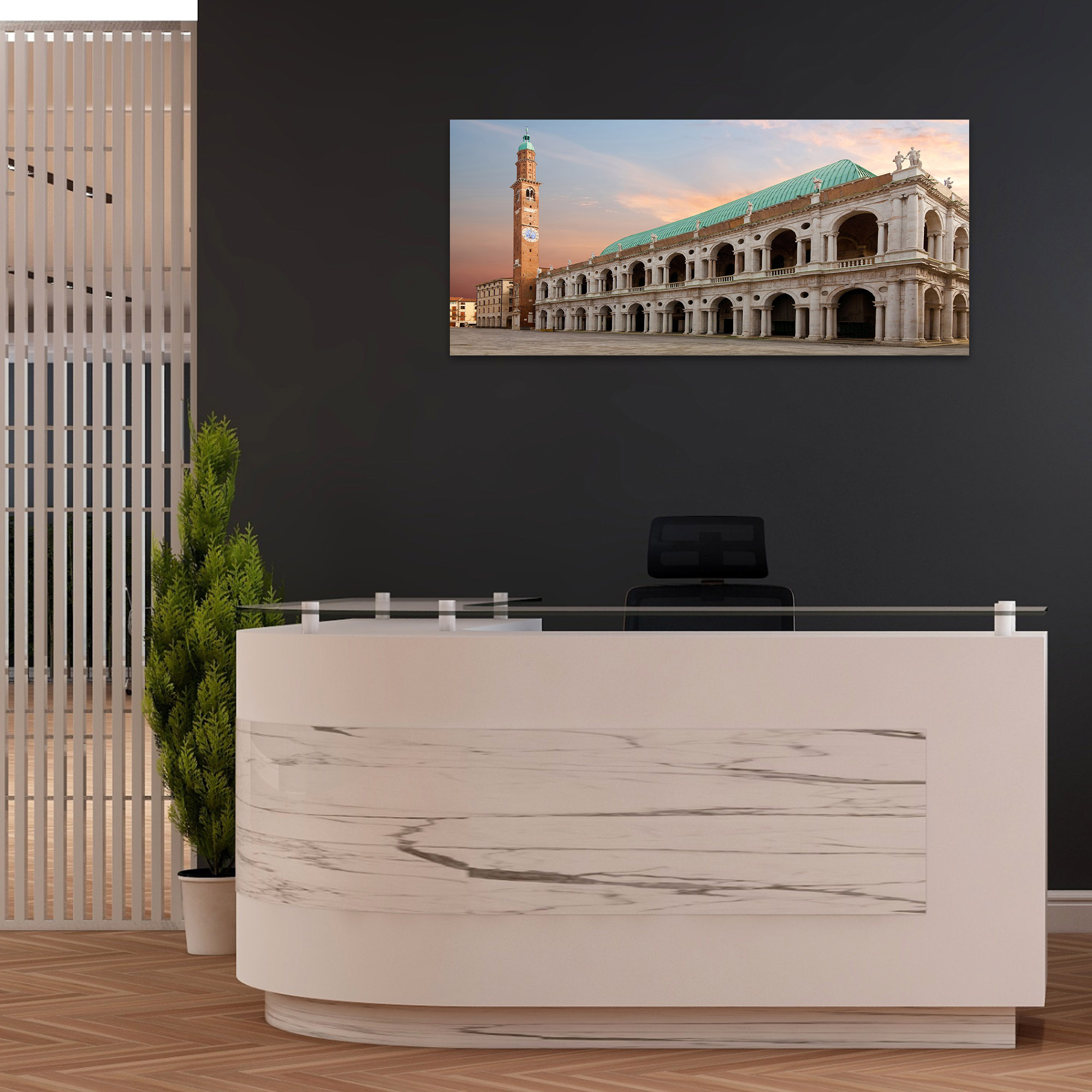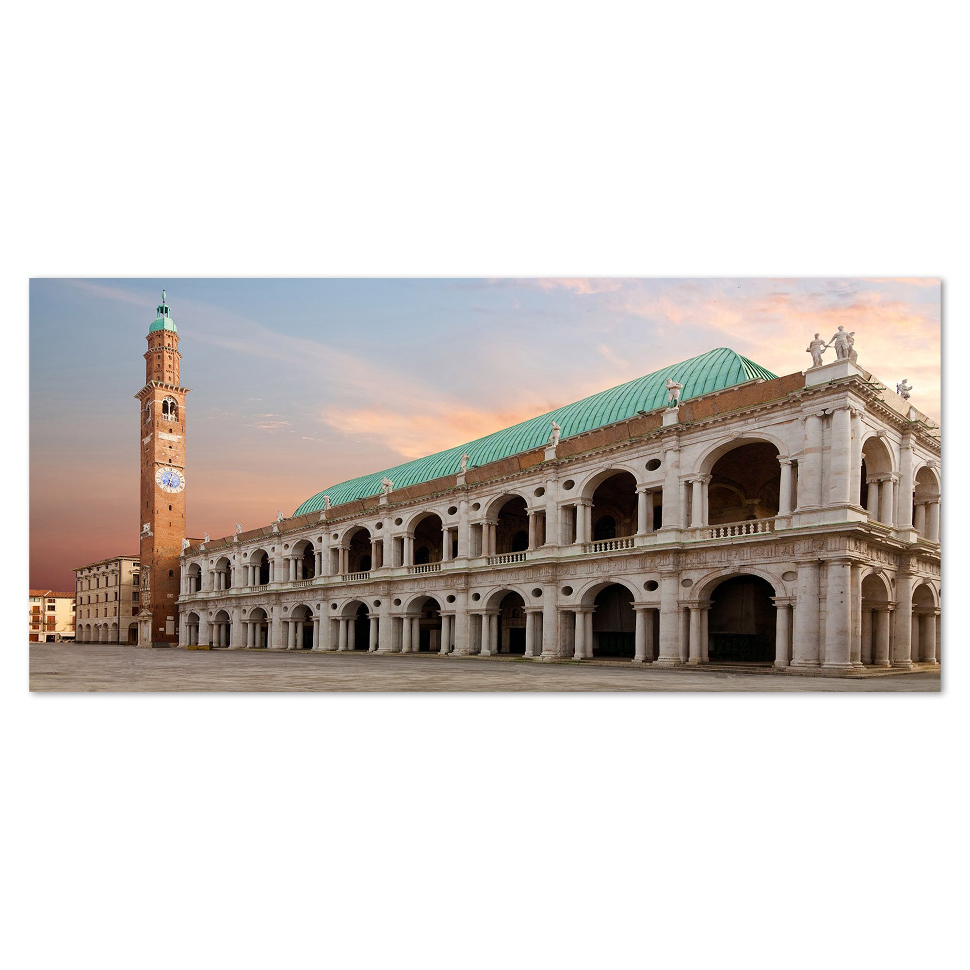 Lupia - Quadro moderno su Tela Canvas DEEP 65X143 cm, con paesaggi e localismi italiani, per casa, soggiorno, capezzale camera da letto, hotel, ufficio, VICENZA - BASILICA -