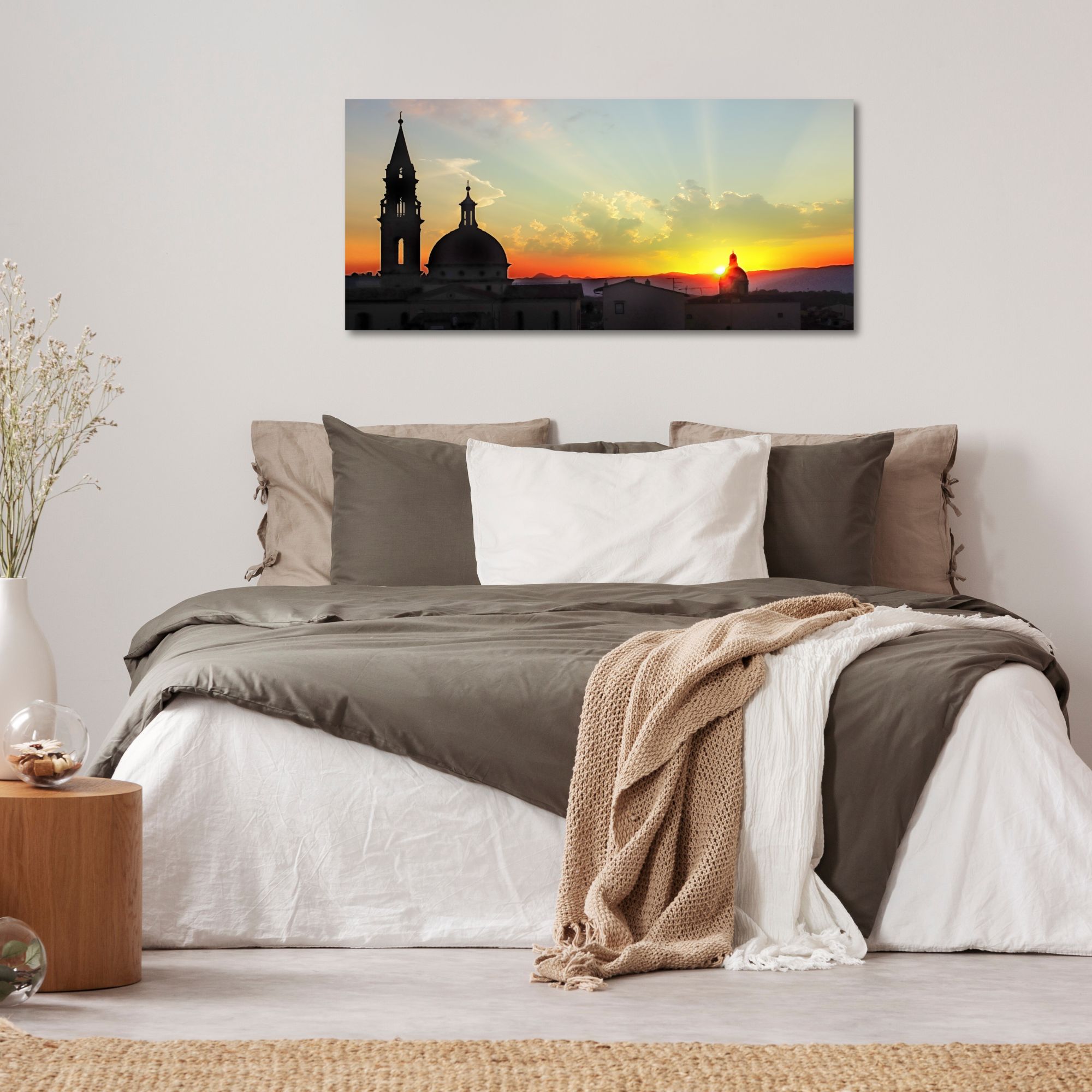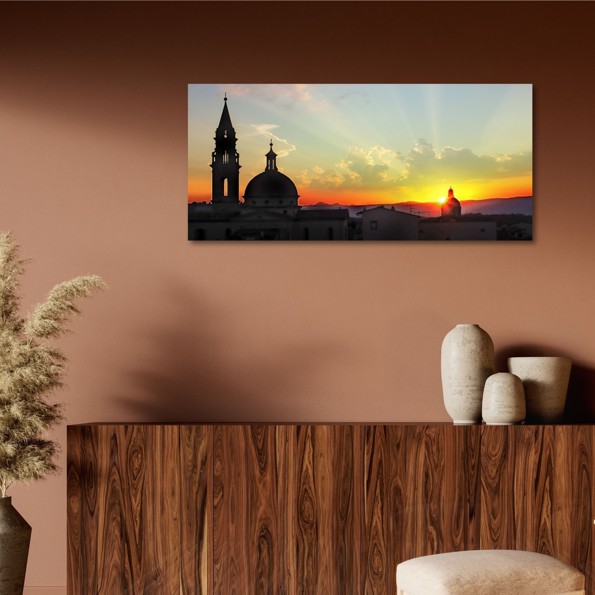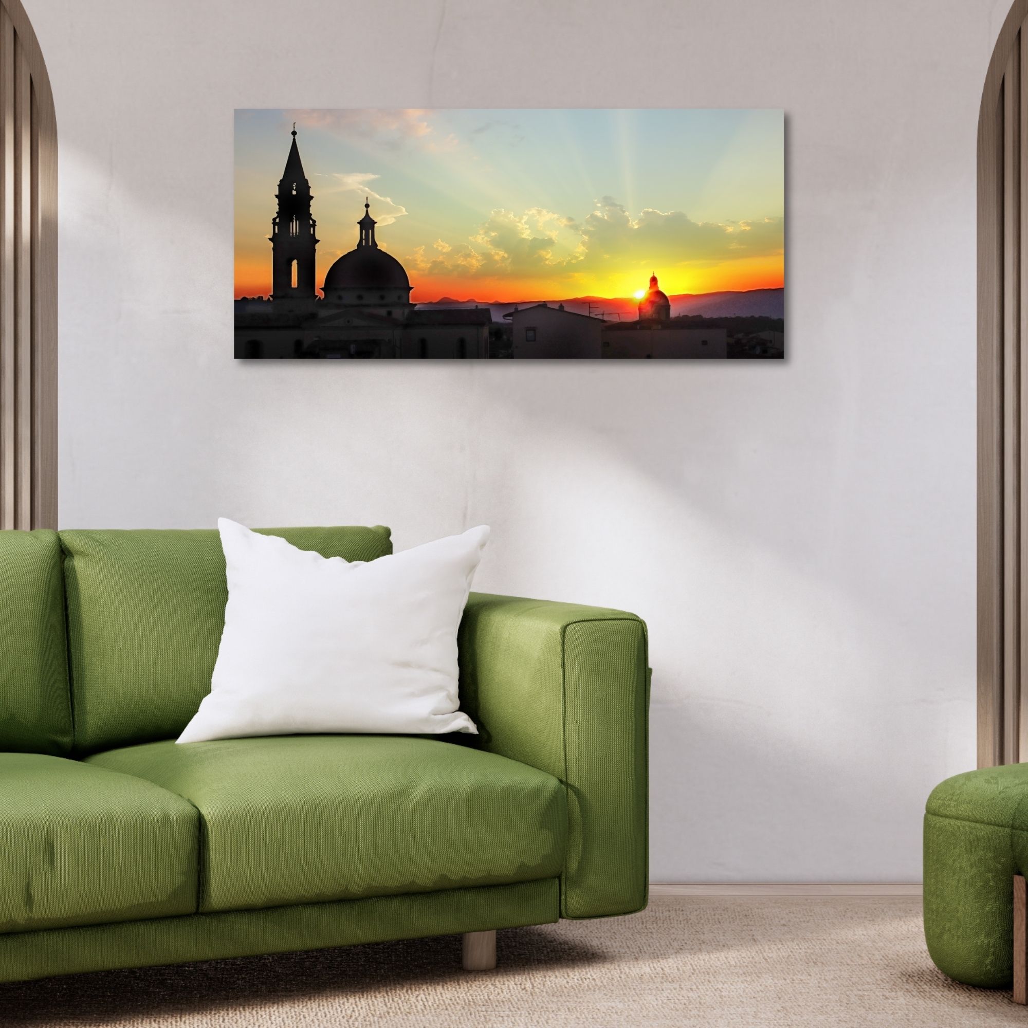 Lupia - Quadro moderno su Tela Canvas DEEP 65X143 cm, con paesaggi e localismi italiani, per casa, soggiorno, capezzale camera da letto, hotel, ufficio, VICENZA - PANORAMA TRAMONTO -