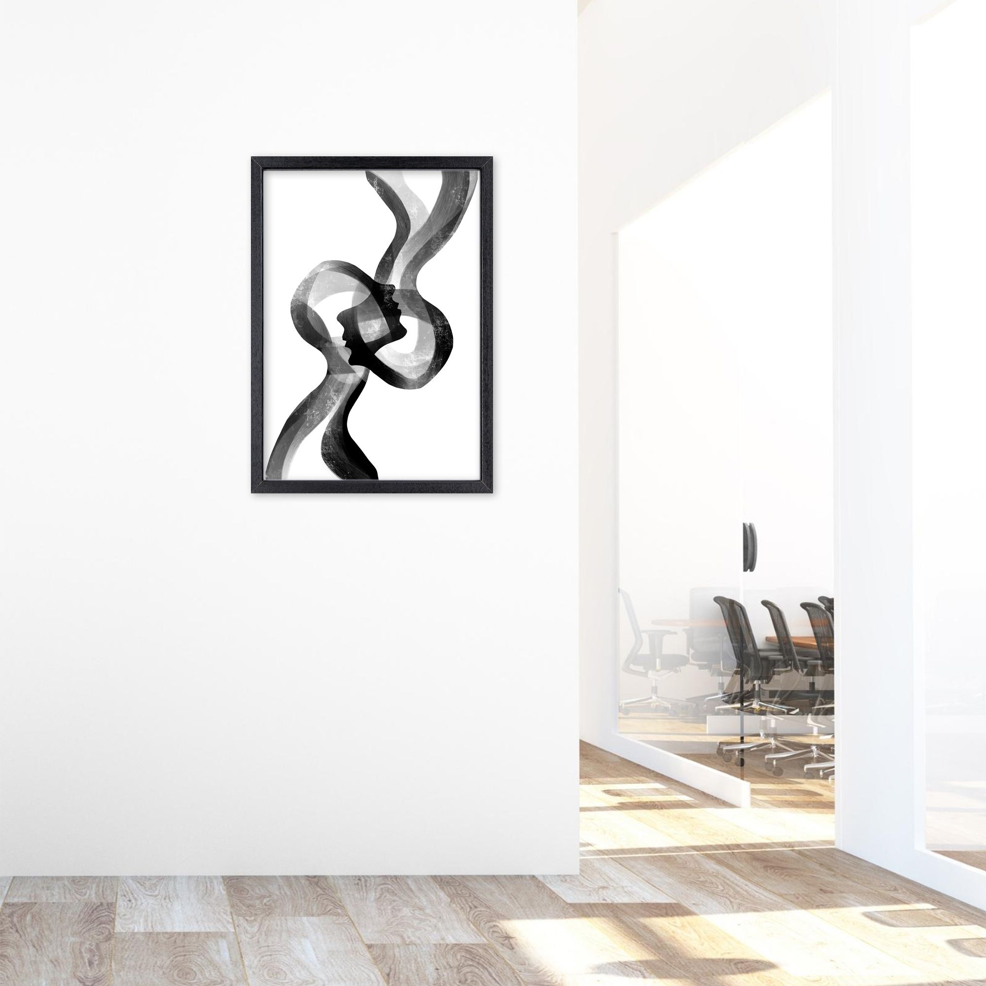 La stampa digitale ad alta risoluzione esalta ogni tratto del disegno, valorizzando la pulizia grafica e la profondità del contrasto tra il bianco e il nero. L'effetto finale è quello di un'opera d'arte intensa ma essenziale, capace di dialogare con qualsiasi stile d’arredamento, dal più contemporaneo al più classico.
