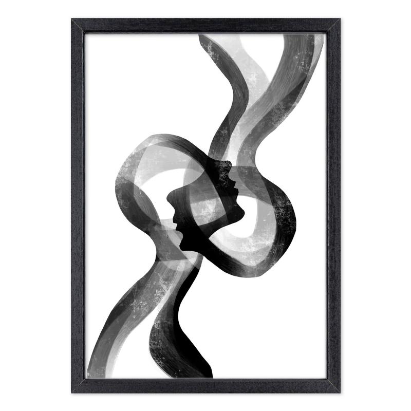 L'opera raffigura due volti astratti che si fondono armoniosamente l’uno nell’altro creando un equilibrio di anime perfetto tra forme e vuoti, linee e silenzi visivi.