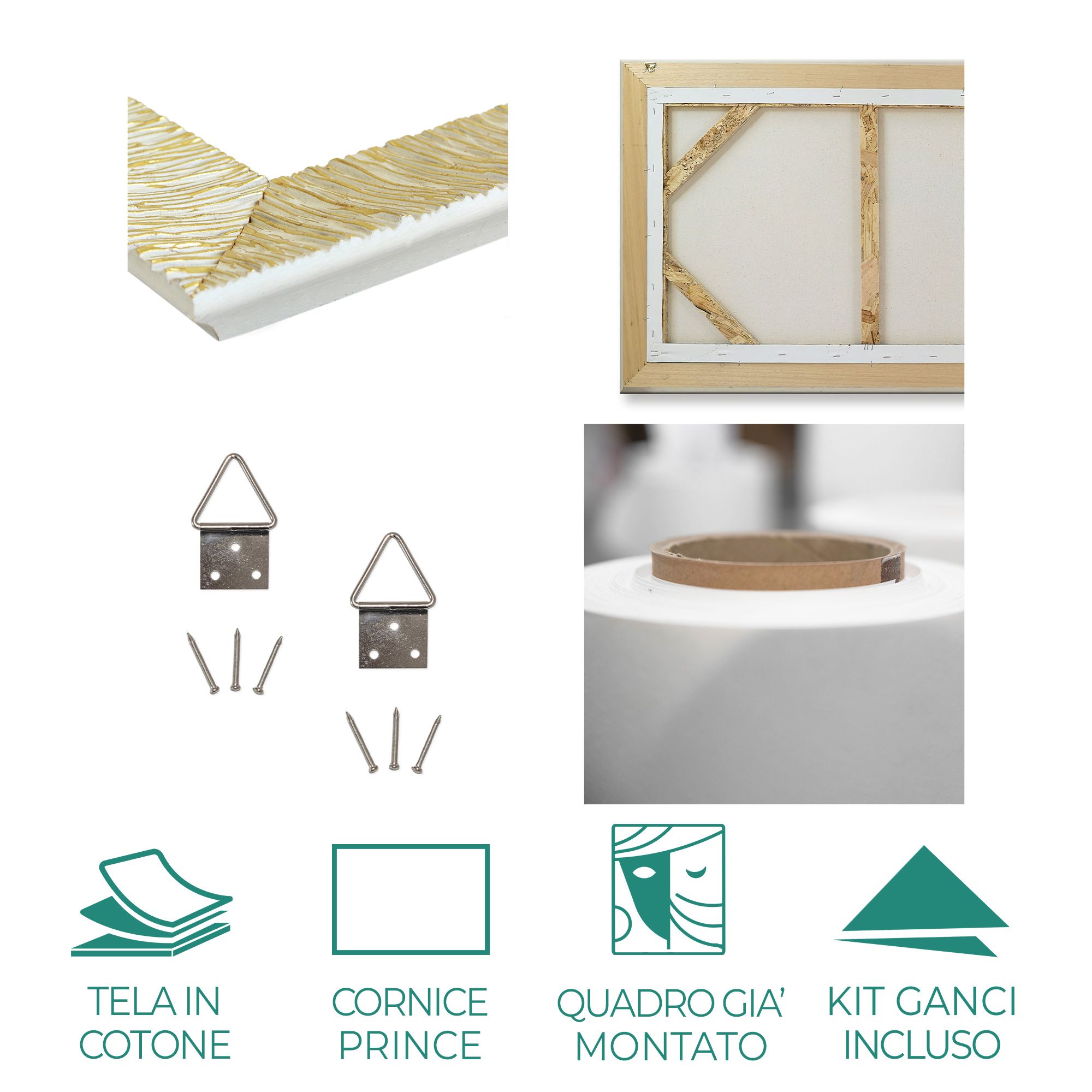 La cornice PRINCE in Argento Silver oppure Oro Glod con spessore di 3 cm e larghezza di 7 cm valorizza la grafica e dona profondità alla stampa, rendendo il quadro una vera e propria opera decorativa da parete. L’opera è pronta da appendere: non sono richieste installazioni complesse. Il tutto rigorosamente Made in Italy, con cura artigianale.