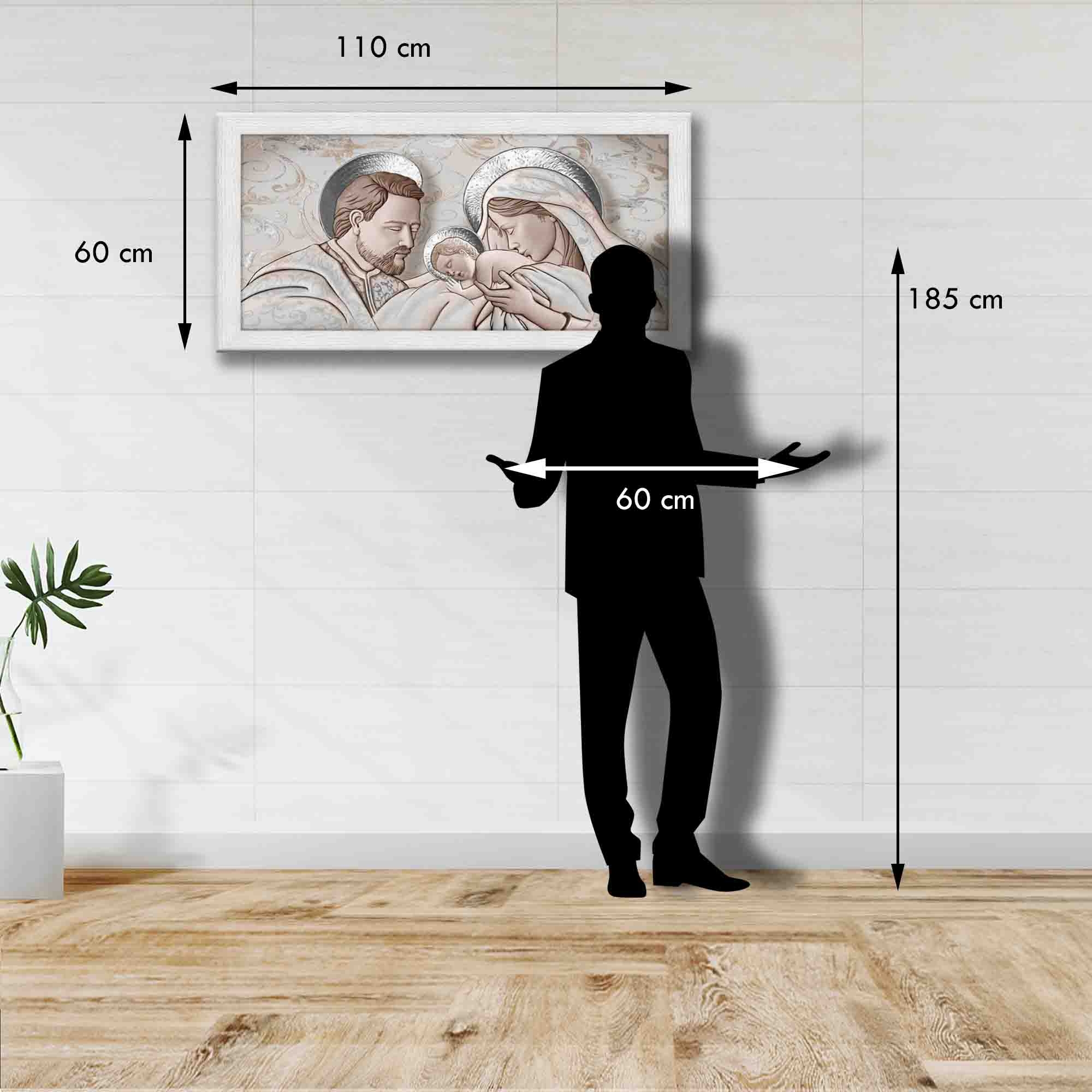 Il tema proposto è una vera e propria fonte di ispirazione per la tua casa: raffigura la Sacra Famiglia in un dolce e caloroso abbraccio.