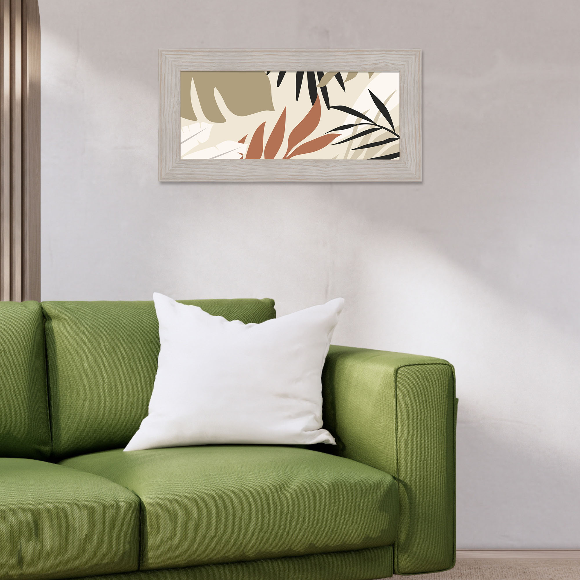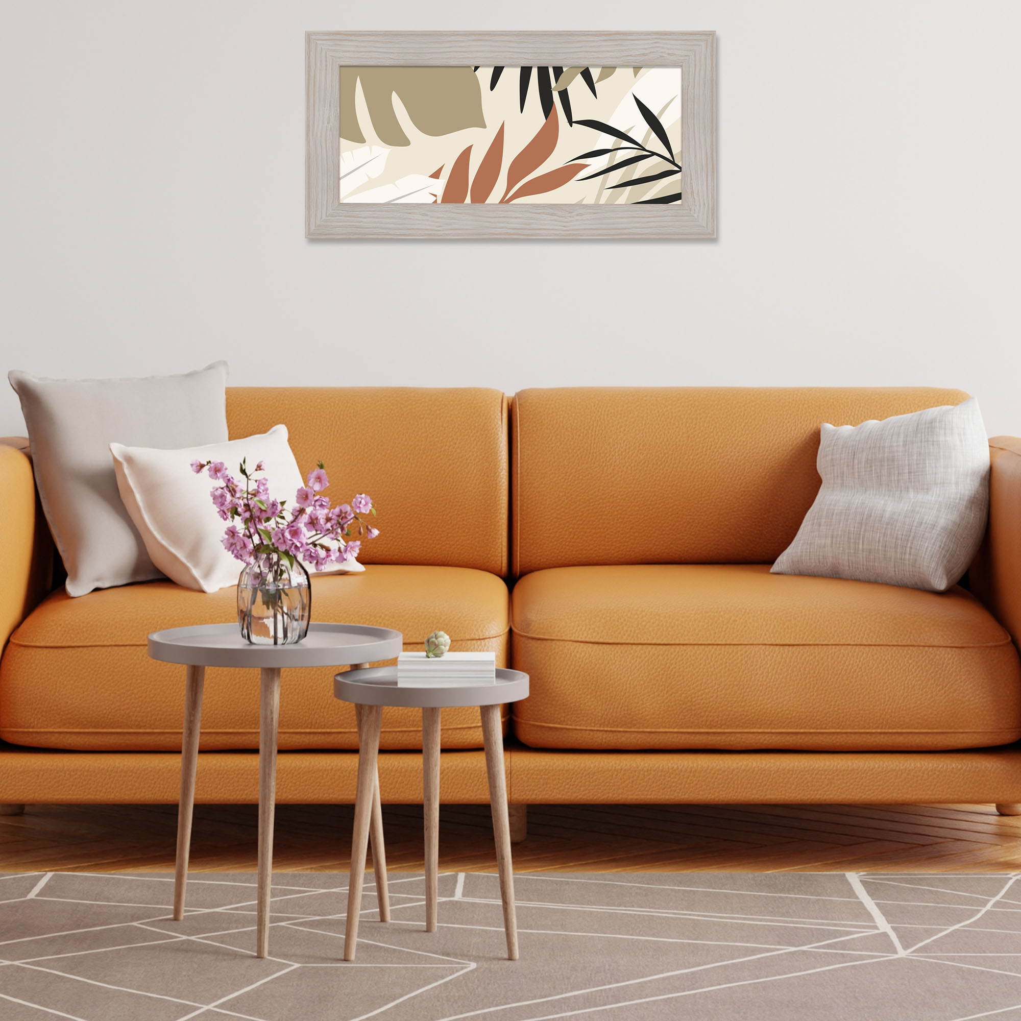 Quadro moderno, per soggiorno camera da letto, con cornice BOSTON colore BEIGE, 28x57 cm, LARGE TROPICAL stampa su pannello in legno, stile tropicale -