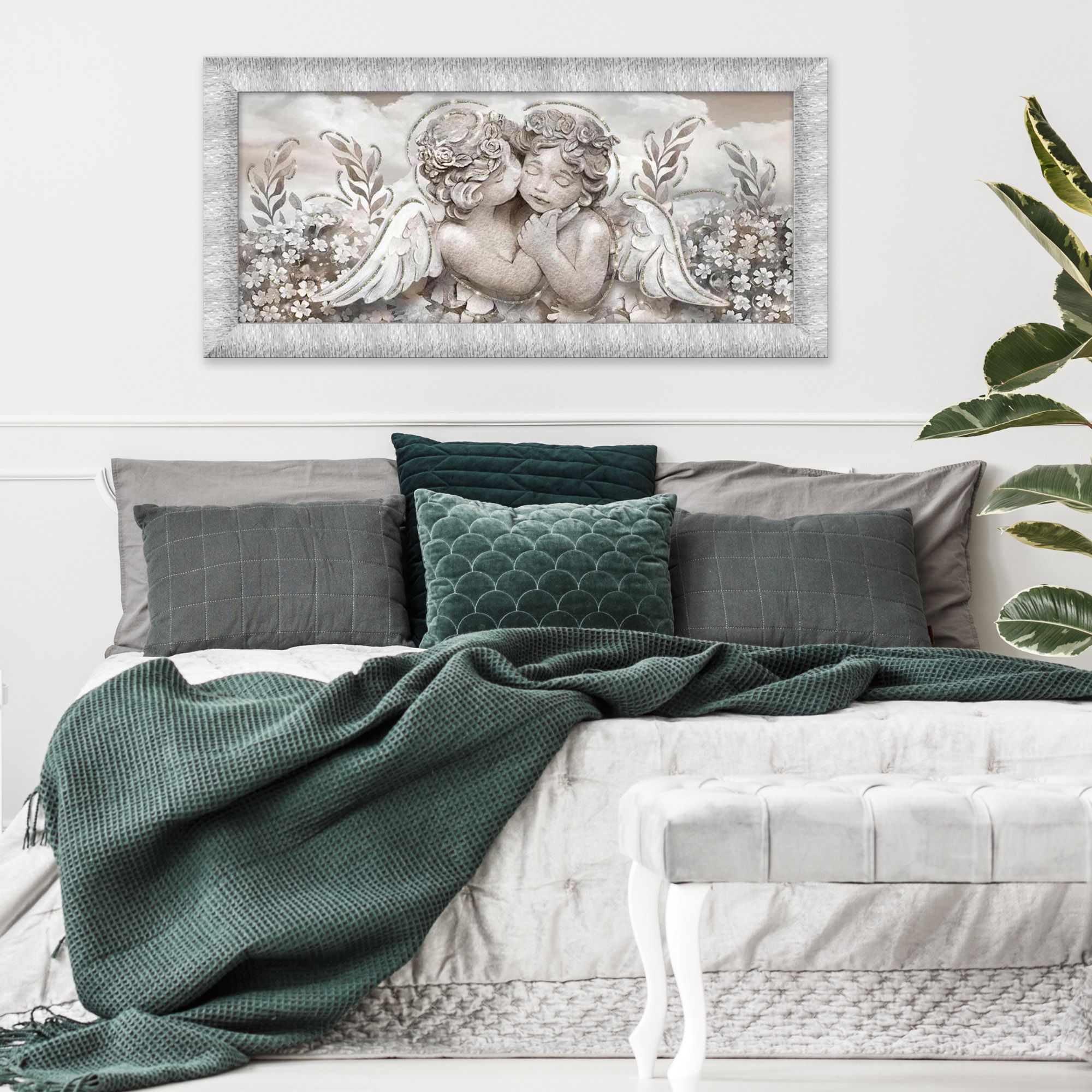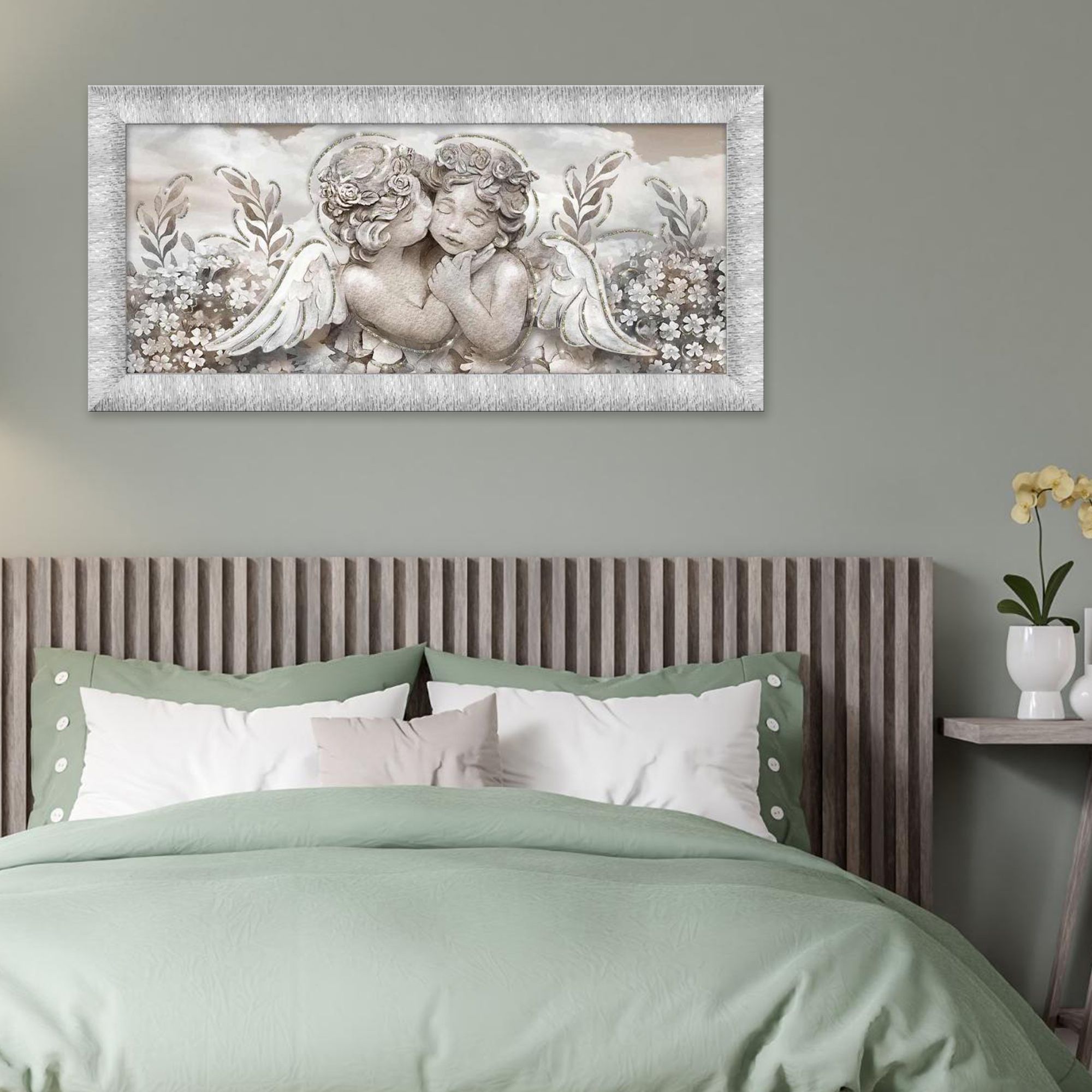 Lupia - Quadro Moderno su tela con Cornice PRINCE Multicolor ANGELS IN FLOWERS MIX SILVER, con Glitter brillantini, 63x133 cm, per Soggiorno, Camera da Letto Testata, Capezzale, Design Elegante -