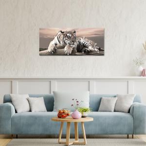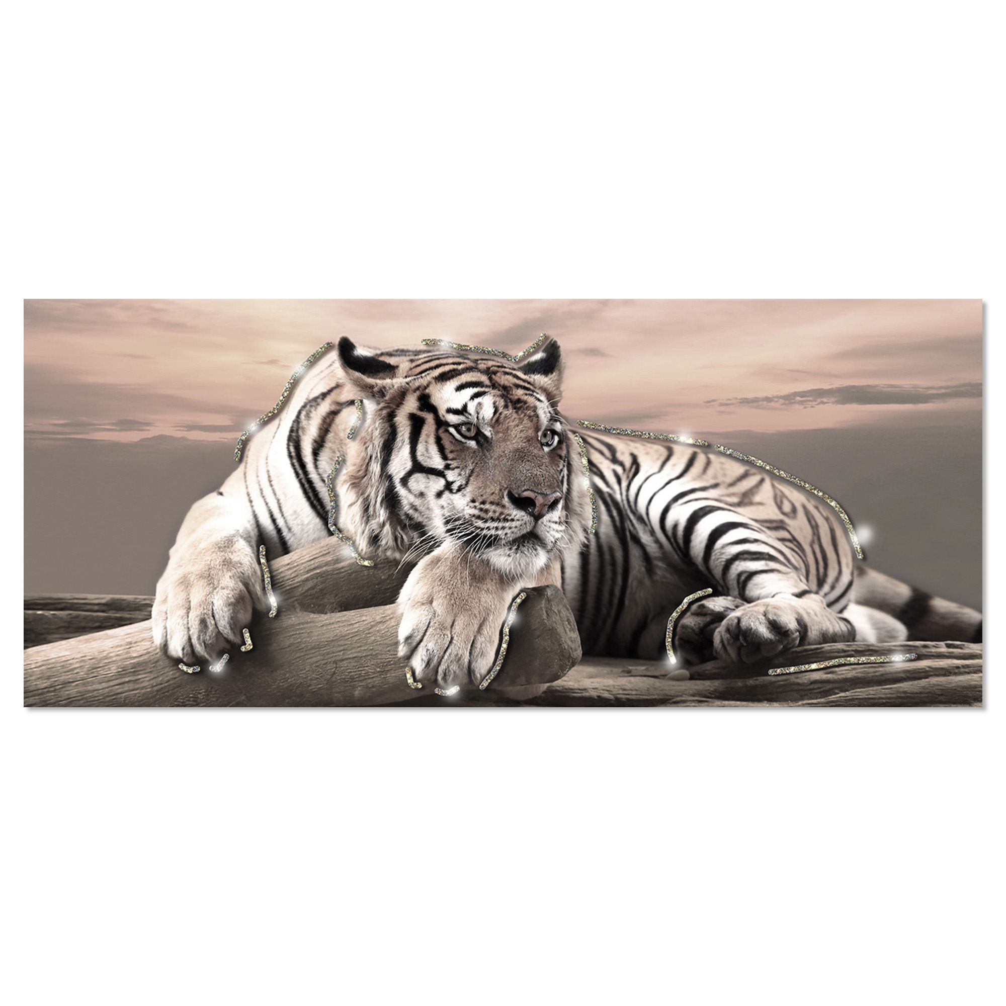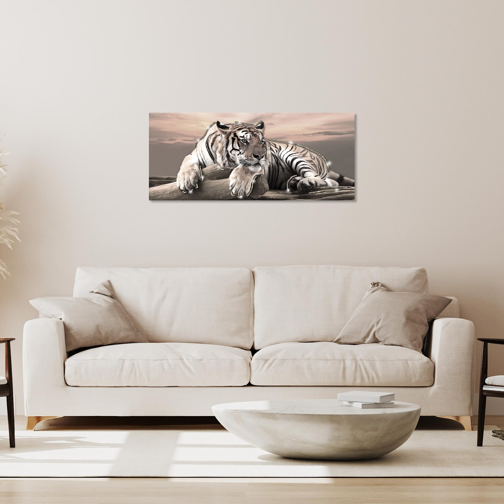 Lupia - Quadro Moderno su Tela con Brillantini e Glitter, BRILLANT tema TIGRE Bianca, Made in Italy, Pronto da Appendere, 52x122 cm, Legno, per soggiorno, capezzale camera da letto, ufficio -
