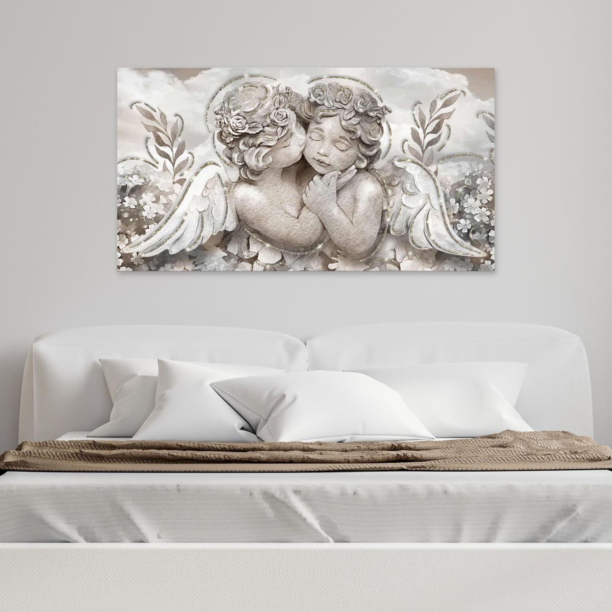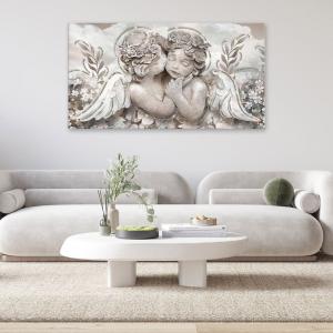 Quadro moderno Shiny, una rappresentazione con stampa su Tela in Cotone e decorazione con brillantini GLITTER, con telaio in Legno spesso 3 cm, gia’ montato, pronto da appendere facilmente. Soggetti artistici ad alta risoluzione con tema angeli, una tela ricca di colori vividi realizzata completamente in Italia. Il quadro dona un tocco di arte e colore alla tua parete. Un’idea originale per decorare le pareti della tua casa come soggiorno, camera da letto, in cucina, bagno, sale da pranzo, o di tutti i tuoi ambienti anche non domestici, come ufficio, Hotel, bar, negozio o laboratorio, perché sono adatte a qualsiasi tipologia di stile e arredamento. Per dare ancora piu' importanza al prodotto il bordo e' decorato sui colori della tela quindi viene data continuazione alla stampa ingrandendo cosi' l’ottimo effetto visivo del quadro. La dimensione totale del prodotto e' 77x143 cm.