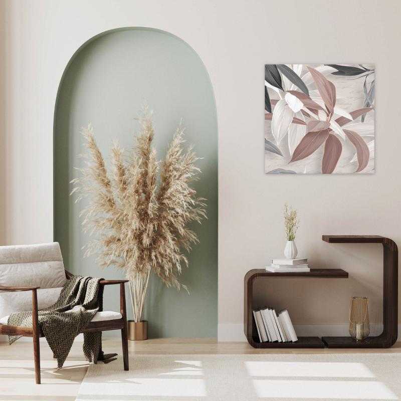 La stampa di questo quadro per coprire cassaforte propone una grafica armoniosa di foglie stilizzate, dai toni neutri e delicati, capaci di evocare sensazioni di quiete e leggerezza.