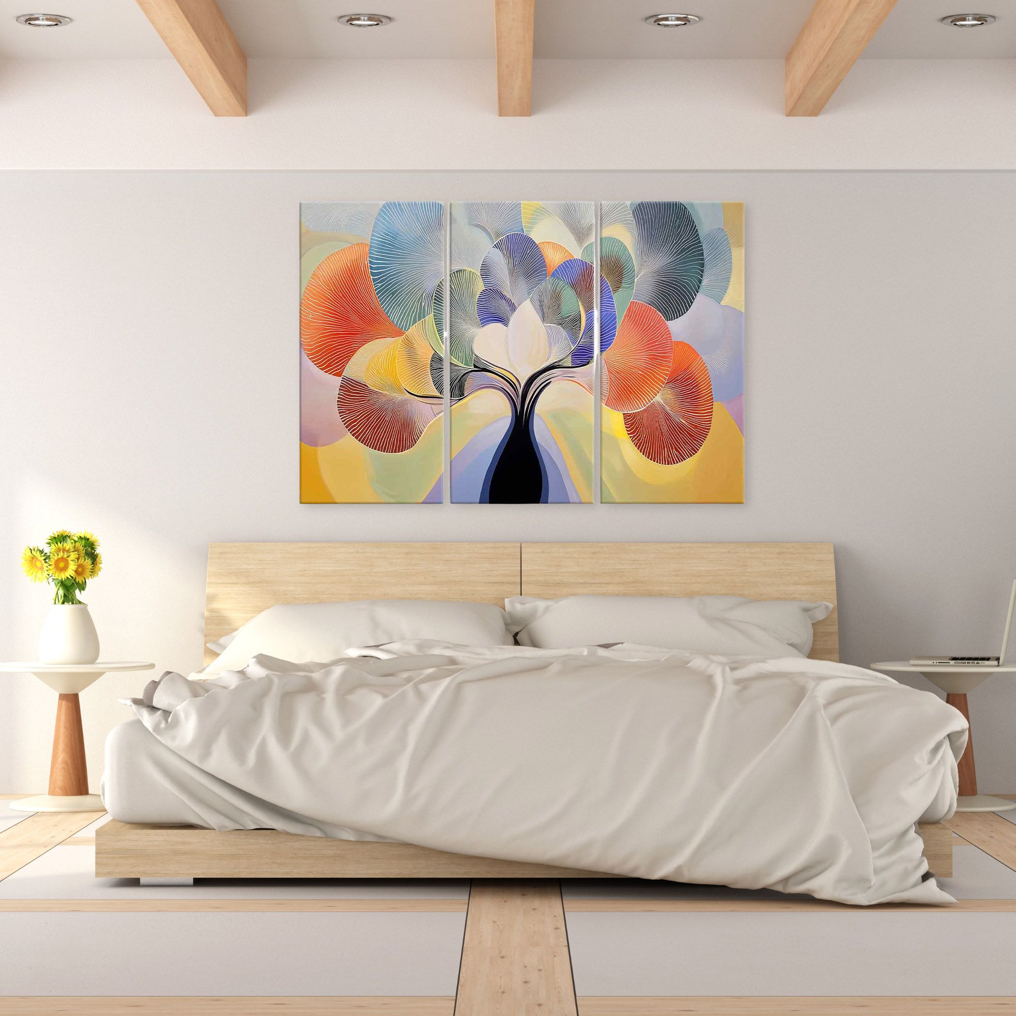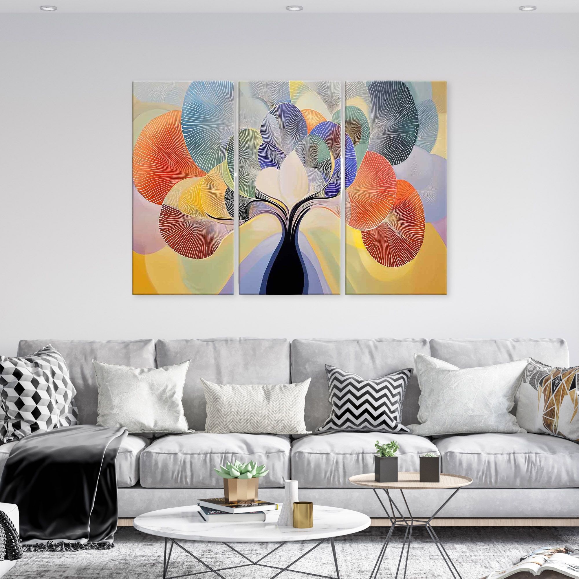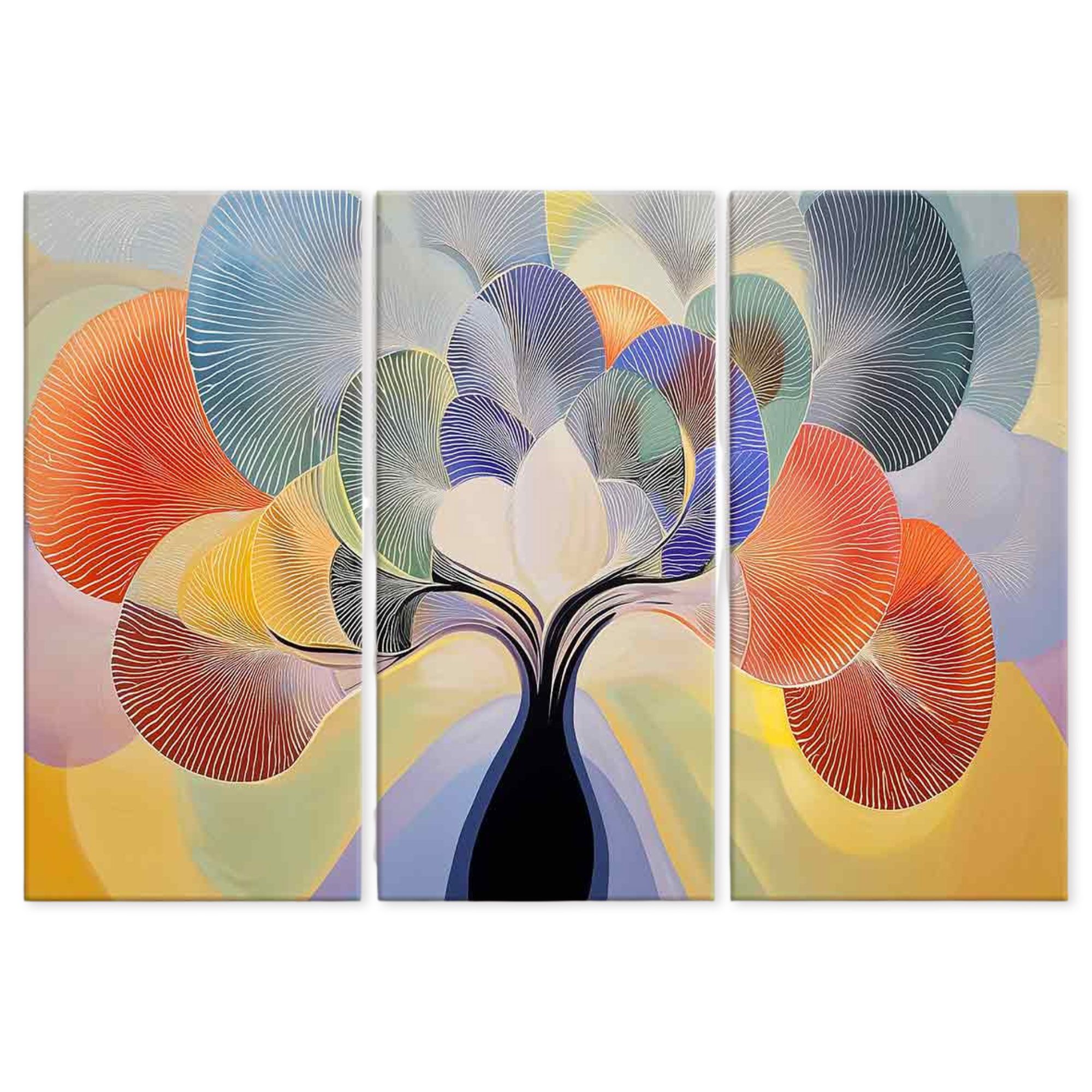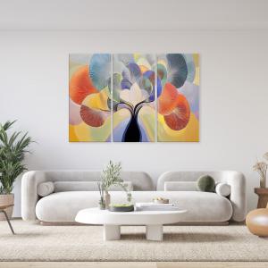 Lupia - GRANDE QUADRO Moderno 3 Pezzi TREE GRAND LEAVES, Stampa su Tela poliestere 122x180 cm, Albero della Vita colorato, Pronto da Appendere, Decorazione per Soggiorno, camera da letto e Ufficio -