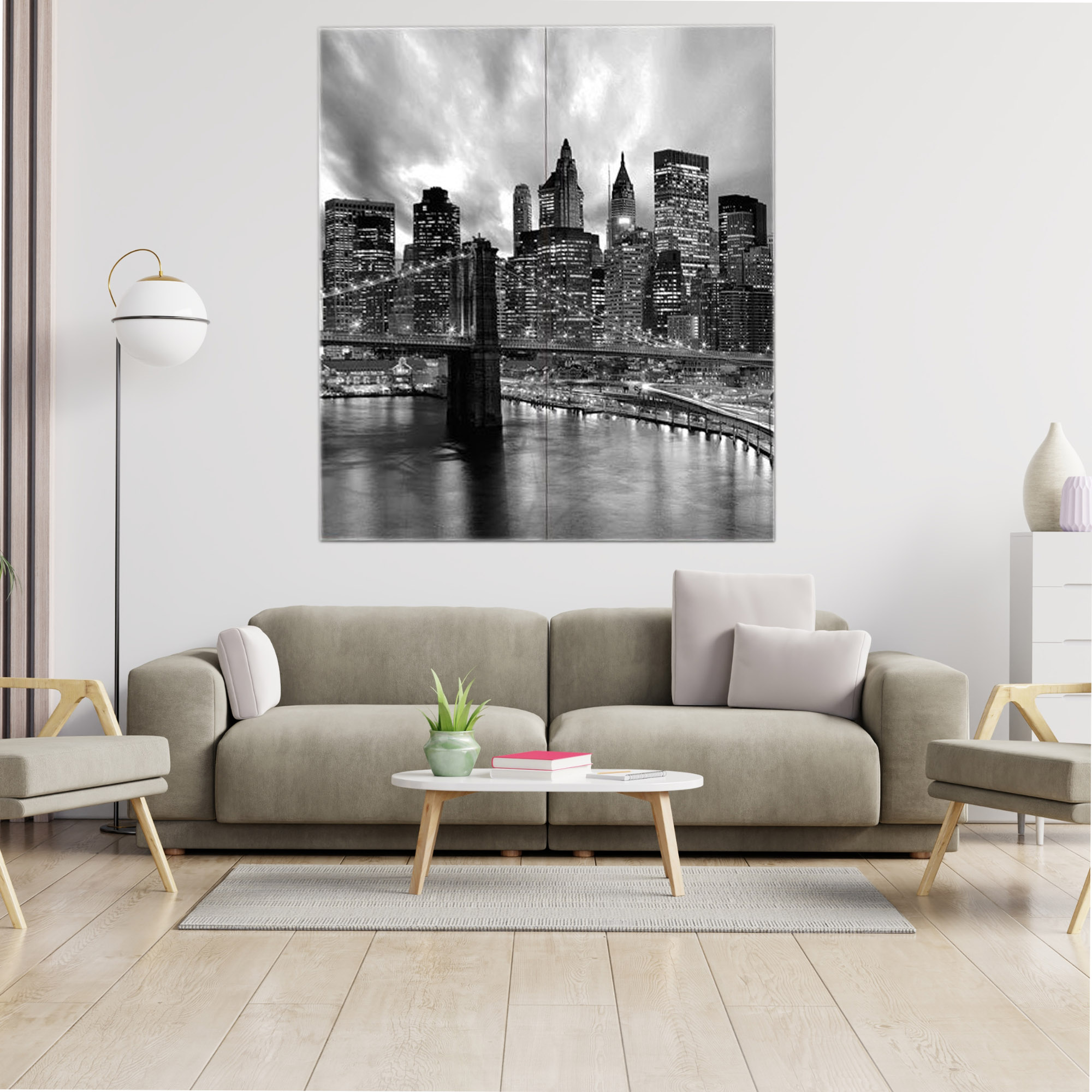 Quadro moderno grande su tela WALL 160x160 cm CITTA MANHATTAN BLACK, set 4 pz tele 80x80 cm per soggiorno camera da letto -