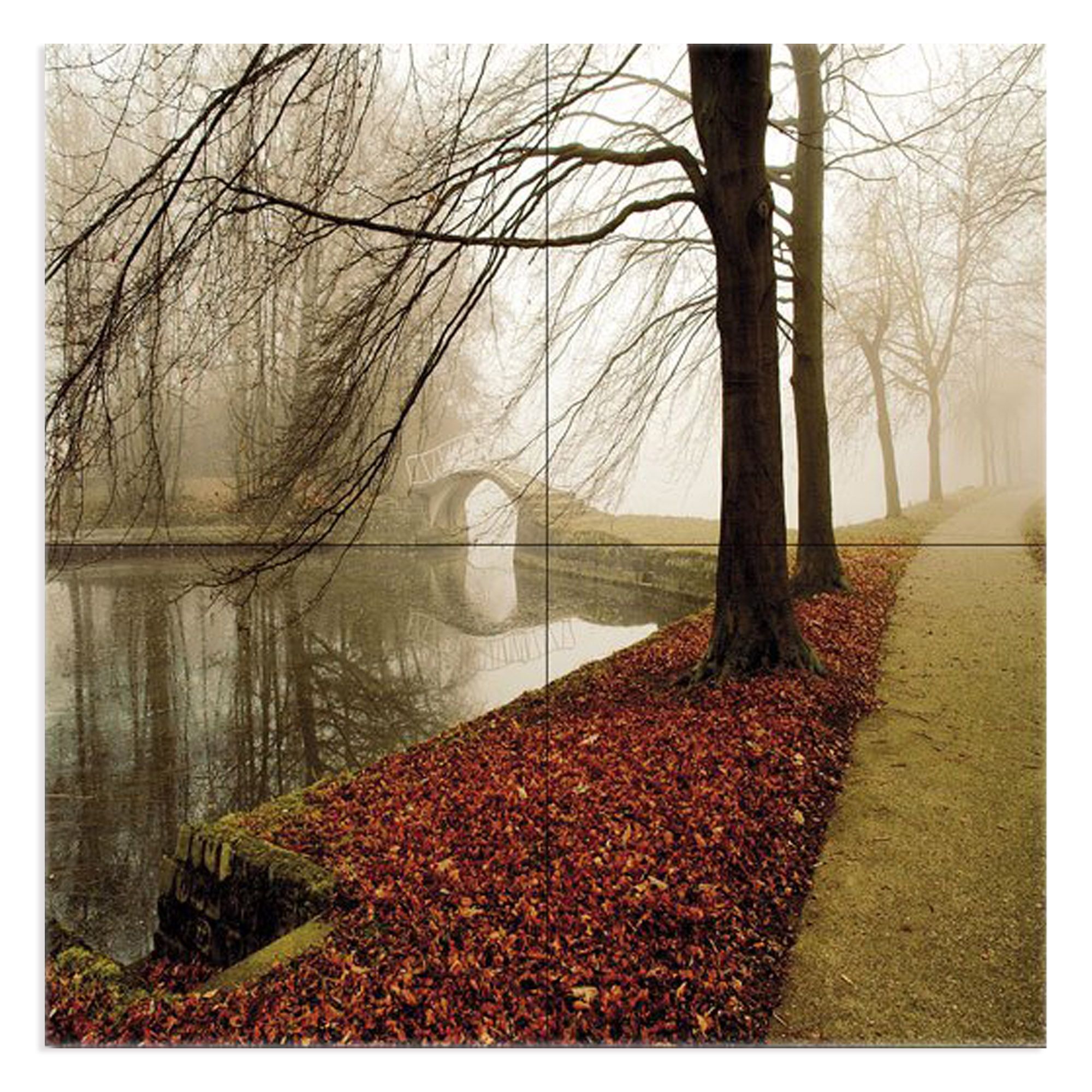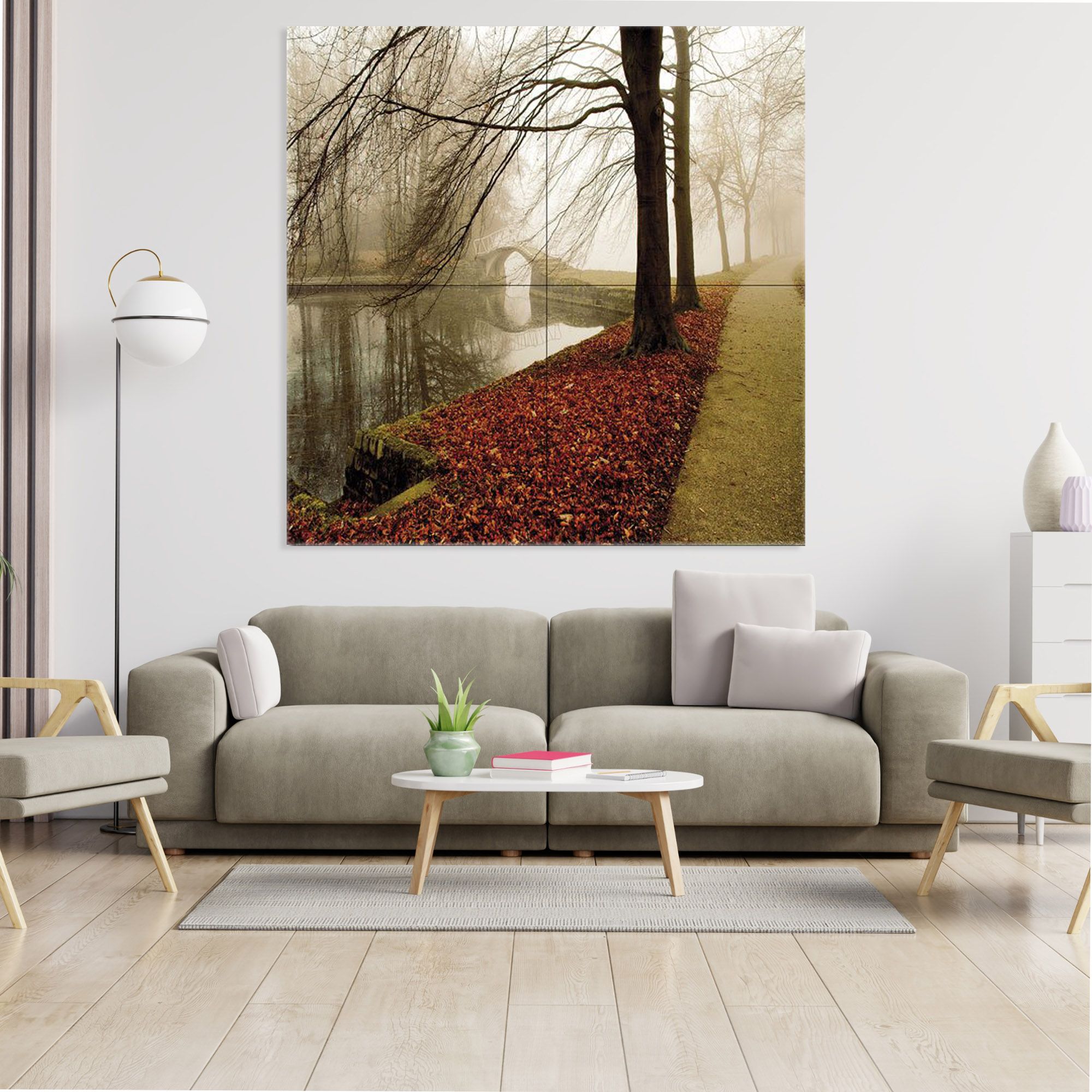 Quadro moderno grande su tela WALL 160x160 cm PAESAGGI RIVER BRIDGE, set 4 pz tele 80x80 cm per soggiorno camera da letto -
