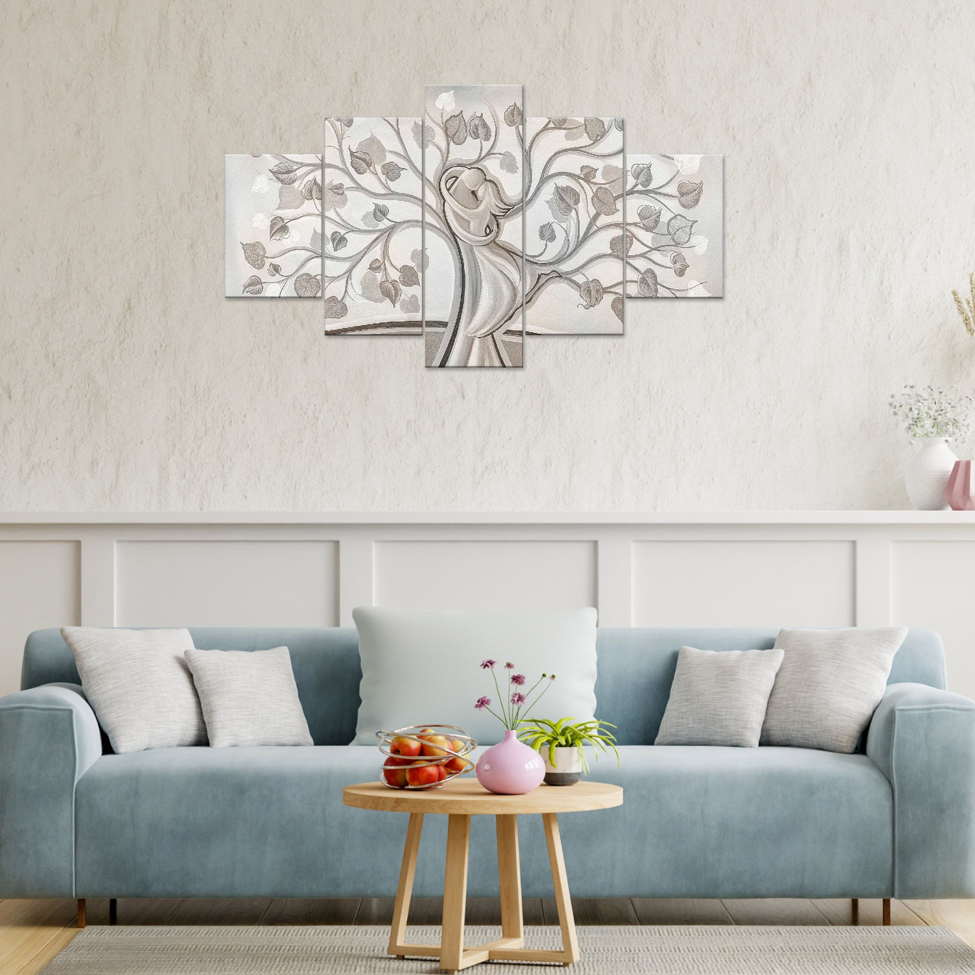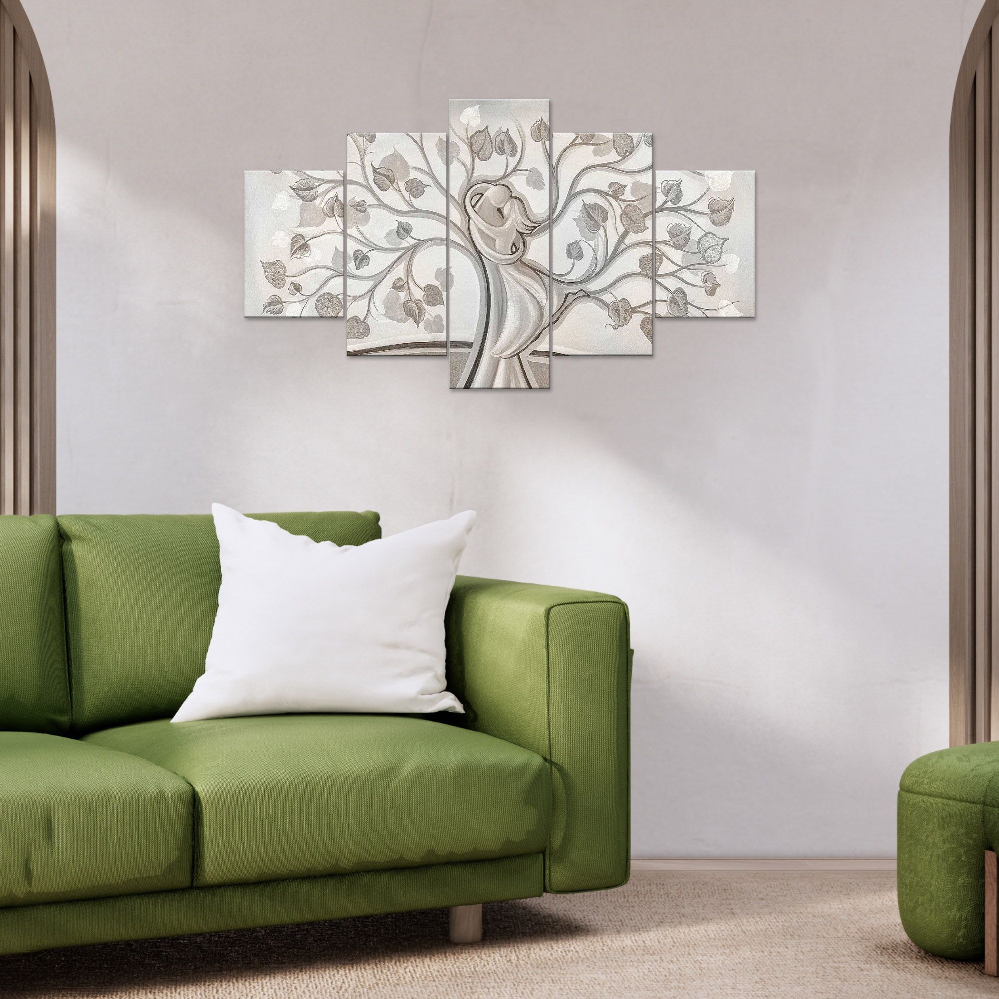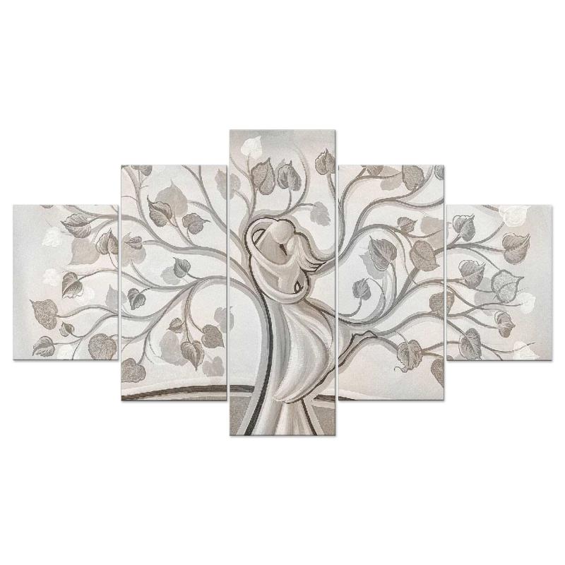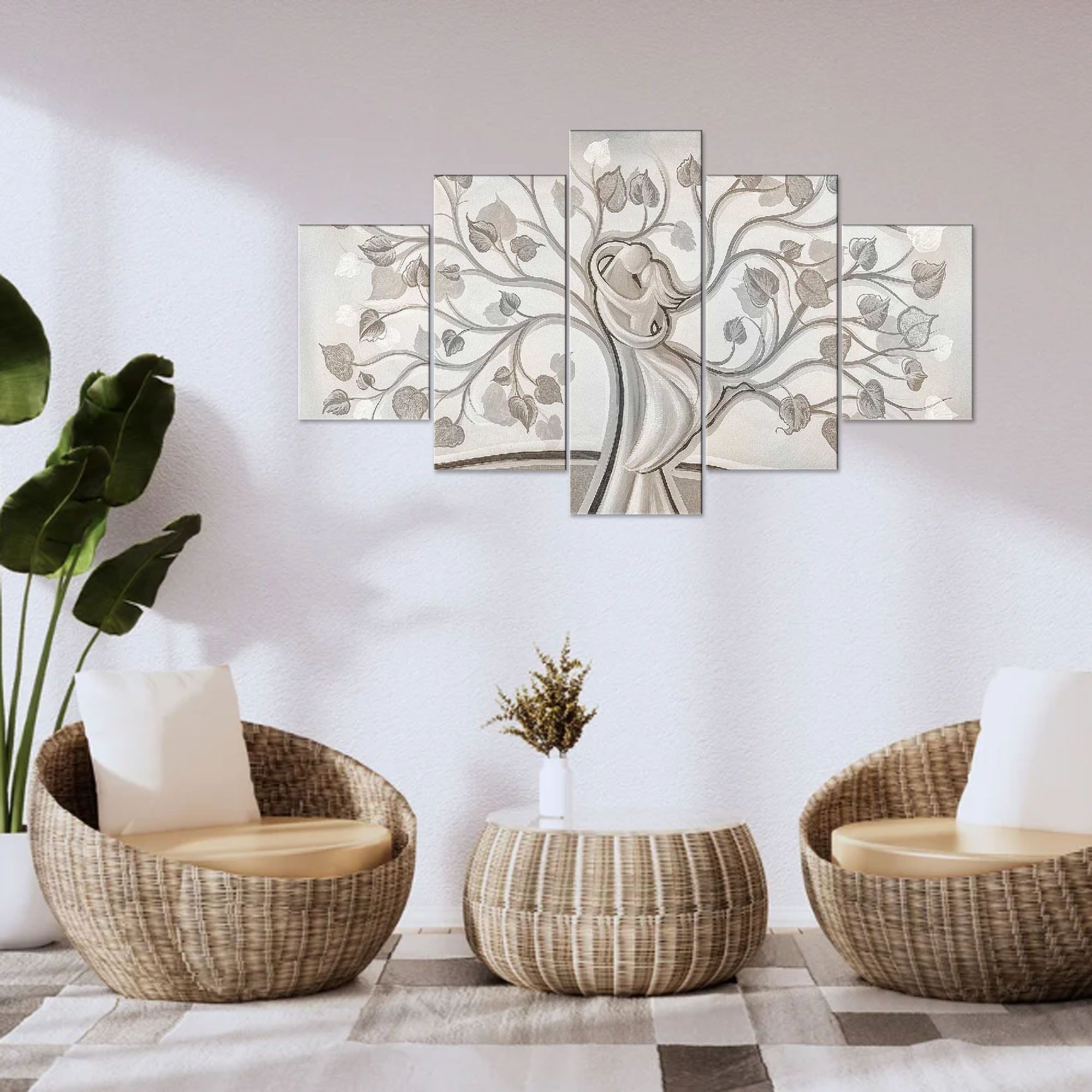 Composto da cinque pannelli in legno ecologico, questo capolavoro moderno è progettato per creare un’unica immagine suggestiva: una coppia stilizzata che si abbraccia, da cui si diramano rami sinuosi, simbolo di vita, energia e connessione.