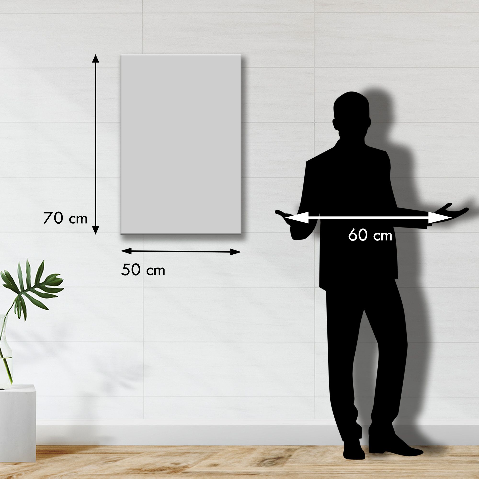 Con una dimensione totale di 50x70 cm, questo quadro è perfetto per decorare il soggiorno, la camera da letto, la cucina, il bagno o la sala da pranzo. Inoltre, è ideale anche per ambienti non domestici come uffici, hotel, bar, negozi o laboratori, grazie alla sua versatilità e al design moderno.