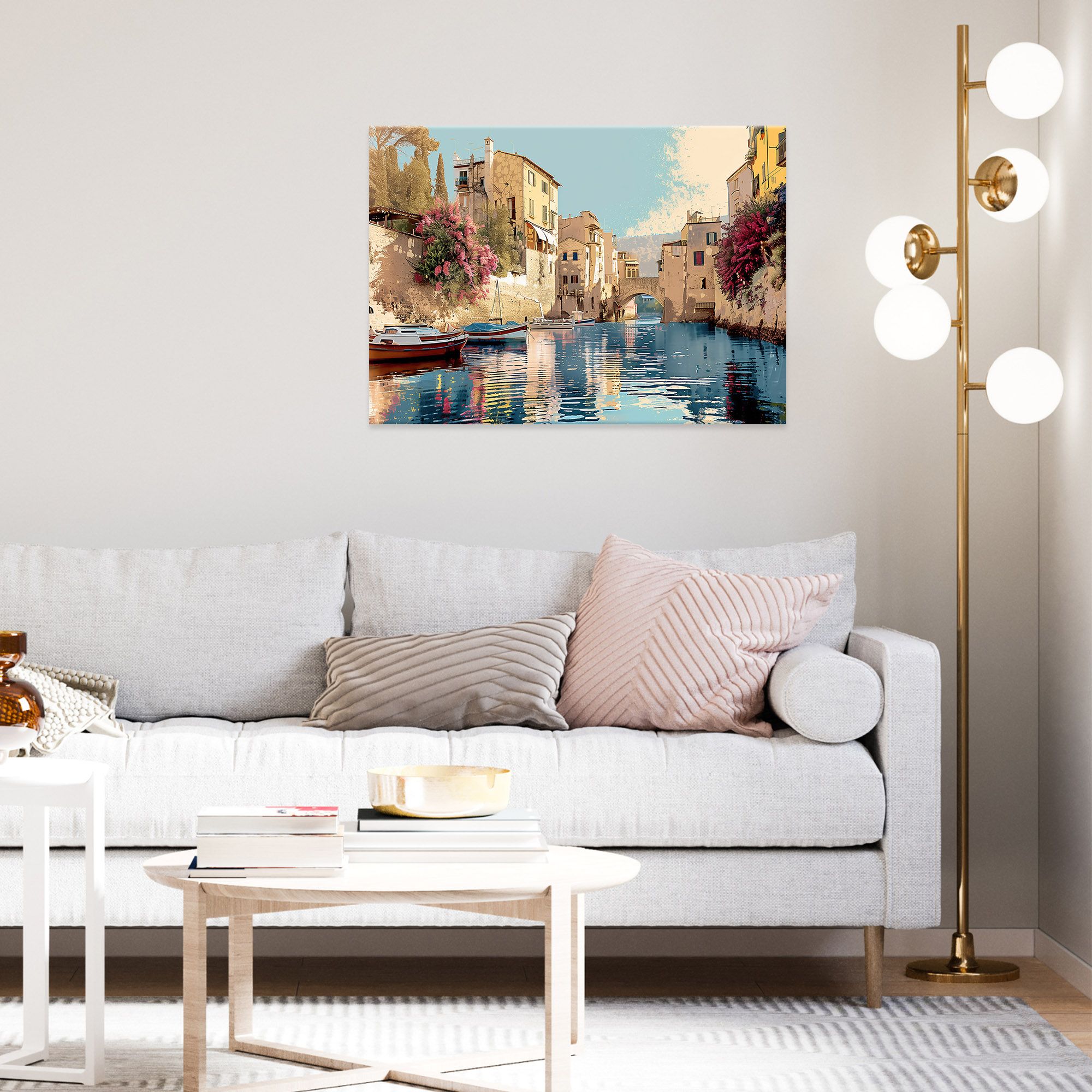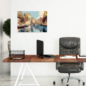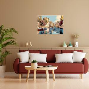 Lupia - Quadro moderno Canvas Prime PAESAGGIO FLUVIALE 50x70 cm, Stampa su Tela effetto dipinto acquarello, Pennellate tridimensionale, Telaio in Legno, per soggiorno camera da letto ufficio -