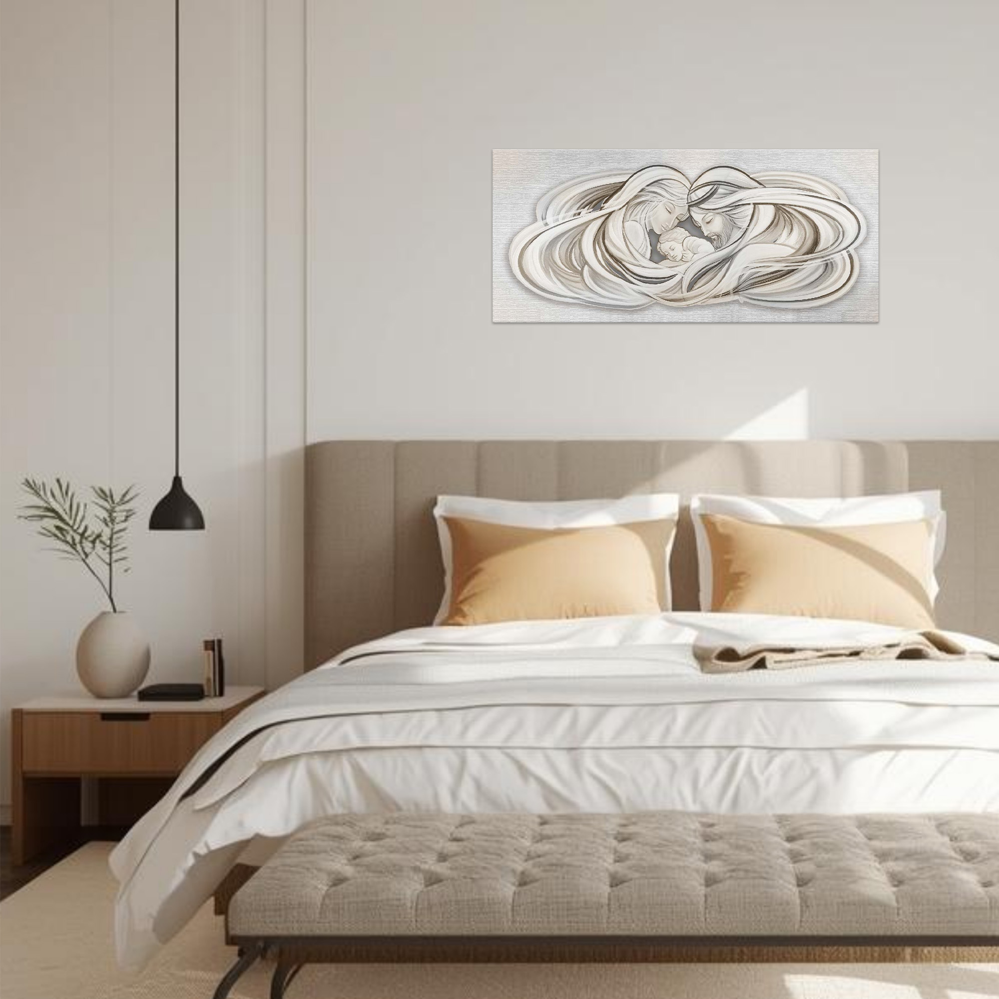 Lupia - Quadro moderno Canvas World SACRA FAMIGLIA 1 MIX 45x100 cm, Stampa su Tela, Telaio in Fibra di Legno, quadro capezzale camera da letto o per soggiorno ufficio natività -