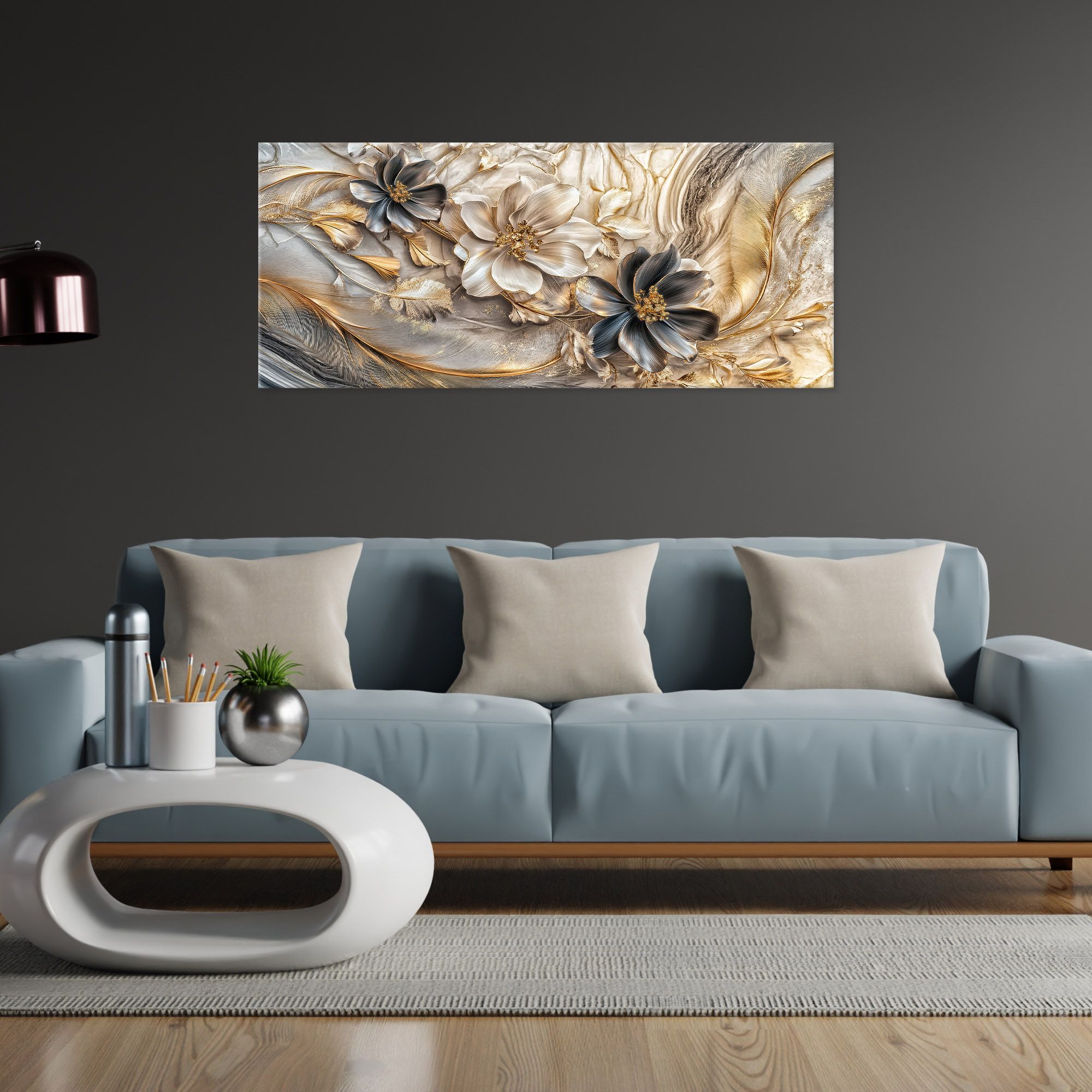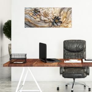 Il quadro moderno Canvas World di Lupia è la scelta perfetta per chi desidera portare eleganza e colore nelle proprie pareti. Realizzato in Italia, questo quadro su tela poliestere è montato su un telaio in fibra di legno ecologica spesso 1,6 cm e pronto da appendere. Il tema dell'opera è floreale su colori come blu, bianco e oro, mescolati tra loro con un effetto marmo.