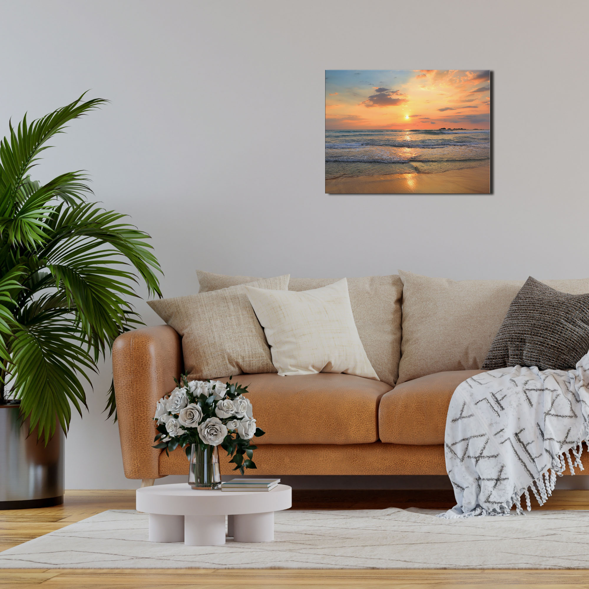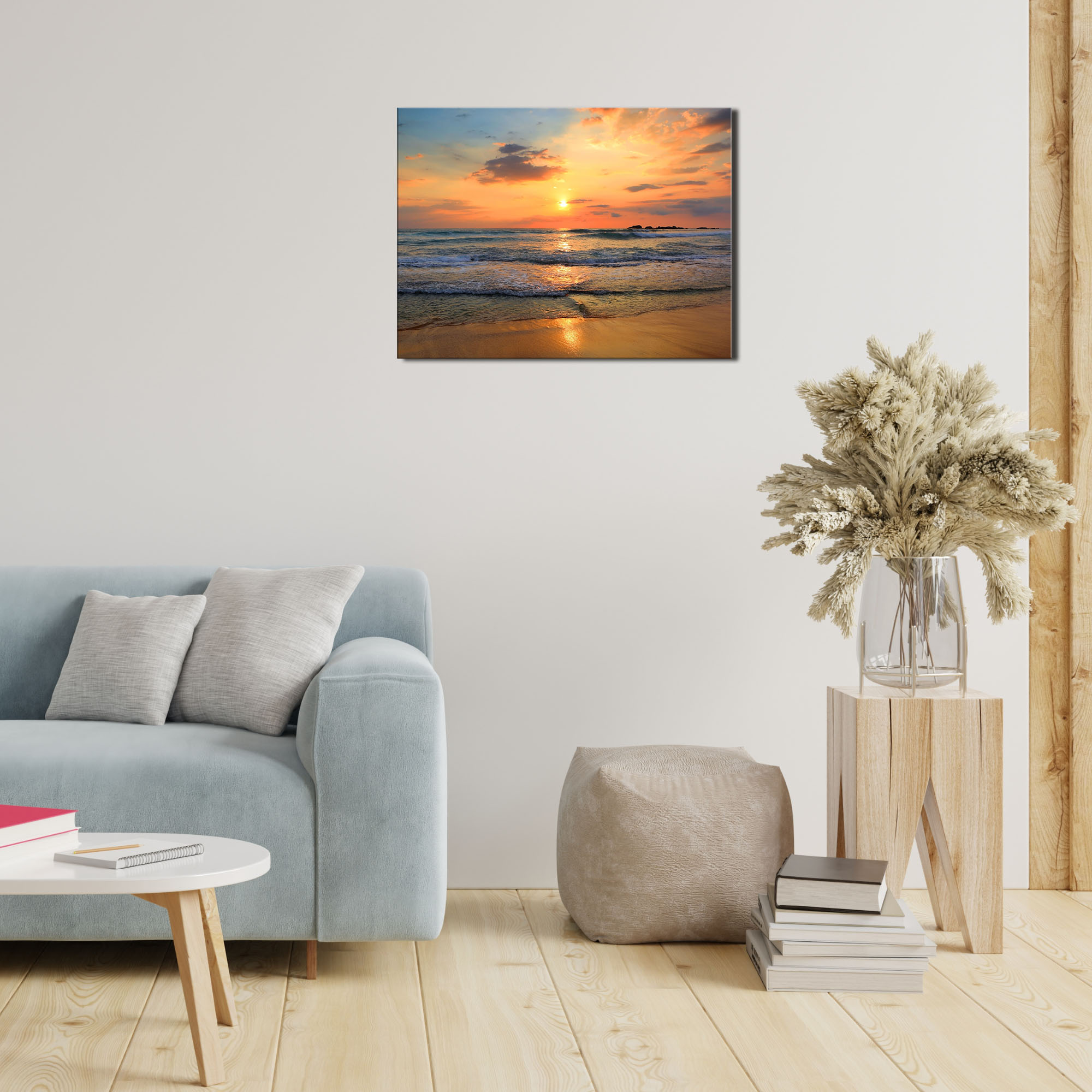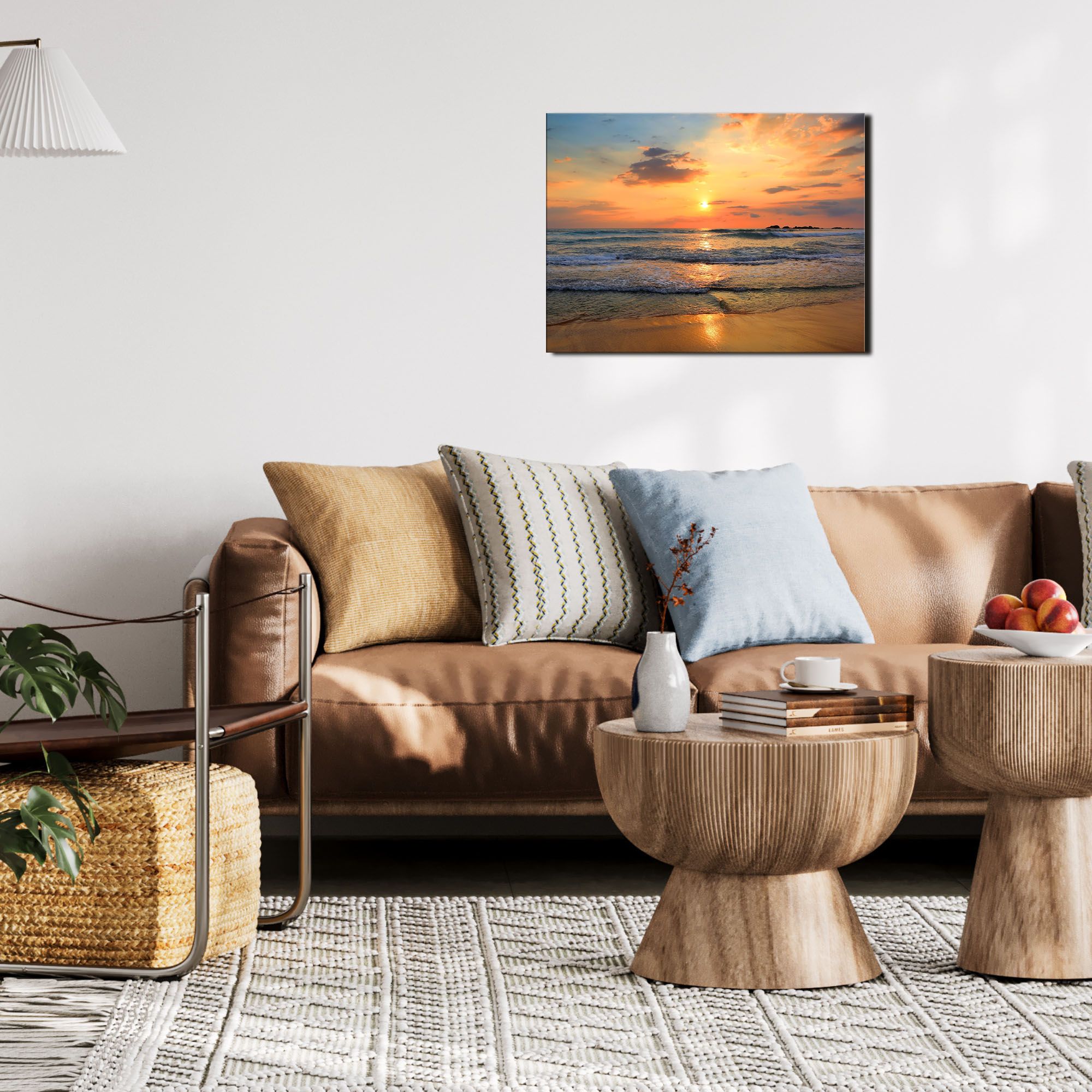 Le stampe digitali ad alta risoluzione raffigurano tramonti naturalistici in riva al mare, creando un'esplosione di colori vividi che arricchiscono qualsiasi ambiente.