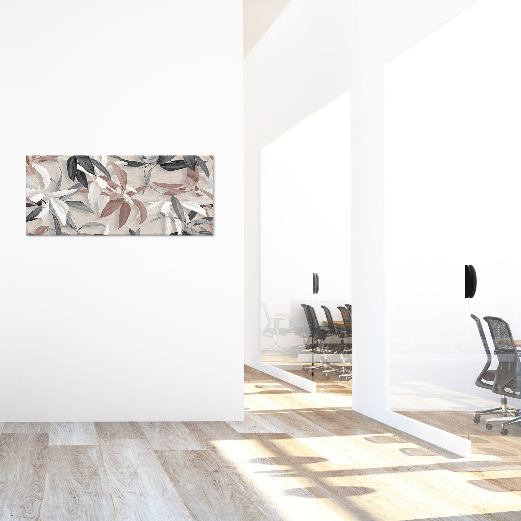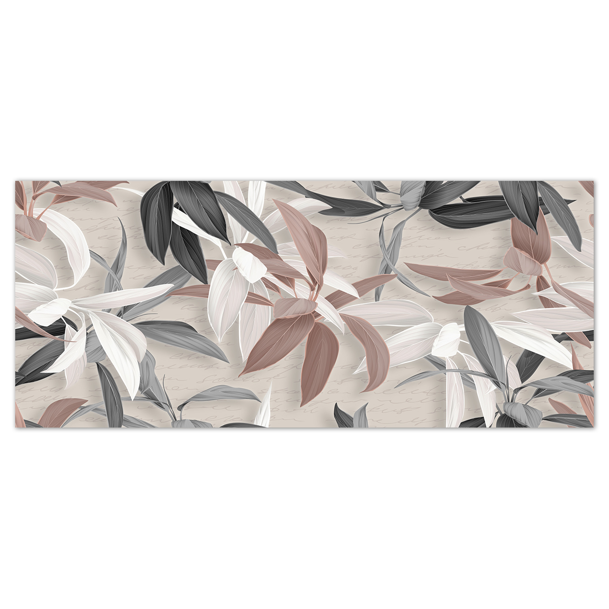 Quadro moderno Canvas World, una rappresentazione con stampa su tela pvc, con telaio in fibra di legno ecologica spesso 1,6 cm, gia’ montata, pronto da appendere facilmente. Sono stampe artistiche digitali ad alta risoluzione con tema moderno delle tipiche foglie nelle tonalita' del grigio e del tortora, una tela ricca di colori vividi e di fattura esclusivamente artigianale realizzata completamente in Italia. Il quadro dona un tocco di arte e colore alla tua parete. Un’idea originale per decorare le pareti della tua casa come soggiorno, camera da letto, in cucina, bagno, sale da pranzo, o di tutti i tuoi ambienti anche non domestici, come ufficio, Hotel, bar, negozio o laboratorio, perché sono adatte a qualsiasi tipologia di stile e arredamento. Per dare ancora piu' importanza al prodotto il bordo e' decorato sui colori della tela quindi viene data continuazione alla stampa ingrandendo cosi' l’ottimo effetto visivo del quadro. La dimensione totale del prodotto e' 65x149 cm.
