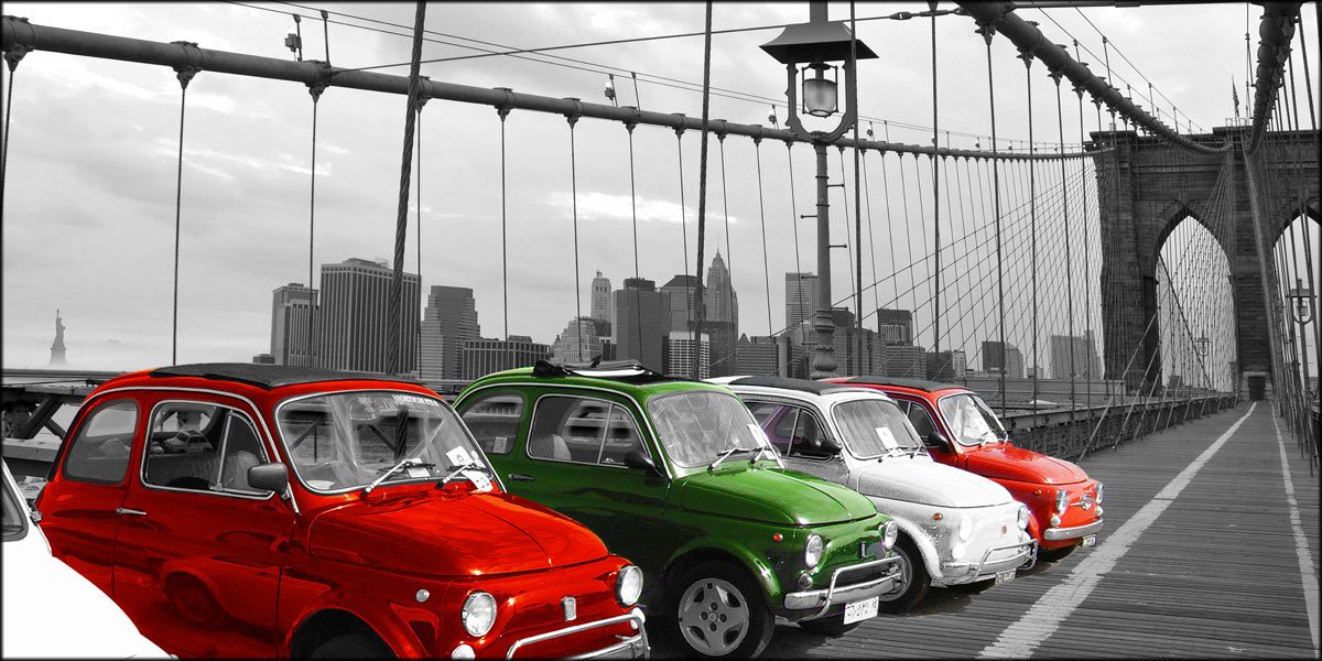Il quadro Fiat 500 su tela canvas è un omaggio raffinato al patrimonio automobilistico italiano, reinterpretato in chiave artistica. Sullo sfondo, un famoso ponte americano in bianco e nero si erge maestoso, simbolo di modernità e connessione tra culture. In primo piano, 4 iconiche Fiat 500 vecchio modello spiccano per la vivacità dei loro colori. Bianco, rosso e verde, disposte a formare la bandiera italiana, in un gioco cromatico che sottolinea con eleganza l’identità nazionale.