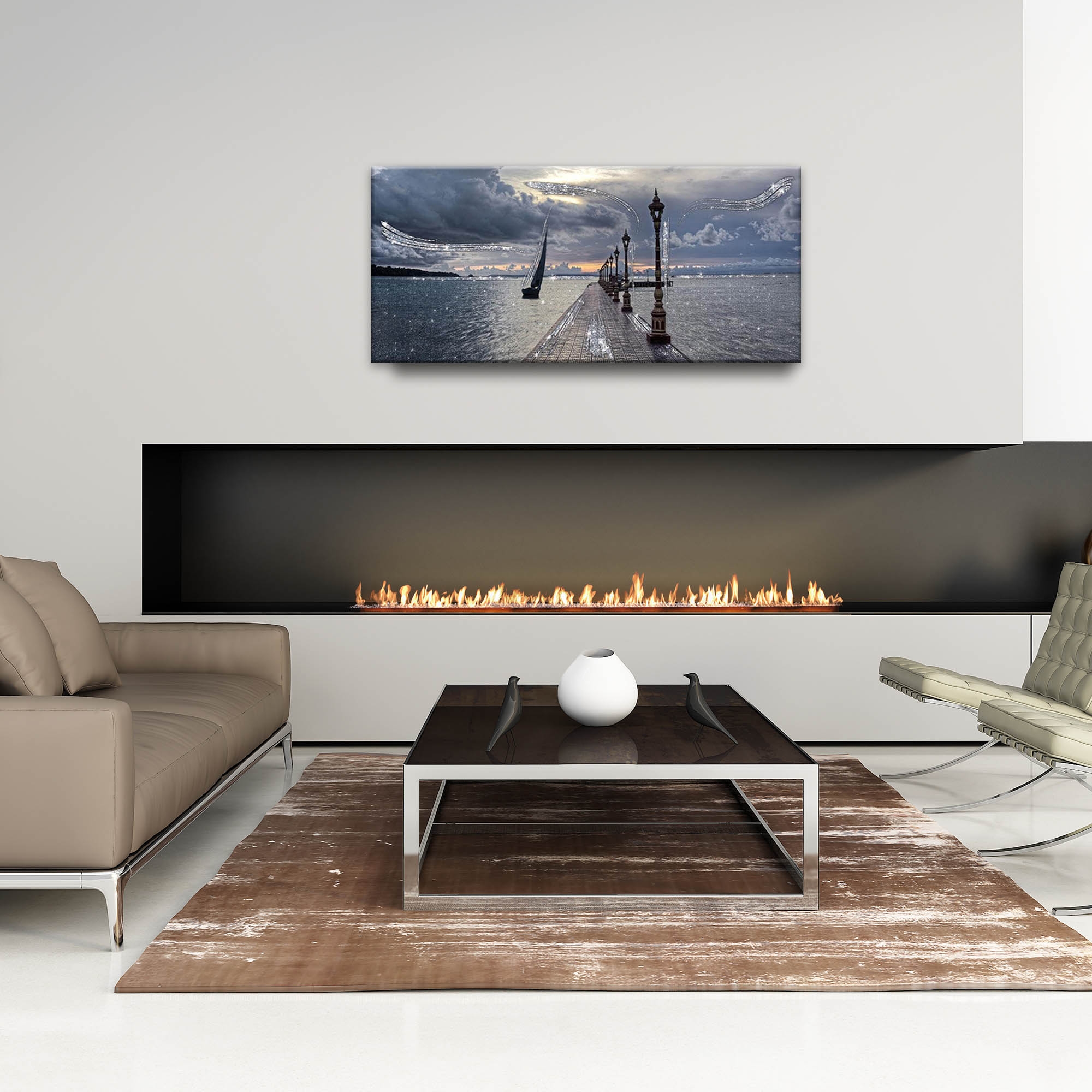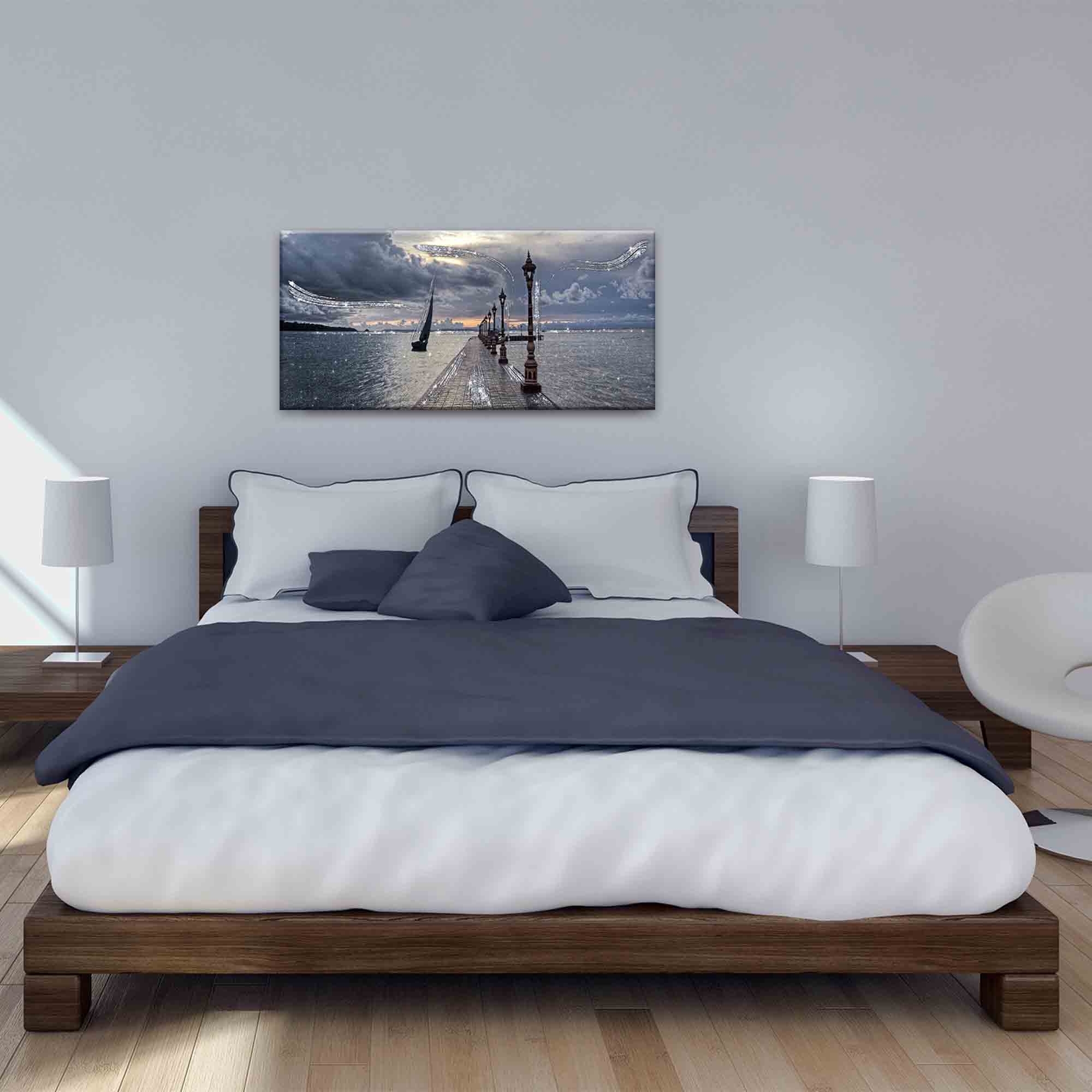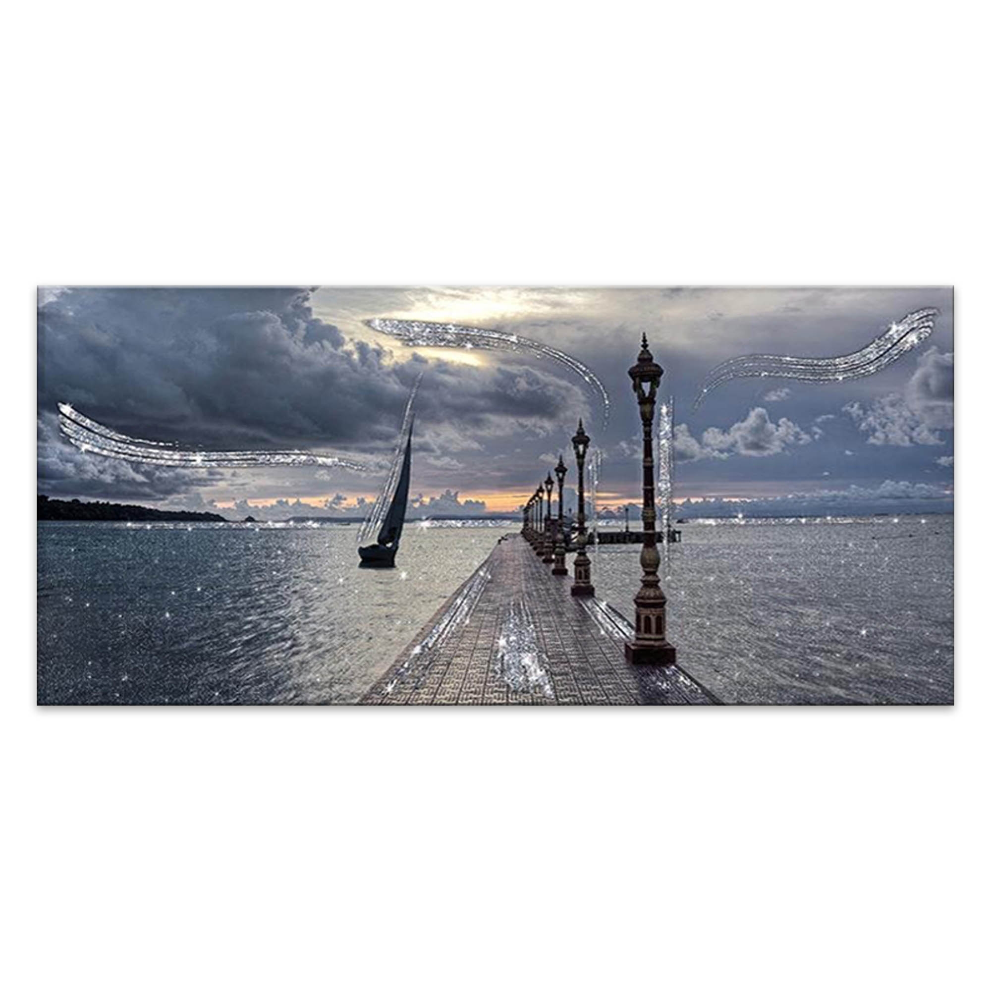 Quadro su tela con glitter BRILLANT ALBA SUL MOLO - 52X122 cm