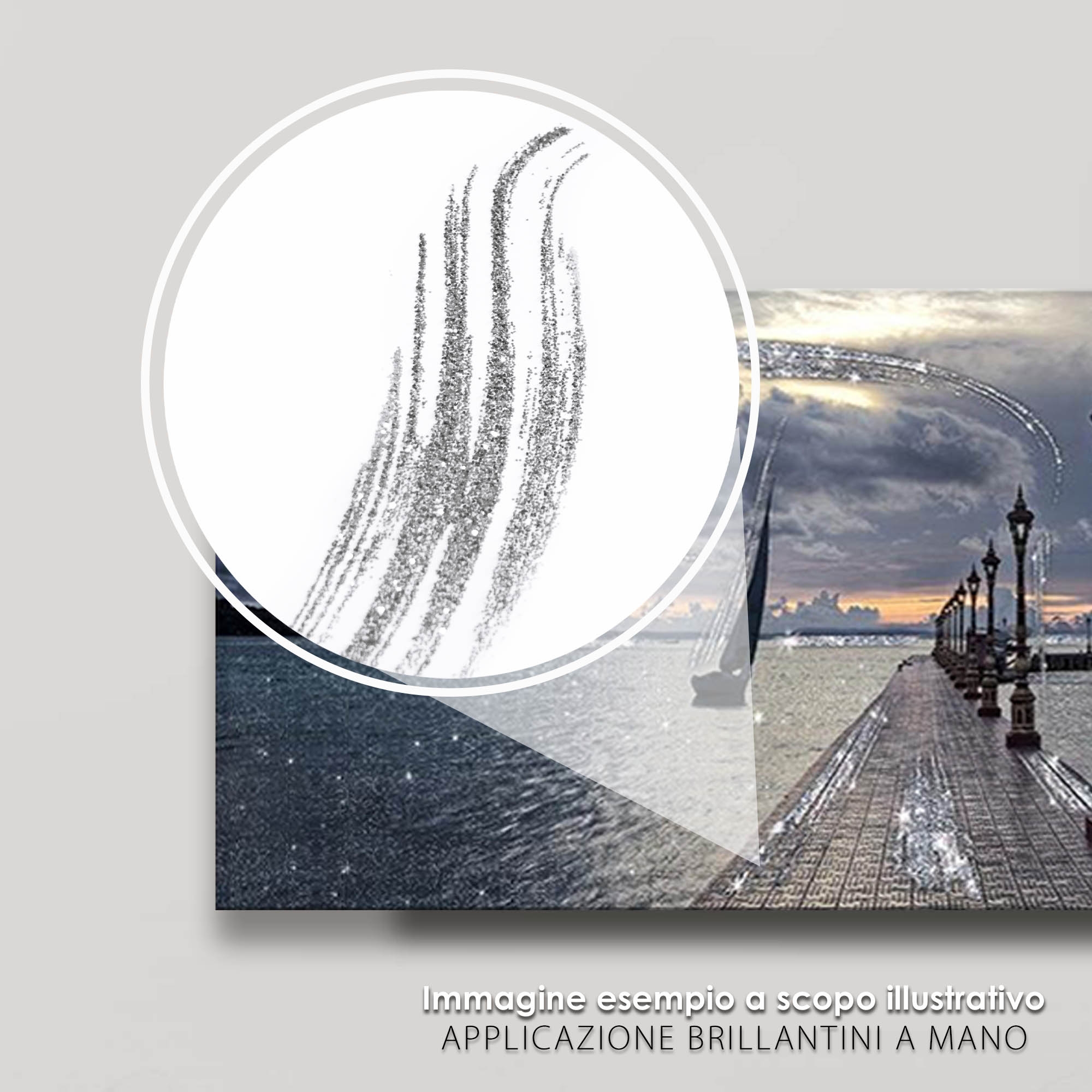 Canvas su tela pvc con telaio in fibra ecologica di legno con spessore da 1,6 cm, pronto da appendere facilmente. Quadro moderno realizzato con stampa e decorazione con brillantini GLITTER. Originali, eleganti ma anche semplici e si adattano a tutti gli arredi della tua casa, per il soggiorno, camera da letto, cucina, salotti con stili moderni, classici e tradizionali, esponili anche in ambienti non domestici come uffici e altri da lavoro. Potrete arredare i vostri ambienti di casa con grande stile grazie al tema rappresentato. Il prodotto e' realizzato in Italia.
