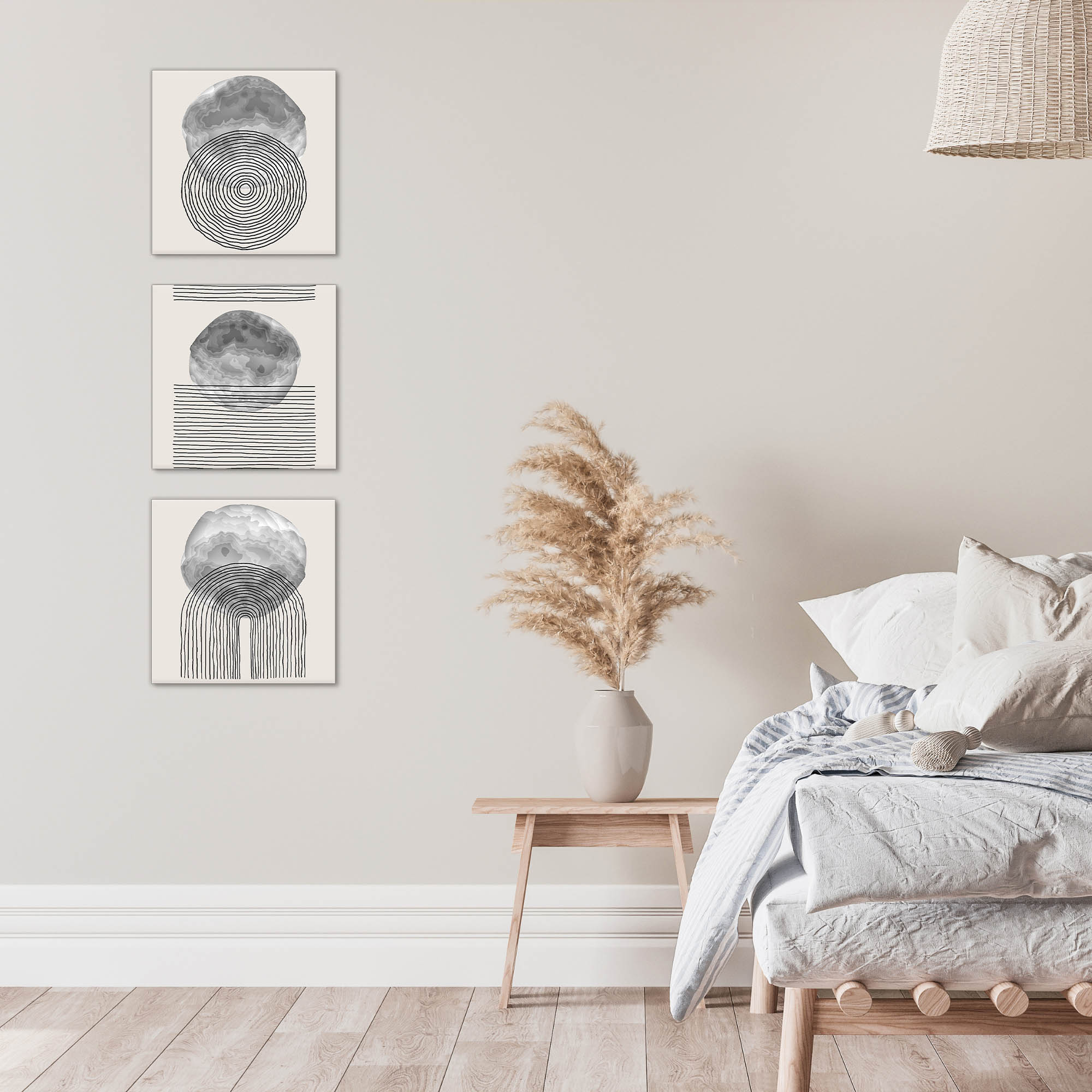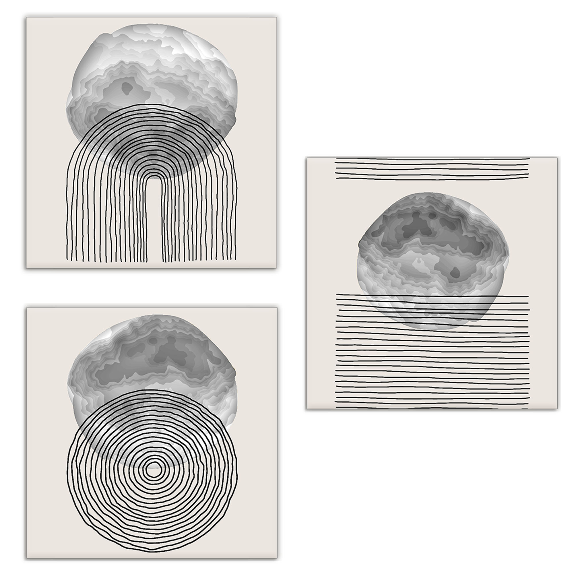 Una nuova ed originale decorazione che nobilita e rende piacevole il tuo arredo con il tema geomoetrico astratto nei toni del grigio. Ogni quadro è pronto da appendere con telaio in legno ecologico gia' montato e tela in poliestere con spessore di 12 mm, puoi appendere i 3 quadri come preferisci e nell'ordine che più ti piace per creare la tua parete artistica.