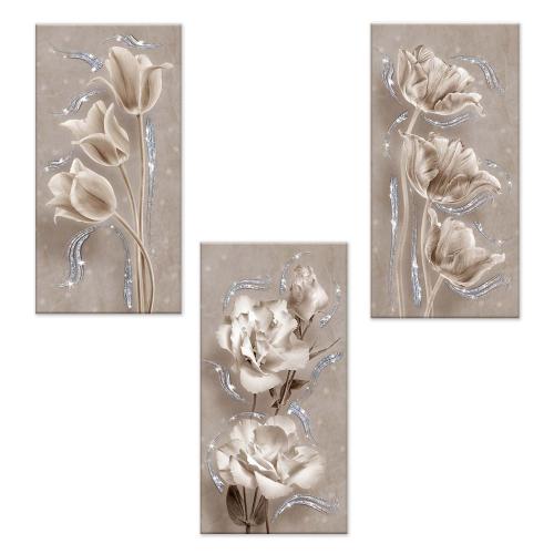 Set 3 pezzi Quadri su tela tema floreale ...
