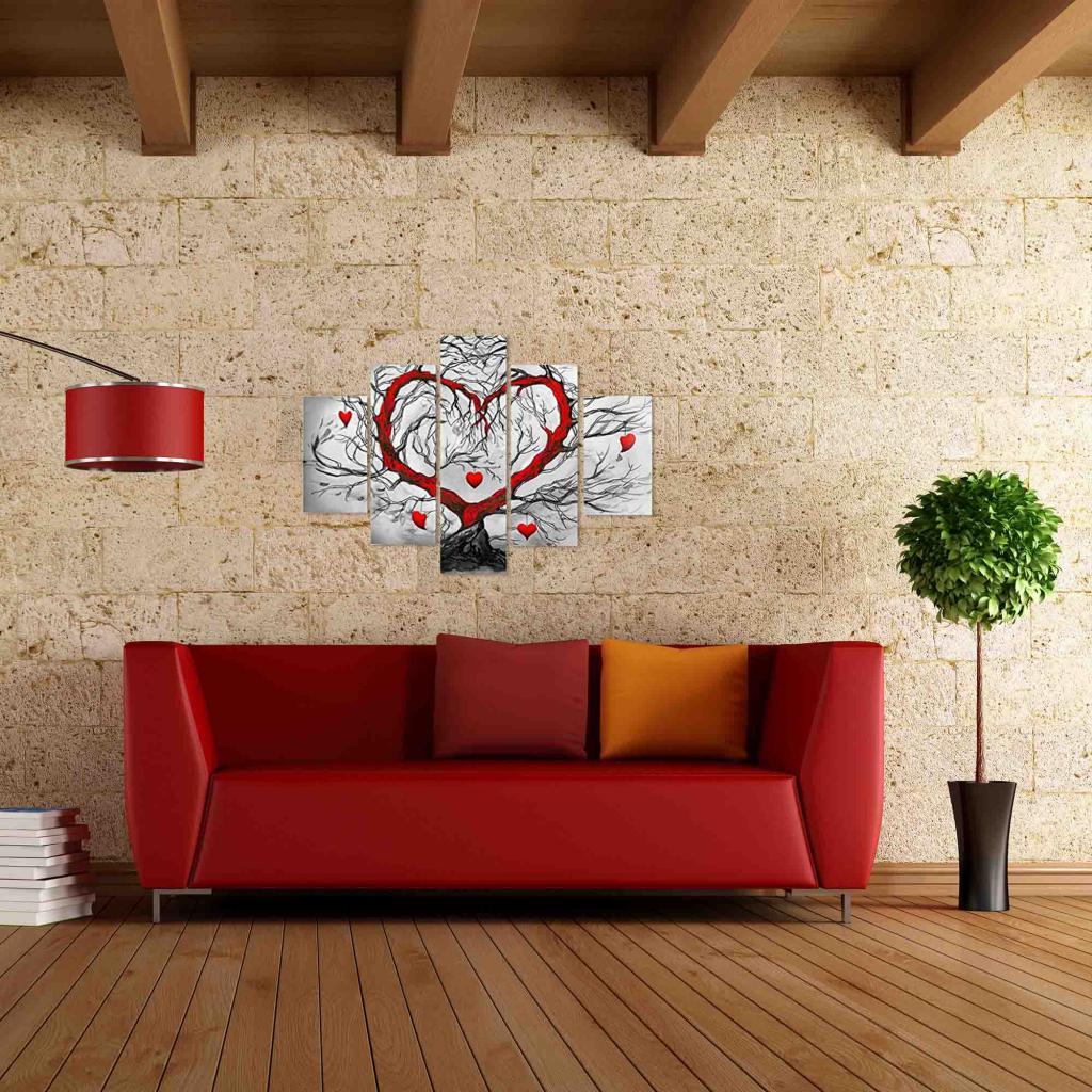 - Quadro Moderno 5 Pezzi In Legno: quadro moderno in legno composto da 5 pezzi, dalle dimensioni complessive di 66x115 cm. Il tema raffigurato è il suggestivo Albero dell'Amore, dai colori accesi e vivaci;
