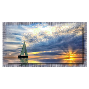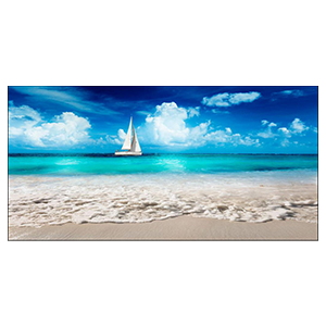 - Quadro su tela a tema mare con colori freddi: Il quadro Canvas Deep ha una dimensione di 77x143 e un telaio in legno con bordo nero che risalta la profondità del quadro. La tela usa diverse tonalità di azzurro freddo per rappresentare il mare calmo ed una barca a vela che cavalca le onde. Chi ammira il quadro è a riva, e viene sovrastato da una sensazione di estrema calma e tranquillità.
